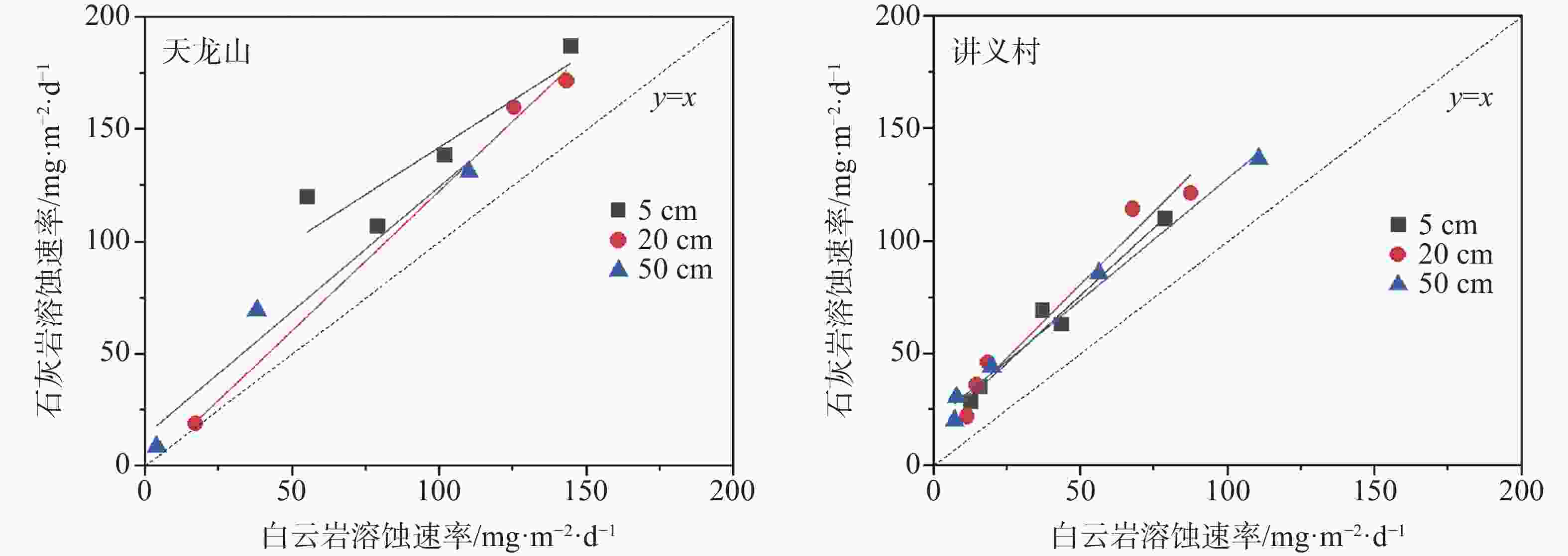 mg·m−2·d−1地下5 119.94 138.69 − 106.84 186.99 地下20 18.91 − − 171.64 159.80 地下50 8.73 − − 131.32 69.75 平均值 49.19 − − 136.60 138.85 白云岩日均溶蚀速率