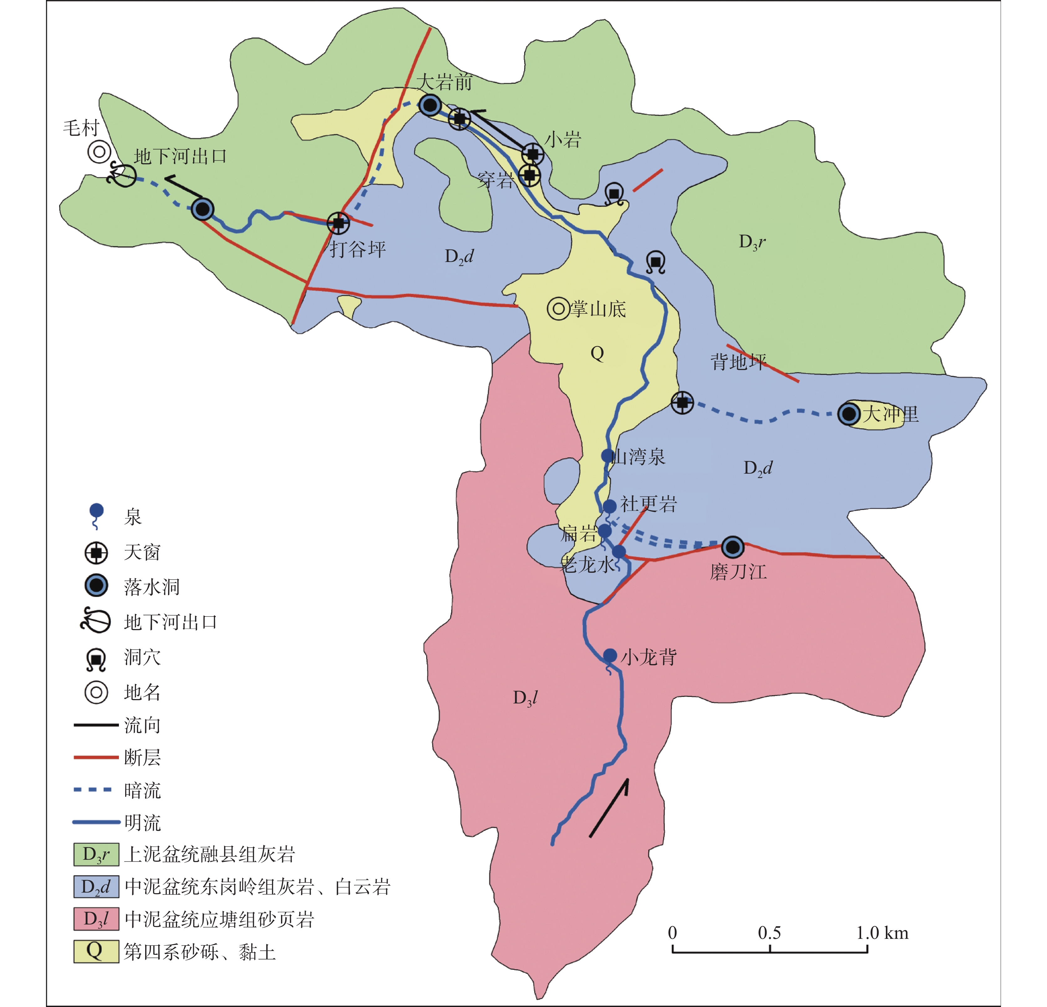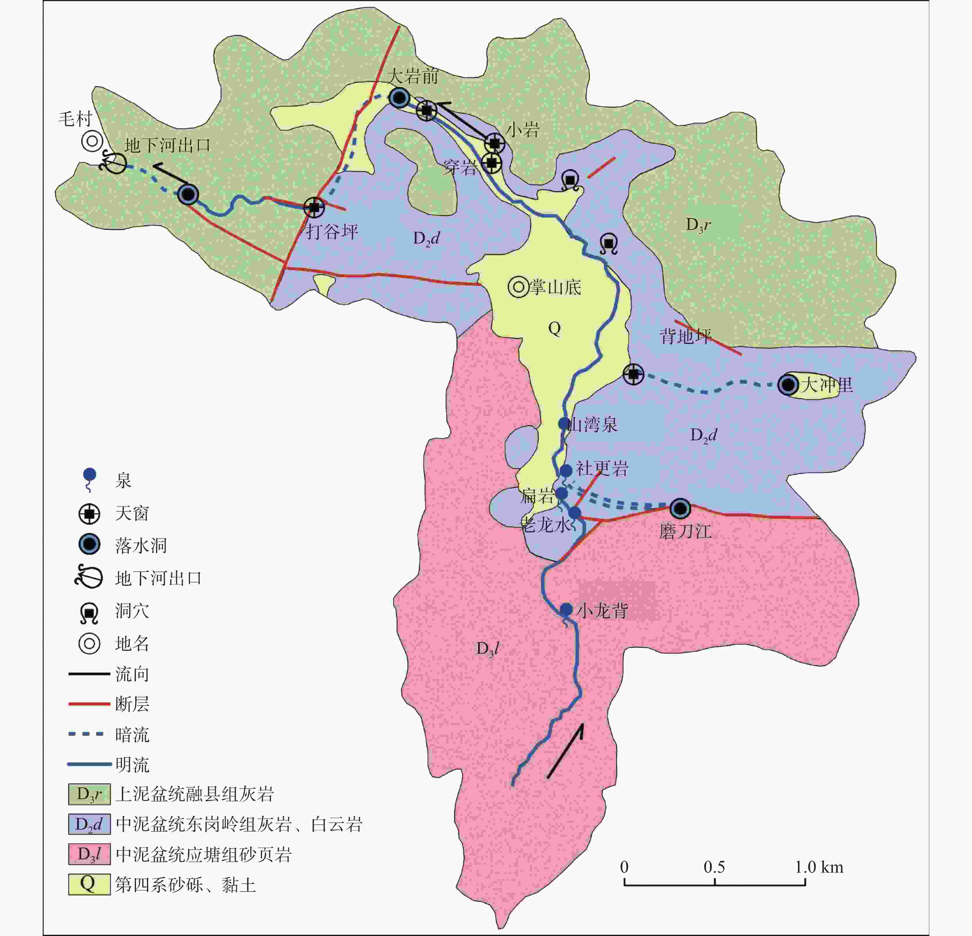 Figure  1.  Hydrogeological map of Maocun underground river basin