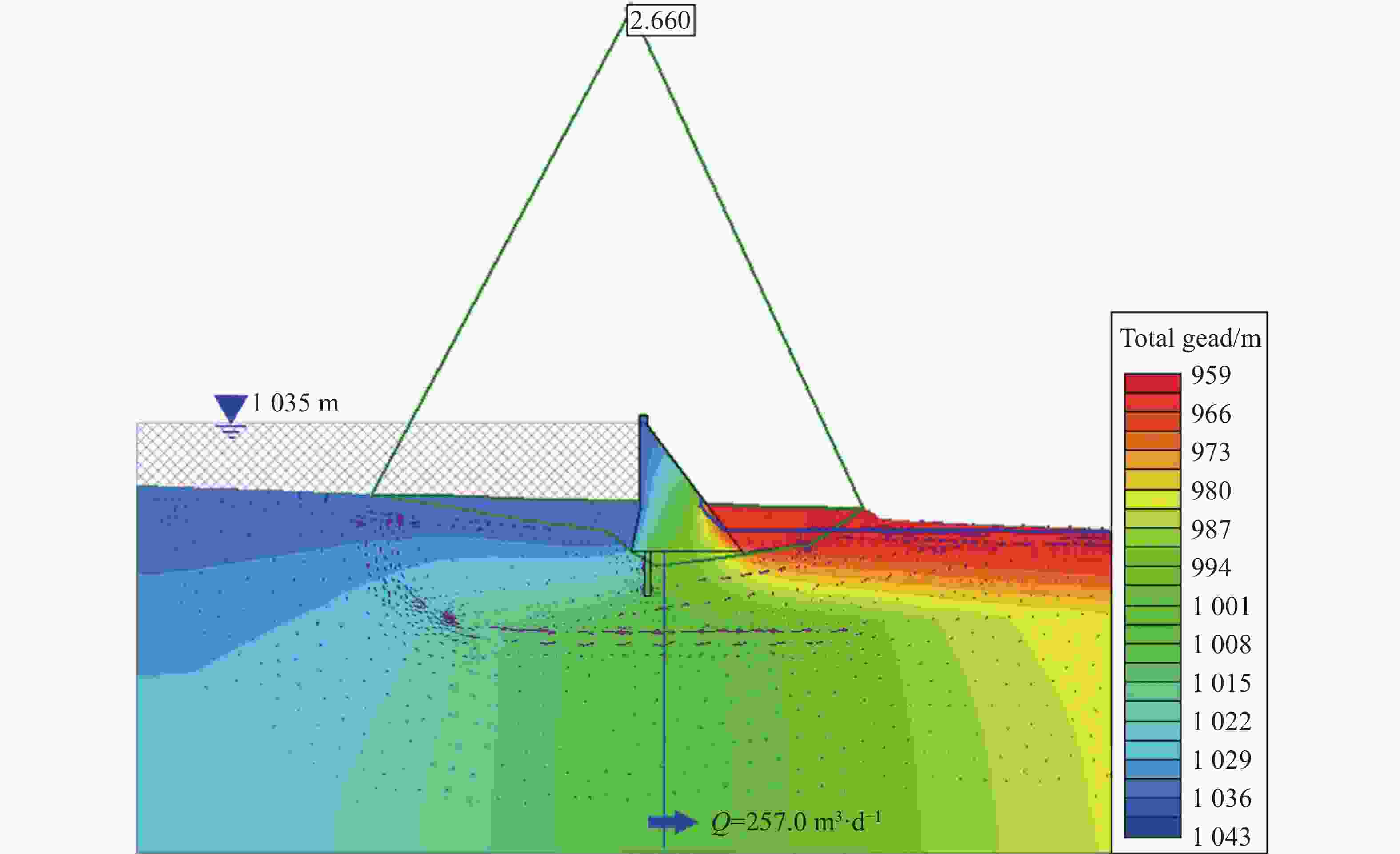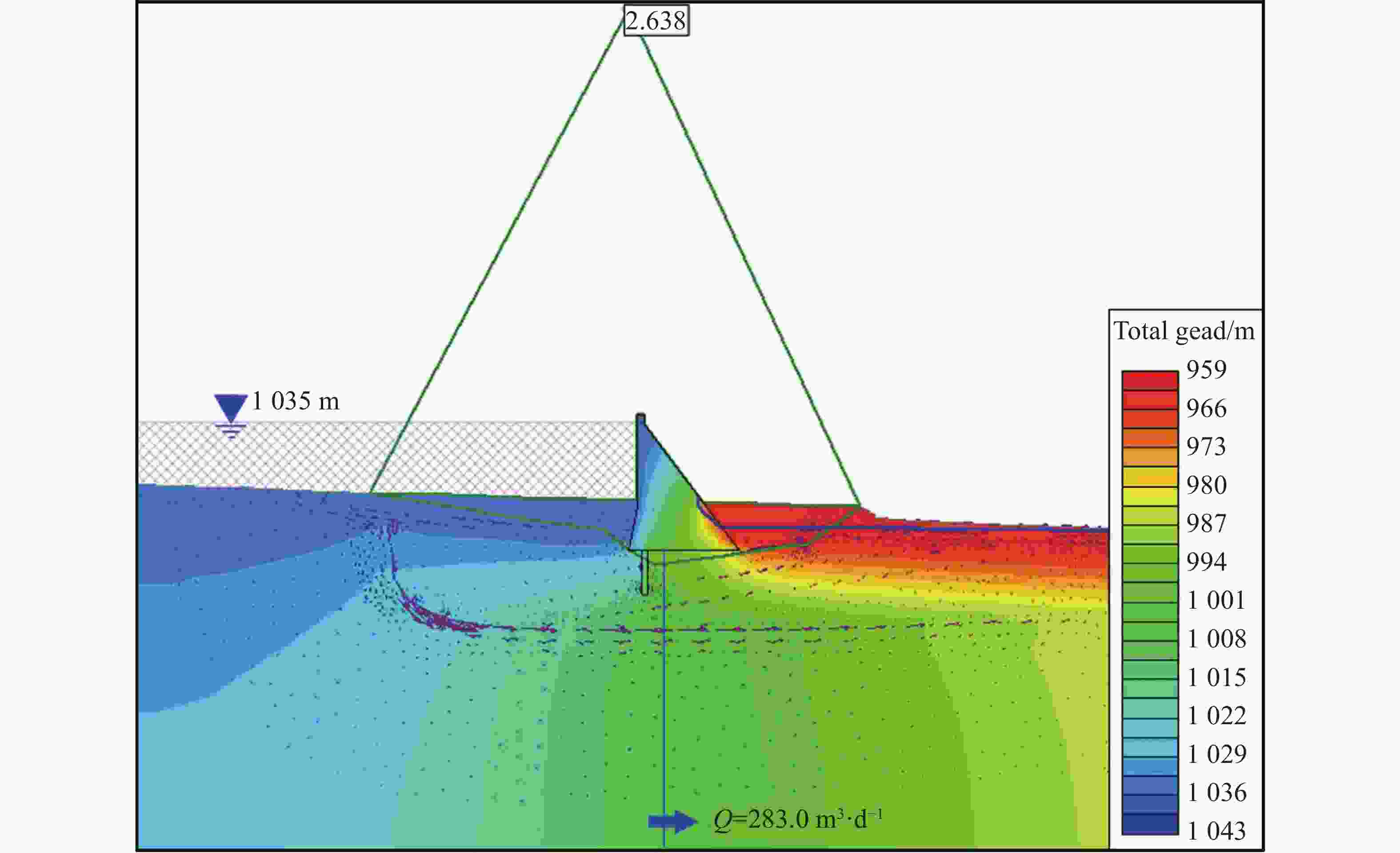 摘要: 北盘江流域沿线山高谷深,岩溶水文地质条件复杂,局部区域水资源短缺,岩溶渗漏问题成为水利水电工程建设的瓶颈。文章综合地质调查测绘、钻探及物探、水文地质试验、岩溶水系统分析、地下水均衡分析等方法,论证了PCH水库不会发生邻谷渗漏及绕坝基深部的岩溶管道型渗漏,但发生溶隙型渗漏的可能性较大。采用有限元法模拟溶隙渗漏显示:随着T1yn1-1灰岩溶蚀率的增大,坝基抗滑稳定系数稍有降低,潜在失稳模式为后缘剪断T1yn1-2岩体,前缘沿T1yn1-2层内岩屑夹泥型软弱结构面剪出;坝基渗漏量呈线性增加,T1yn1-1灰岩溶隙密集带为坝基主要渗漏区。当溶隙密集带沿T1yn1-1灰岩与T1yn1-2泥灰岩接触带水平发育且集中分布时,坝基抗滑稳定系数将明显减小,坝基渗漏量将明显增大;当溶隙密集带垂直发育、分散发育或主要分布于坝后区域时,其对坝基抗滑稳定及坝基渗漏量影响微弱。岩溶水文地质分析及数值模拟均显示,复杂岩溶水系统势汇区下游区域多以溶隙渗漏为主,其工程影响有限,具备建坝成库条件。Abstract: The topographic and geological conditions in the basin of Beipan River are complex with high mountains and deep valleys on both banks, strong karst development and deeply buried groundwater.Consequently, water resources are in great shortage in this area. The construction of water conservancy projects can effectively solve the problem of water shortage. However, karst leakage has become a difficult problem restricting the construction. By comprehensively using the methods of geological survey and mapping, drilling and geophysical exploration, hydrogeological test, karst water system analysis and groundwater balance analysis, this paper demonstrates that a leakage to the adjacent valley or along the karst pipeline deep under the dam foundation will not occur in the Pucha reservoir, but the possibility of solution crack leakage is great. The finite element method is used to simulate the solution crack leakage and analyze the engineering impact. Results show that with the increase of the dissolution rate of T1yn1-1 limestone, the anti-sliding stability coefficient of the dam foundation decreases slightly, and there is an inverse correlation between them. The regression equation is y1=−0.081x +2.678. The potential instability mode of the dam foundation is that the T1yn1-2 marl rock mass is sheared at the upstream, and the bottom is sheared along the gently inclined upstream with weak structural plane of rock debris mixed with mud in T1yn1-2 layer. With the increase of dissolution rate of T1yn1-1 limestone, the leakage of dam foundation increases significantly, and there is a positive correlation between them. The regression equation is y2=120.3x+224.8. The concentrated belt of solution crack is the main leakage area of dam foundation. When the concentrated belt develops horizontally and distributes intensively along the contact belt between T1yn1-1 limestone and T1yn1-2 marl, the anti-sliding stability coefficient of dam foundation will significantly reduce and the leakage of dam foundation will significantly increase.Therefore, the concentrated belt should be treated as a key area. When the concentrated belt is vertically developed, dispersed or mainly distributed in the area behind the dam, it has little impact on the anti-sliding stability and leakage of the dam foundation, and can be used as a secondary treatment area. Karst hydrogeological analysis and numerical simulation show that in complex karst areas, after groundwater is discharged from the surface in the potential catchment area, it mainly influxes in the form of runoff to the downstream river channel, and the vertical infiltration of water flow is relatively weak, so it is difficult to form karst pipelines bypassing the anti-seepage curtain and connecting the upstream and downstream in the deep part of the riverbed. The leakage form of dam foundation is mainly solution crack leakage, and its engineering impact is limited. Therefore, the catchment area of karst groundwater is suitable for dam and reservoir construction. In addition, according to the spatial distribution characteristics of the concentrated belt of solution crack, the targeted treatment of zoning grouting can improve the treatment efficiency and save investment.