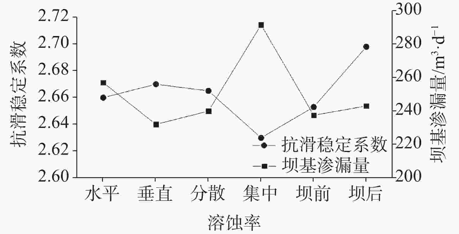溶蚀率/% 0 10 20 25 30 40 50 Fs 2.678 2.668 2.663 2.660 2.656 2.643 2.638 Q/m3·d−1 225.0 236.3 248.5 257.0 261.0 275.0 283.5 表 5 溶隙密集带形态模拟结果表