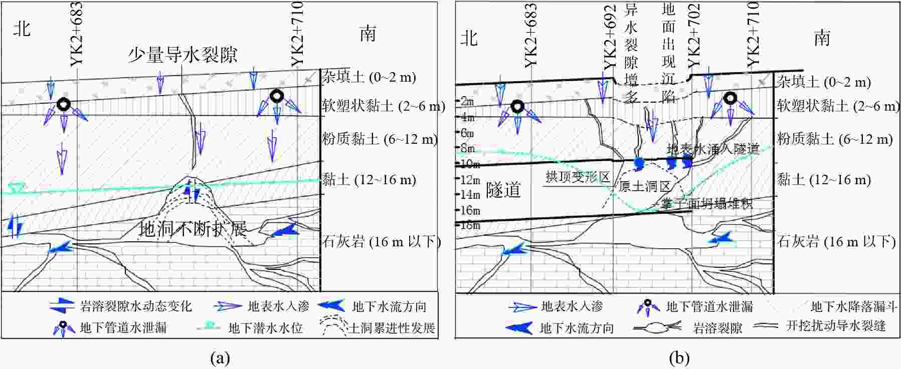 摘要: 为有效治理岩溶基底城市隧道拱顶地层沉陷地质灾害,在充分探明沉陷区水文地质、工程地质特征的基础上,提出了“三段四层控制技术”,将治理区划分为沉陷区重点加固段、影响区次重点加固段和超前加固段;再根据治理深度和治理顺序进一步把沉陷区重点加固段分为顶部阻浆层、拱顶止浆垫层、拱顶加固层和中间加固层,研究了每段、每层注浆加固机理、浆液类型选择和控制注浆参数。研究成果表明,采用孔内复合止浆技术满足不同深度地层分段注浆为主、垂直孔和定向斜孔相结合,充填注浆、劈裂-挤密注浆相结合,以速凝浆液为主、单液水泥浆为辅,严格控制安全注浆参数,是“三段四层控制技术”安全有效注浆的技术关键,该技术方案在岩溶基底城市隧道拱顶地层沉陷地质灾害治理方面,取得了较好的注浆加固效果,有良好的推广应用价值。Abstract:
