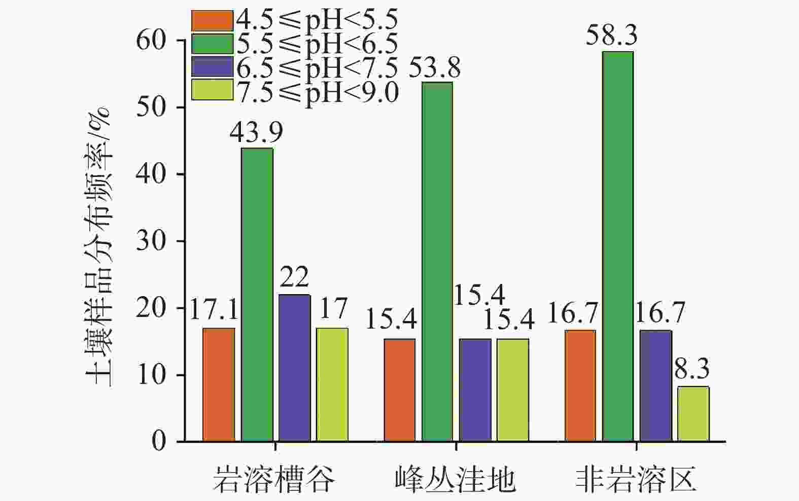 统计分类 样本数/个 最小值 最大值 平均值 标准差 方差 岩溶槽谷区 41 4.62 8.19 6.38 0.95 0.91 峰丛洼地区 12 5.29 8.03 6.31 0.90 0.81 非岩溶区 13 4.71 7.75 5.99 0.85 0.73 研究区 66 4.62 8.19 6.29 0.92 0.85 -