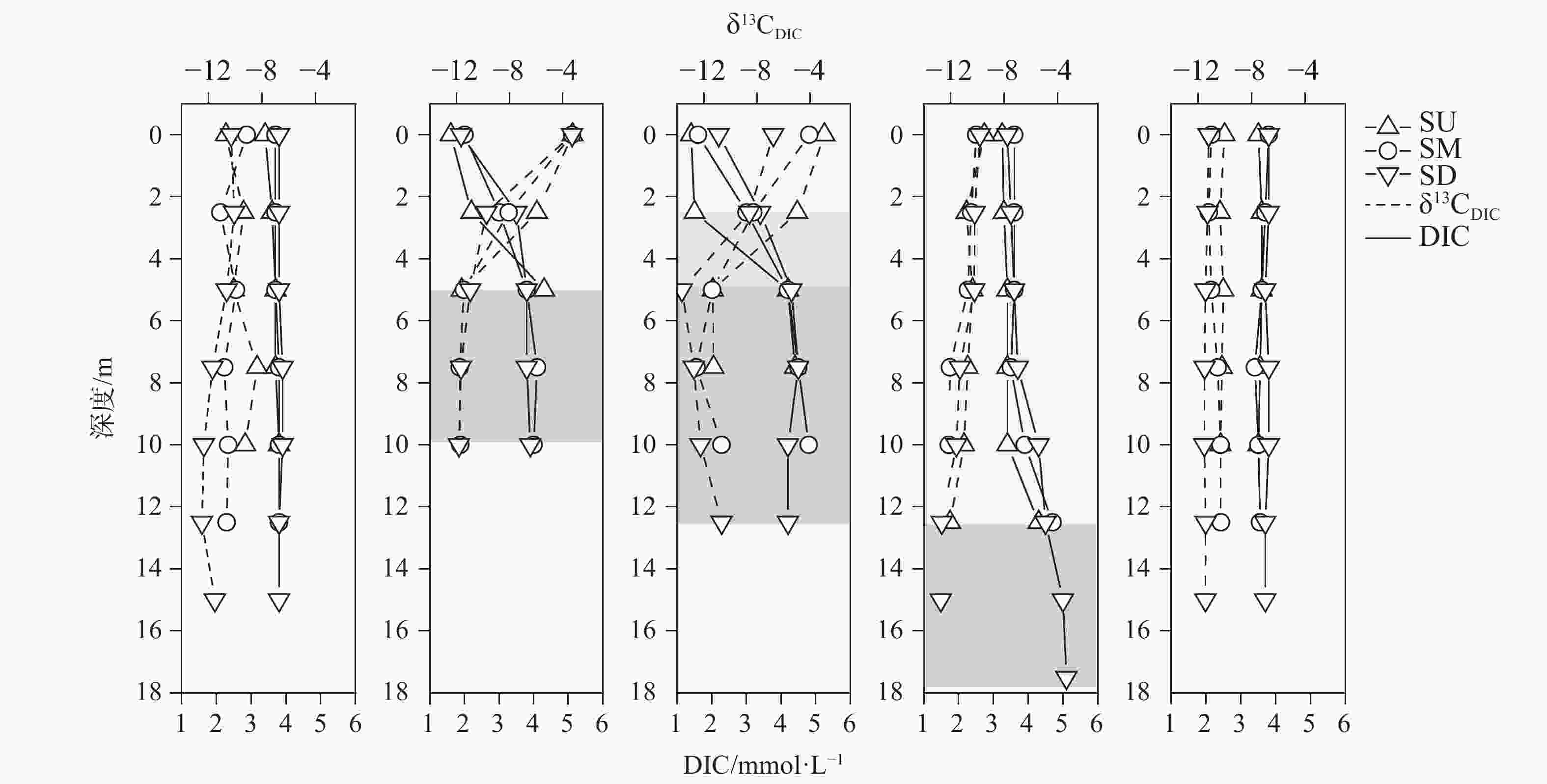 Table 2. Gradient differences of DIC concentrations and δ13CDIC values at each water depth during study period (G (DIC), G (δ13CDIC)