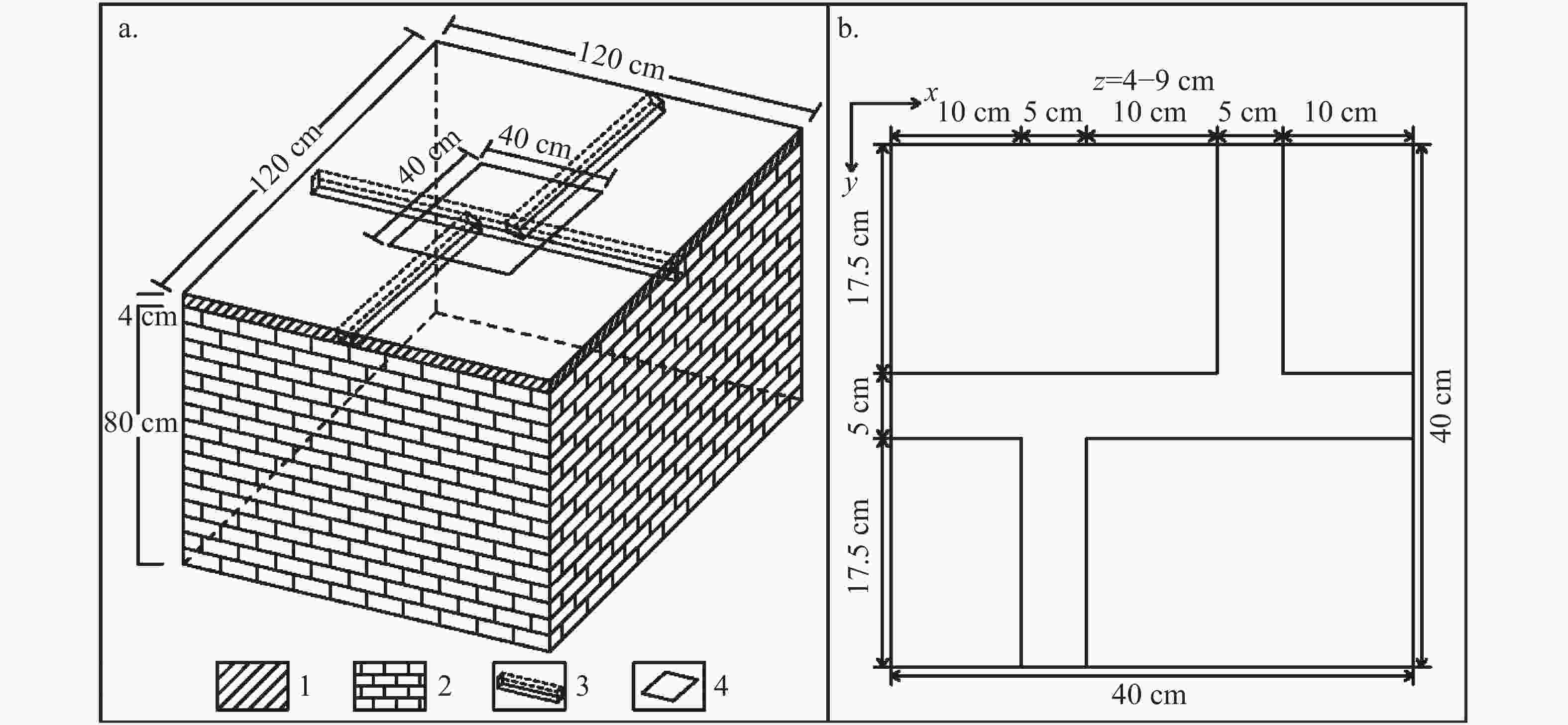 摘要: 岩溶地下河管道空间分布的识别对岩溶区的各类地球科学工作意义重大,文章阐述了采用时延三维电阻率反演技术,开展对地下河管道空间分布识别的研究,在室内灰岩介质下的物理模拟实验结果表明:对雨季管道充水和枯季管道干涸时采集的电阻率数据进行时延反演后,地下河管道的模拟三维空间分布被很好地突显出来,时延反演效果大大地优于对单次采集数据的反演效果,管道充填水时的反演效果次之,管道充填空气时的反演结果很难有效识别地下河管道的空间分布情况。物理模型试验成果可指导野外实践中对岩溶地下河管道的探测研究。Abstract: The spatial distribution of karst underground river pipelines is complex and changeable; therefore, it is of great significance for us to carry out the earth science work in karst areas to develop an effective detection technology for the identification of pipelines. Based on the characteristics that karst underground river pipelines change greatly with seasons and time, the spatial distribution identification of underground river pipelines is studied by the inversion technology of time-lapse 3D resistivity. The results of pilot physical model experiments in limestone medium show that, the spatial distribution of simulated three-dimensional underground river pipeline is well highlighted according to the time-delay inversion imaging of resistivity data respectively collected from water-filled pipelines in rainy season and air-filled pipelines in dry season, The area with large resistivity change is in good agreement with the actual spatial position of pipeline in transverse and longitudinal directions. The closer the resistivity is to the center of the pipeline, the more significant the resistivity change is. In terms of the electrical sounding curve, the resistivity presents a low-high-low feature, and the resistivity contrast between pipeline space and other depth intervals is significant. In terms of the electrical sounding gradient curve, both the gradient value of pipeline space near the overlying clay layer and the value underlying limestone layer are large. The gradient value is positive near the upper contact surface and negative near the lower contact surface. The inversion effect with water-filled pipeline is inferior to that of time-lapse inversion. When the simulated pipeline is filled with water, the pipeline space presents relatively low resistivity. The resistivity value at the bottom of the pipeline is greater than that of the upper part, and the actual spatial position of the pipeline can be effectively reflected. The resistivity presents a high-low-high curve on the electrical sounding curve. However, on the electrical sounding gradient curve, the gradient value of the pipeline space near the overlying clay layer is negative, and it is positive near the underlying limestone layer. It is difficult to effectively identify the karst pipeline through the inversion images only generated by air-filled data. The resistivity rises monotonously and the resistivity value in the pipeline space changes more quickly than that in other depth intervals on the electrical sounding curve, while on the electrical sounding gradient curve, the resistivity gradient value in the pipeline space is slightly larger than that in other depth intervals, but the anomaly in the pipeline space is very weak compared with the time-lapse inversion results and water filling inversion results. It is suggested that when the spatial distribution of underground river pipelines in the field is studied, the 3D resistivity data should be collected in wet season and dry season, respectively, and the time-lapse 3D resistivity inversion image, electric sounding curve and electric sounding gradient curve can be comprehensively analyzed for the research. The subordinate choice is to carry out 3D detection of karst pipeline in wet season and analyze the data comprehensively, so as to obtain a practical detection technology that can effectively locate the underground river pipeline whether it is filled with water or free of water, which can be popularized and applied in practice.