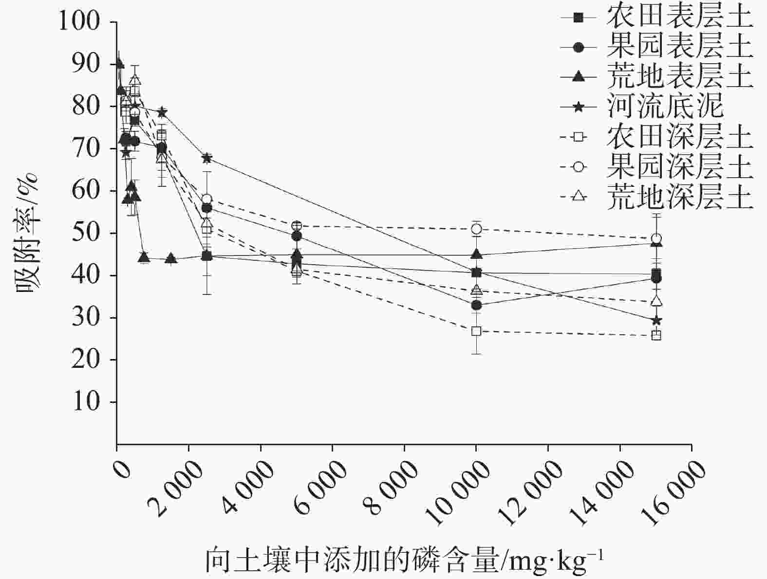 摘要: 文章选取桂林会仙岩溶湿地的3种不同土地利用类型(农田、果园、荒地)的表层土(0~20 cm)和深层土(20~40 cm)及河流底泥作为研究对象,利用Langmuir等温吸附方程拟合不同磷浓度的吸附曲线,计算出磷最大吸附容量(Qm)、磷吸附能(K)、最大缓冲容量(MBC),通过曲线拟合得到被吸附磷的解吸率(a)。结果表明:(1)荒地对外源磷吸附率高于农田、果园土壤及河流底泥;在中低浓度的磷添加下(≤2 500 mg·kg−1),深层土对磷的吸附率均大于表层土;(2)Langmuir模拟揭示:河流底泥的Qm 为4 961.61 mg·kg−1,但K很低(0.034 kJ·mol−1),因此MBC较小(171.82);荒地表层土的磷吸附特征则与前者正好相反,MBC较大(255.10)。农田和果园土壤的磷吸附特征值介于两者之间;(3) 土壤磷吸附主要受土壤质地及pH控制;河流底泥的a值(11.9%)高于其他土壤,表层土a值高于深层土,a值与土壤有效磷含量显著正相关。农田和果园对磷吸附量大,但固持能力弱,有较大的磷淋溶风险;荒地表层土则在湿地中起到固持磷、降低富营养化风险的作用;河流底泥的磷极易释放,是水体富营养化的长期磷源。Abstract: