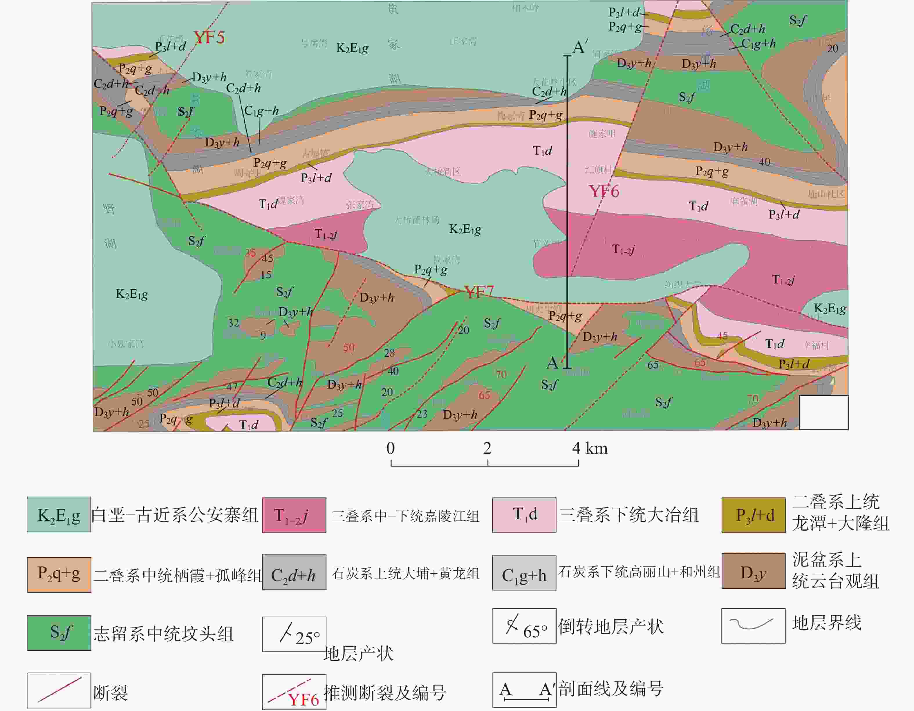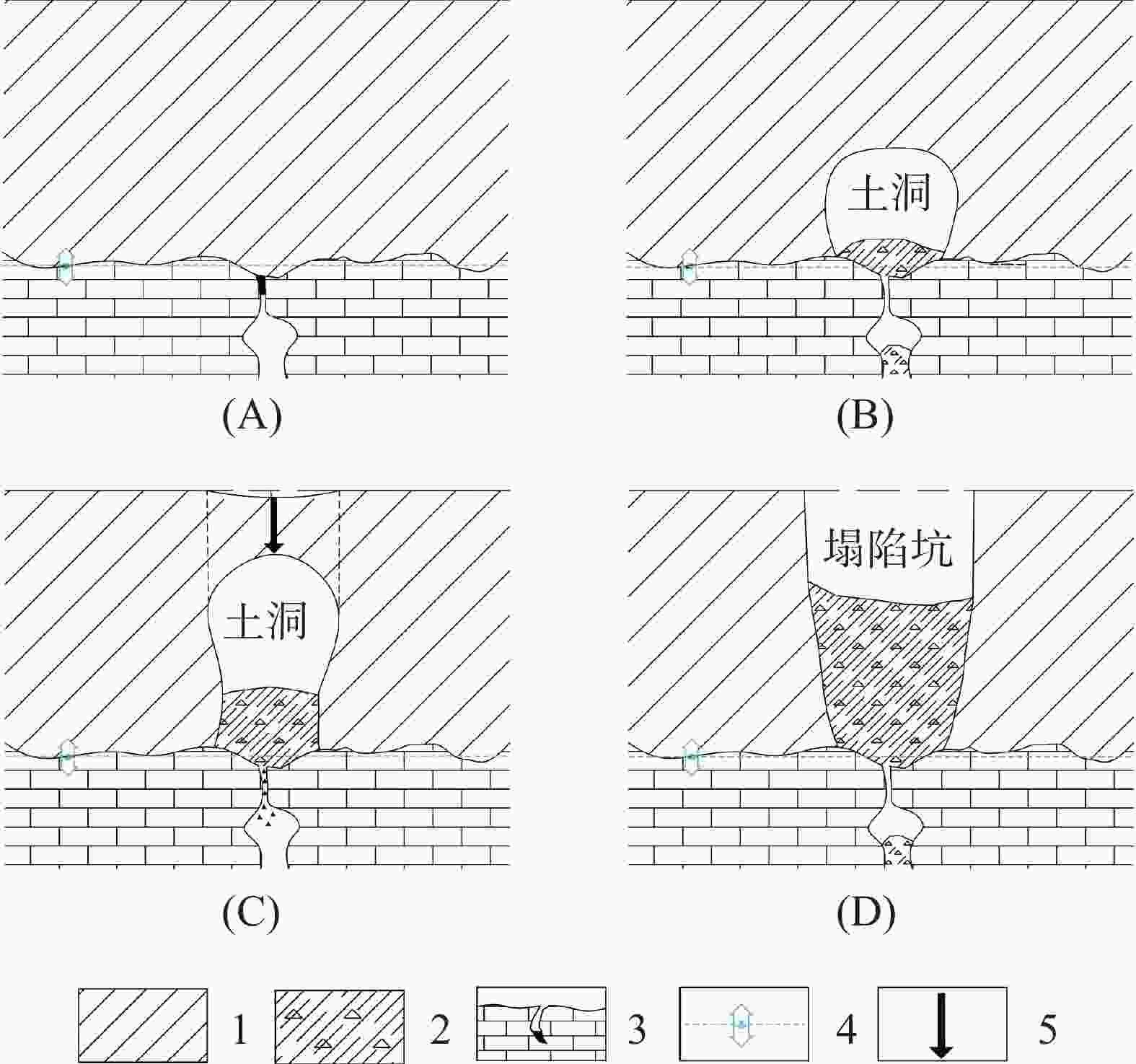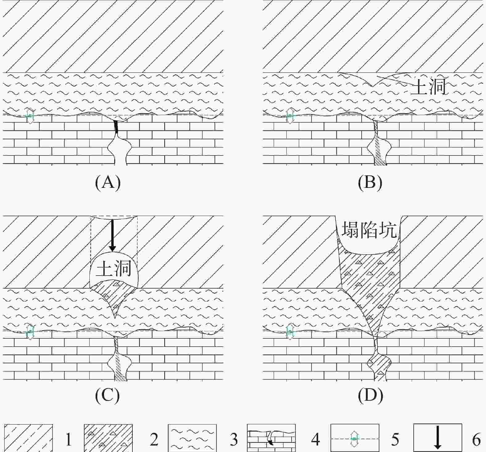 摘要: 为查明武汉纸坊−庙山一带老黏土区岩溶地面塌陷成灾机理,并选取合适方法手段进行监测预警,有效减轻岩溶地面塌陷造成的危害,通过岩溶专项调查,查明了区内可溶岩分布及其地质结构,分析了岩溶地面塌陷形成演化过程及不同塌陷阶段监测方法的选取,调查分析结果表明:该区多为单层结构老黏土分布区,根据盖层黏性土、软弱土、非可溶岩(红层)的上下组合关系,将可溶岩分布区地质结构划分为3类(①、②、③)。不同的地质结构根据土体物理力学特征差异,其发生岩溶地面塌陷的形成演化机理不同:①类结构主要发生土洞型塌陷,②类结构主要发生泥流+土洞复合型塌陷,③类结构由于红层的阻隔,黏性土土洞无法形成,一般不会产生塌陷。结合塌陷的演化过程,土洞的形成演化阶段,重点是采用光纤等技术监测土洞的形成扩展情况,同时也要对地下水位、水气压力等诱发因子进行监测;土洞顶板变形塌陷阶段,因临塌前地表往往会产生少量沉降变形,主要采用精密水准测量或GPS监测等技术监测地表形变。Abstract: