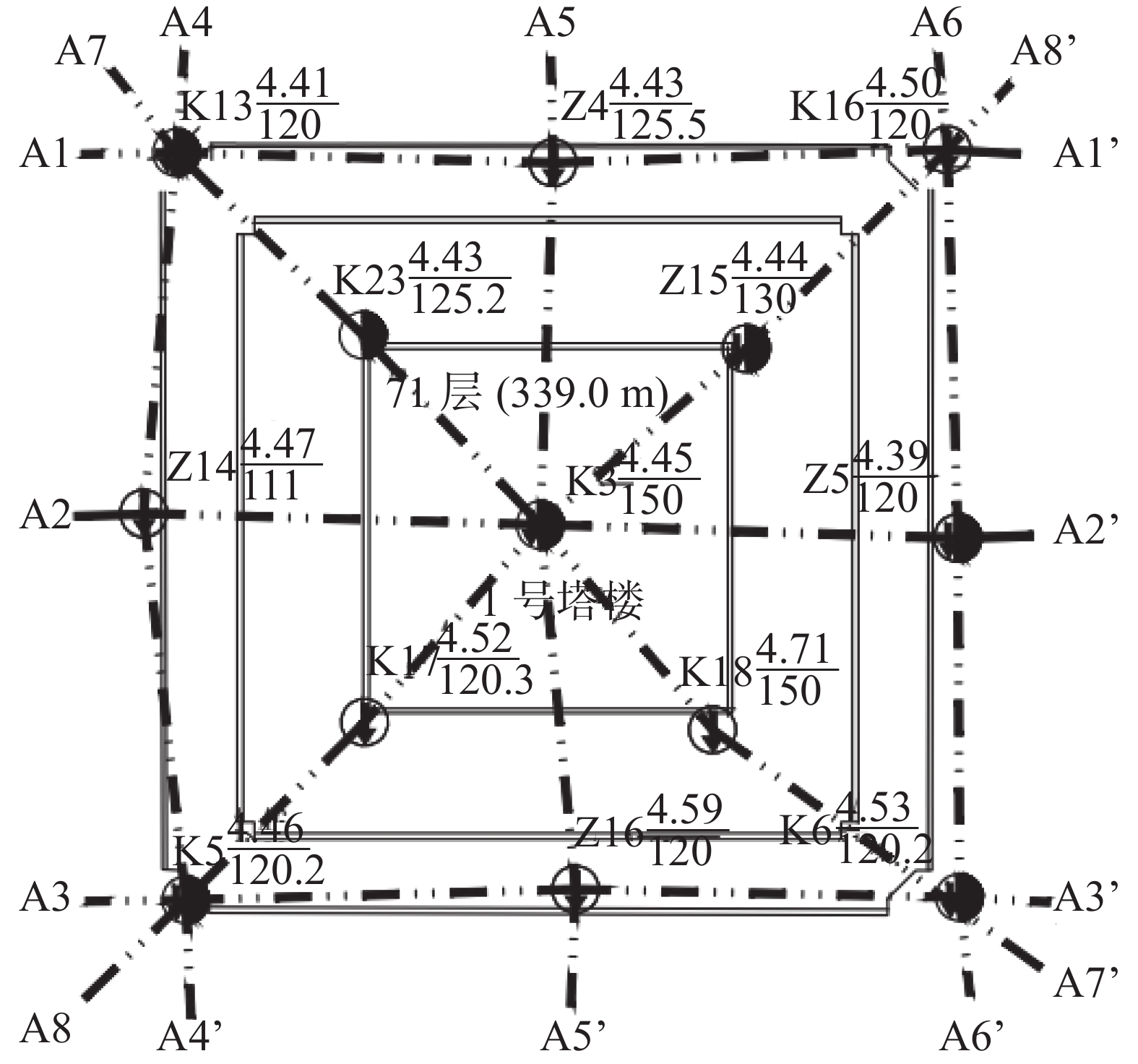 剪力墙71层 57×57 桩筏 20 <0.002 塔楼二 框筒