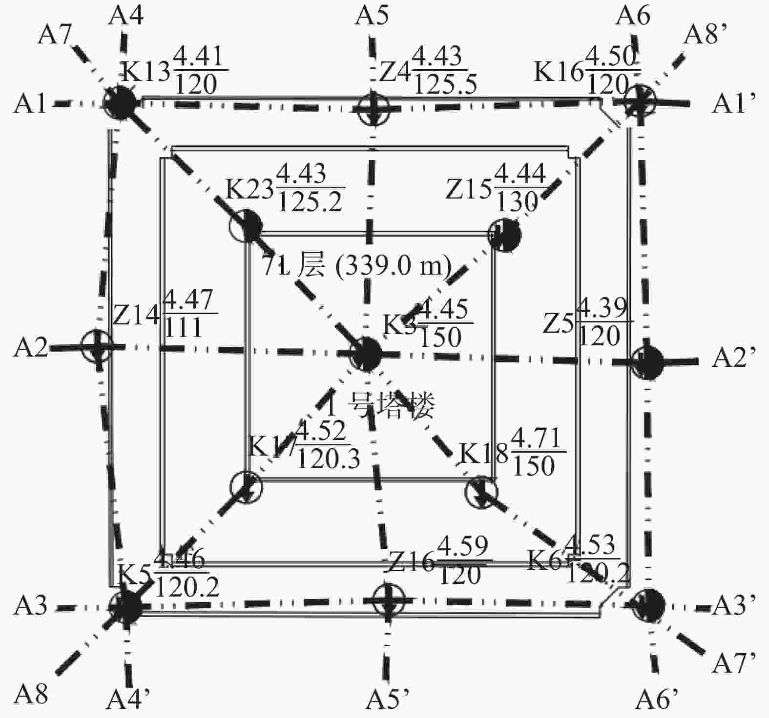 (3处)108.5~109.7 1.2 109.9~113.5 3.6 113.7~116.4 2.7 Z12 97.8~99.2 1.4 表 4 三塔楼塌落高度