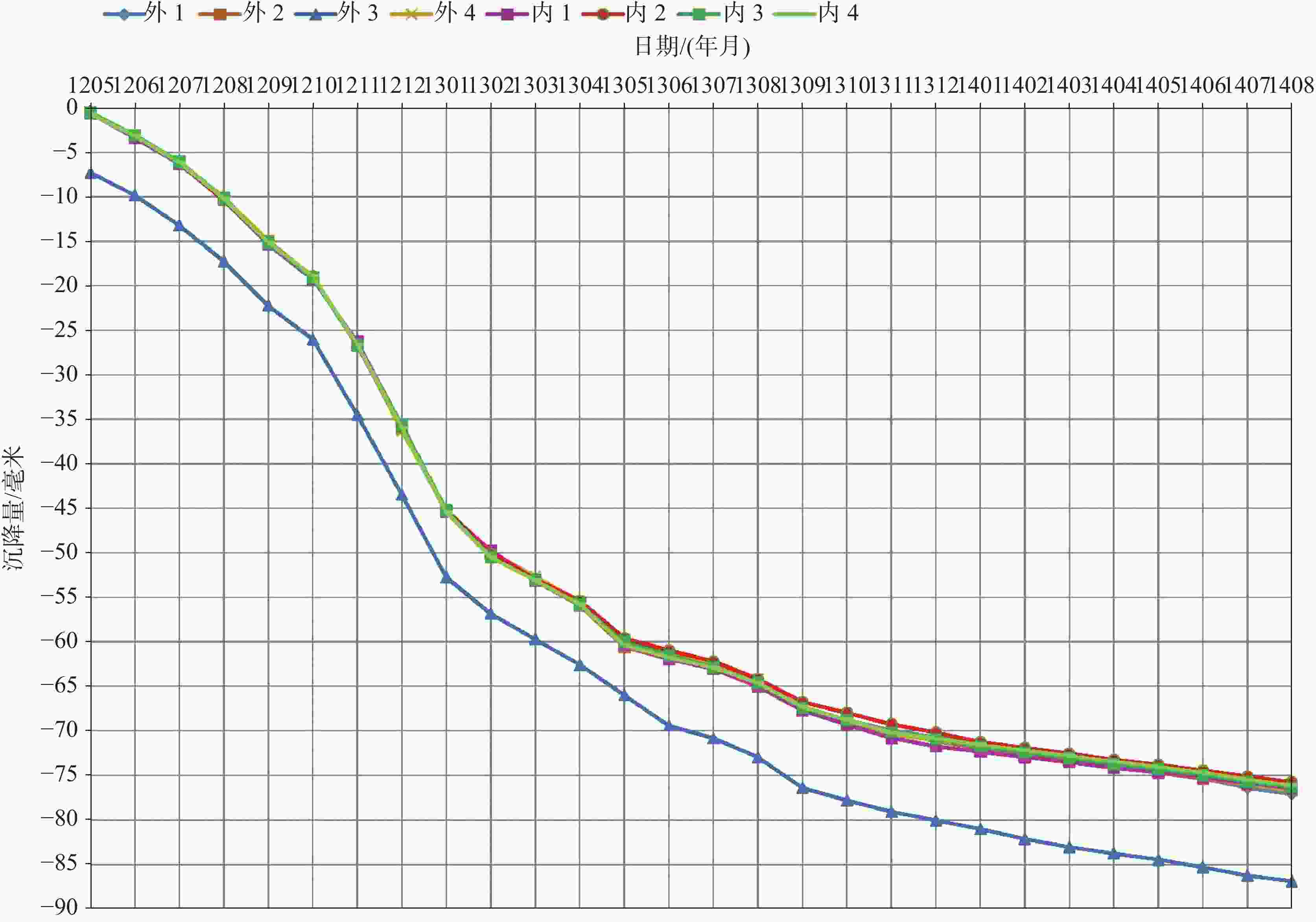沉降/mm塔楼一 框筒