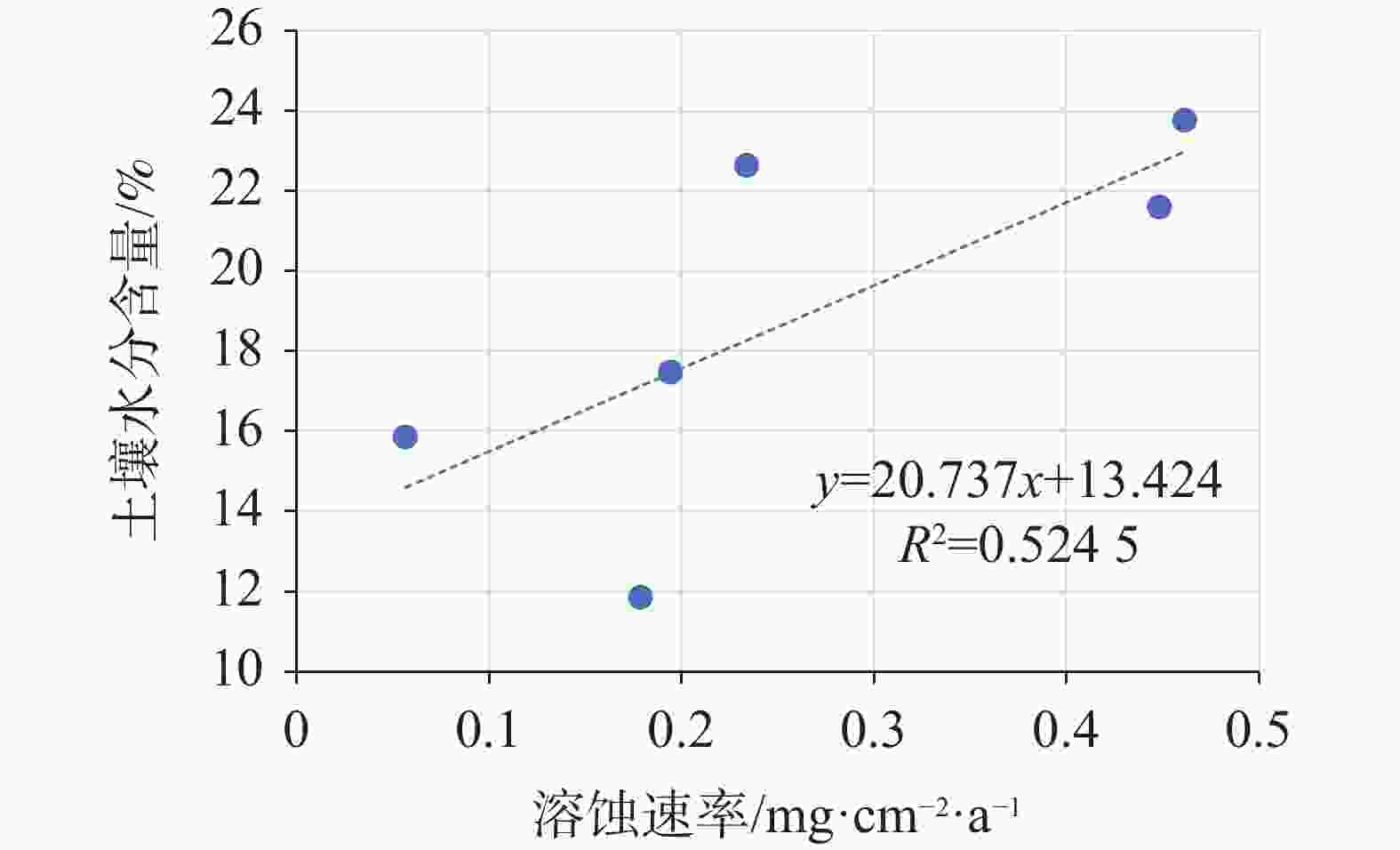 图  4  碳酸盐岩分布区土壤水分含量与溶蚀速率的关系