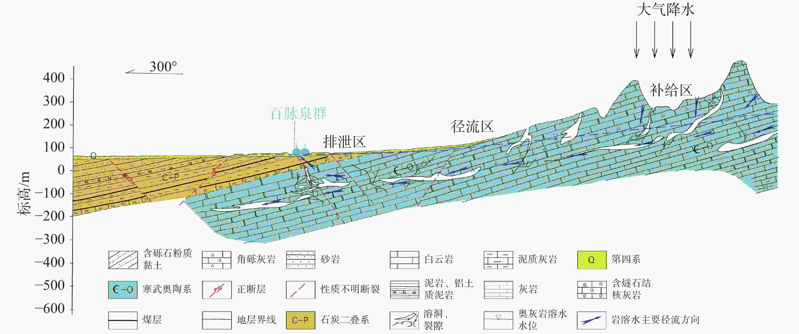 图 5 百脉泉泉群出露区浅部地层结构剖面图