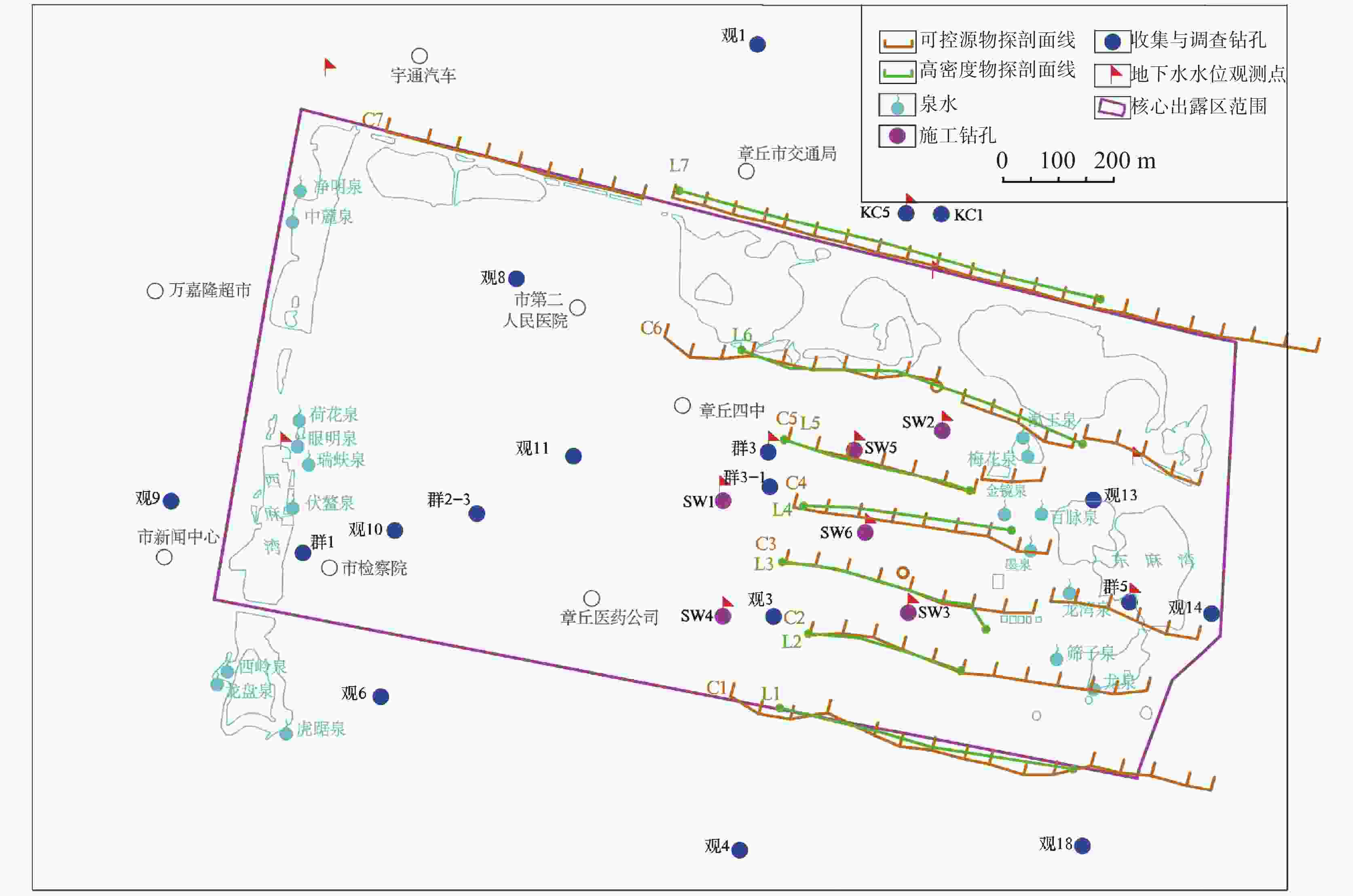 摘要: 为了查清章丘百脉泉出露区浅部微观地质条件及其与泉水的关系,通过物探、钻探、水位观测等多种手段,查明断裂构造发育特征,刻画泉水出露区浅部地层结构,分析出露区泉水喷涌主要影响因素,划分敏感保护区范围。结果表明:出露区断裂构造极为发育,共发育5条断层、1个破碎带,为岩溶水上涌提供了通道;卵砾石层在断裂两侧普遍发育,呈现中间厚向两侧变薄并逐渐尖灭的特征,卵砾石层为泉水上涌后提供了赋存空间,在埋藏较浅处涌出成泉。出露区影响泉水喷涌的主要因素为断裂构造的控制作用和卵砾石层的连通、透水作用。综合断裂构造和卵砾石层的发育厚度划分了敏感区和较敏感区,面积分别为0.78 km2和0.67 km2。Abstract: