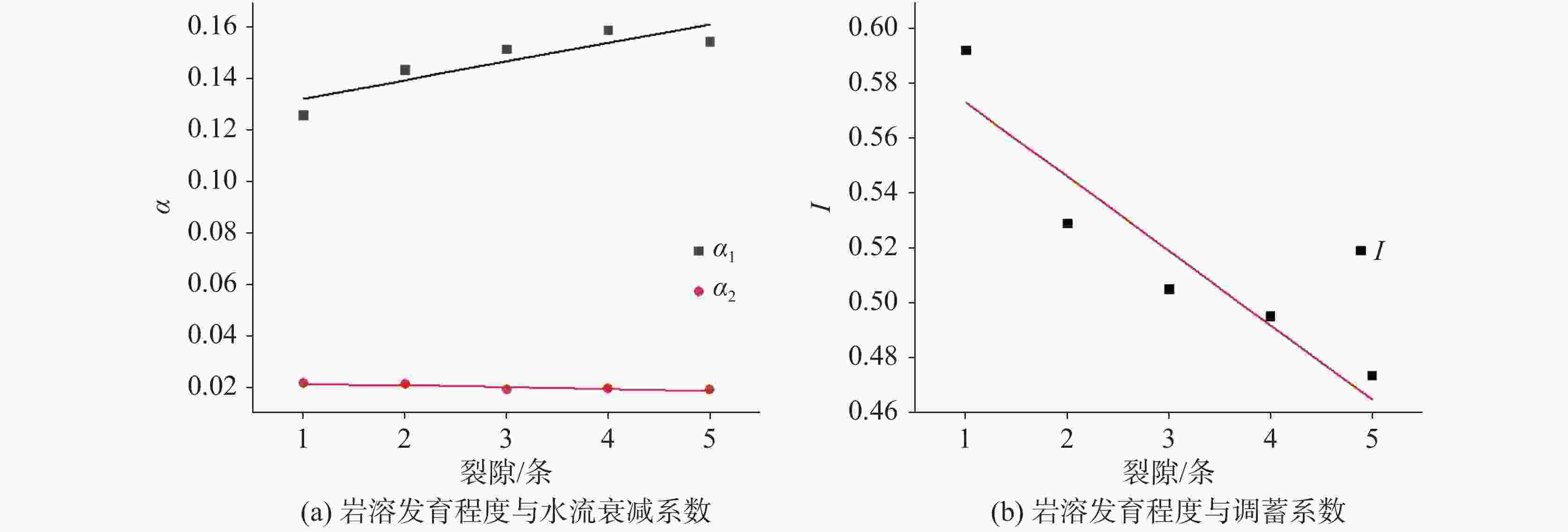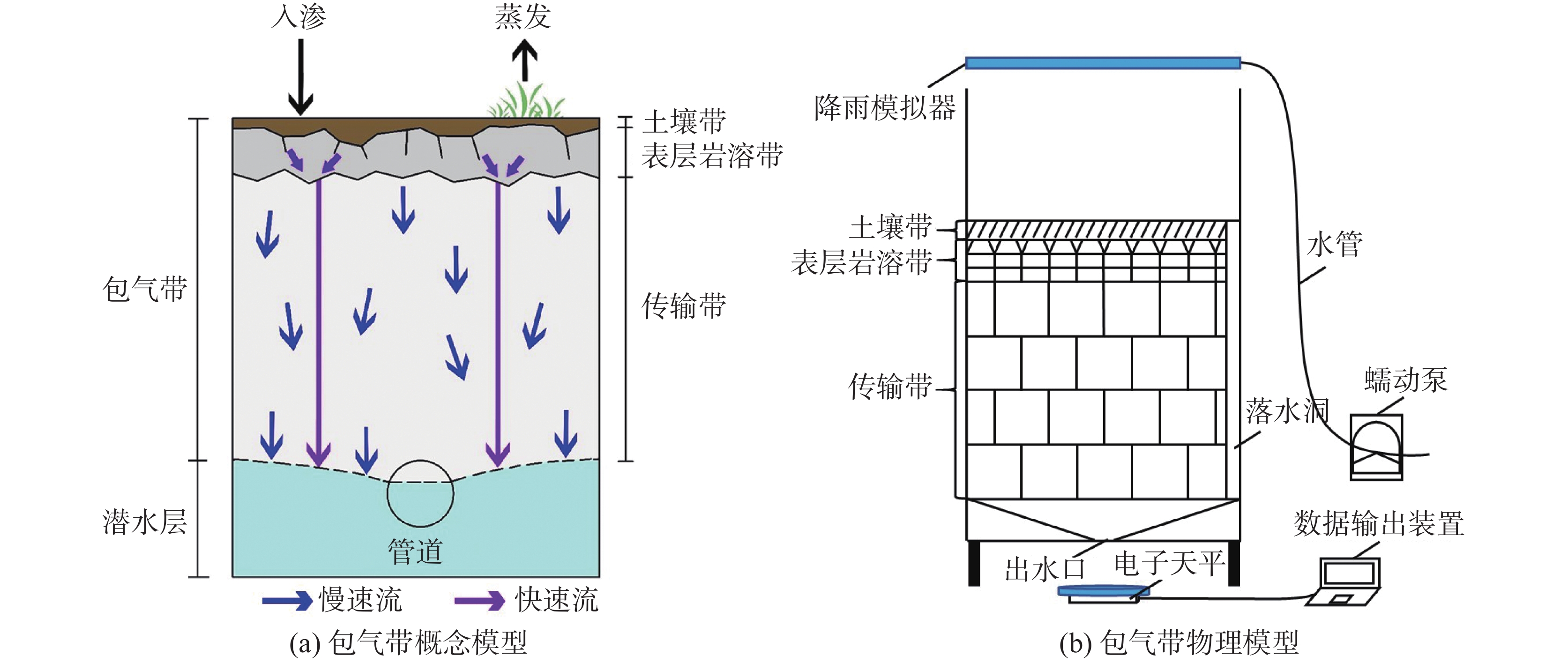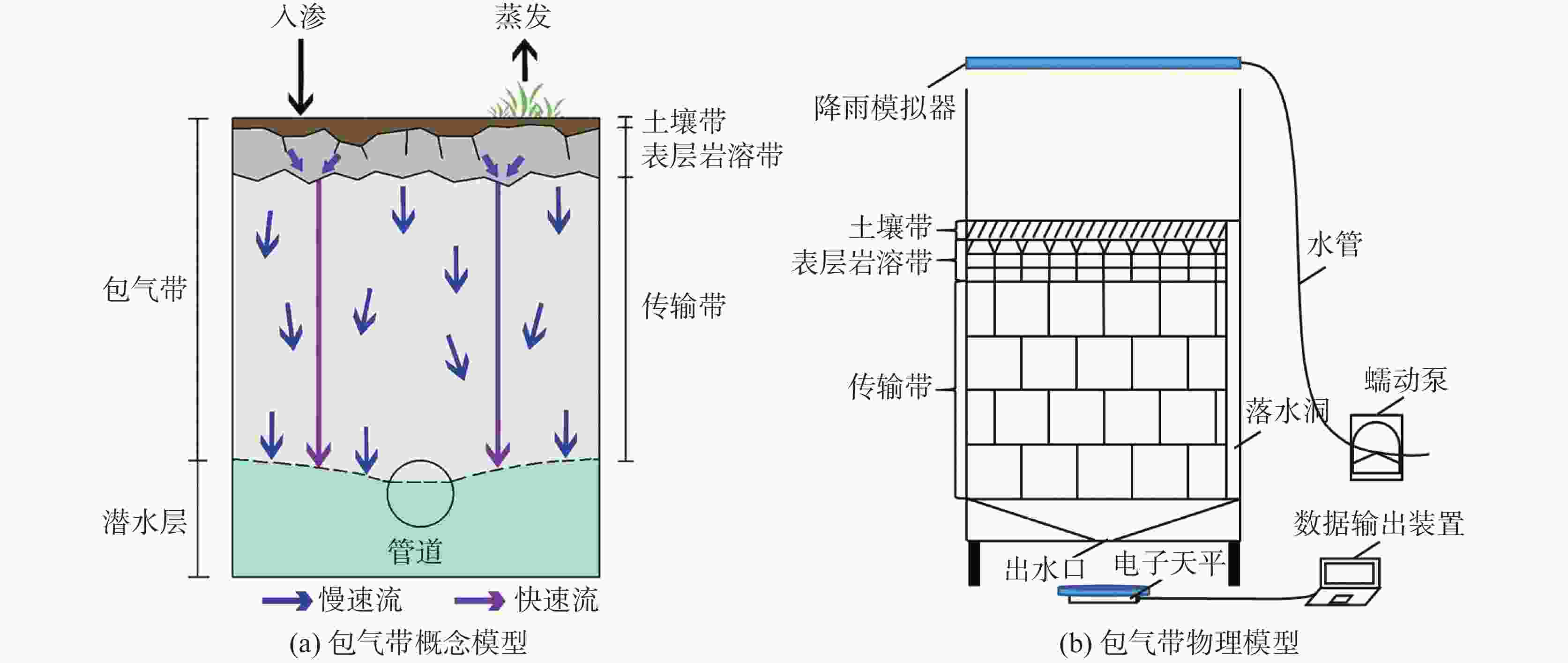 摘要: 我国岩溶水资源丰富,是岩溶地区重要的生产生活用水来源。岩溶包气带对地下水起着涵养调蓄作用,为定量评价岩溶包气带水流衰减过程和调蓄能力影响因素,通过搭建实验室尺度的岩溶包气带物理模型,分析衰减曲线与调蓄系数,探究降雨强度、传输带裂隙发育程度、传输带厚度对岩溶包气带水流过程与调蓄能力的影响。试验结果表明,降雨强度的增大将引起岩溶包气带水流衰减系数的增大与调蓄系数的减小,降雨强度对结构一定的岩溶包气带调蓄能力的影响有一定限度;随着传输带裂隙增加,快速流衰减系数呈增大趋势,慢速流衰减系数呈减小趋势,调蓄系数呈减小趋势;传输带厚度的增加引起衰减系数的减小与调蓄系数的增大,但对调蓄系数的影响不明显。Abstract: