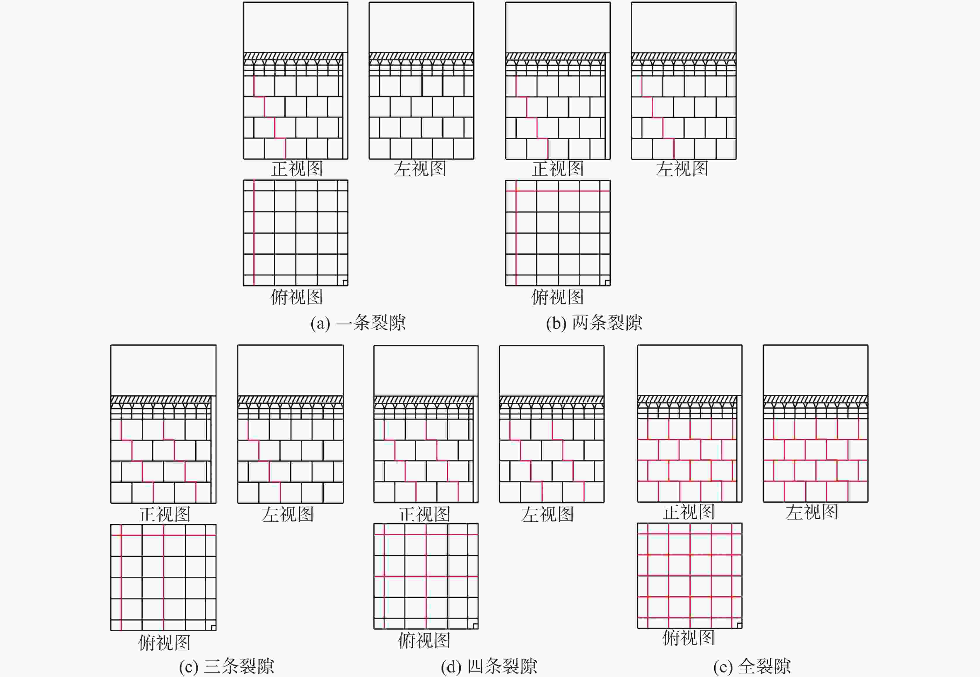 对照组编号 有无落水洞 传输带厚度/cm 地面坡度/° 降雨强度/mm·h−1 裂隙/条 1-a 有 80 15 5 2 1-b 有 80 15 10 2 1-c 有 80 15 20 2 1-d 有 80 15 30 2 1-e 有 80 15 50 2 表 2 传输带裂隙发育程度影响试验试验条件