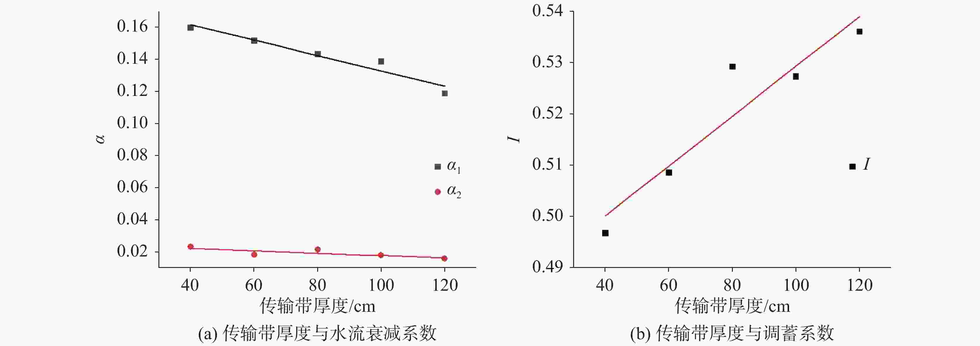 对照组编号 有无落水洞 传输带厚度/cm 地面坡度/° 降雨强度/mm·h−1 裂隙/条 2-a 无 80 0 20 1 2-b 无 80 0 20 2 2-c 无 80 0 20 3 2-d 无 80 0 20 4 2-e 无 80 0 20 全裂隙 表 3 传输带厚度影响试验试验条件