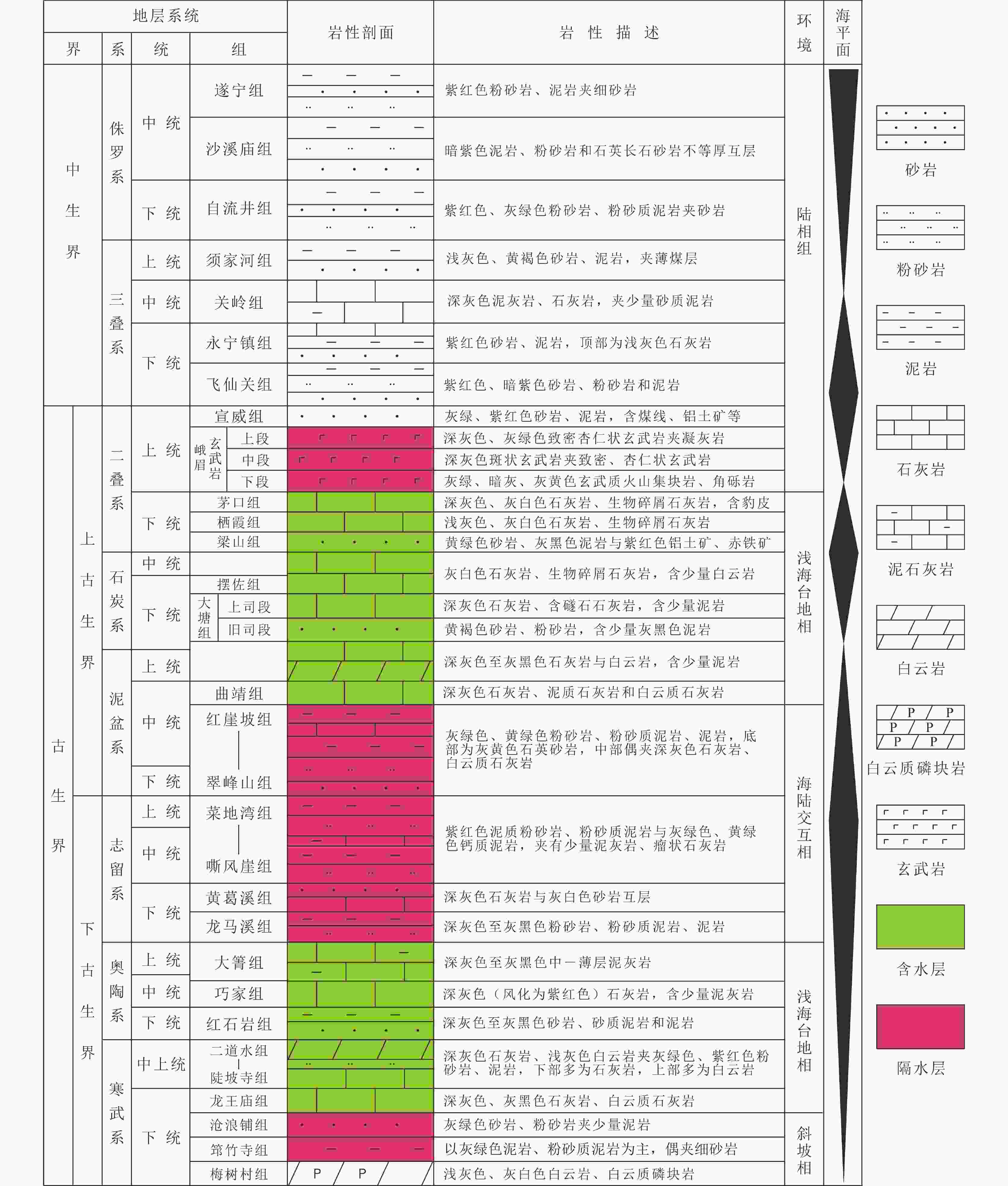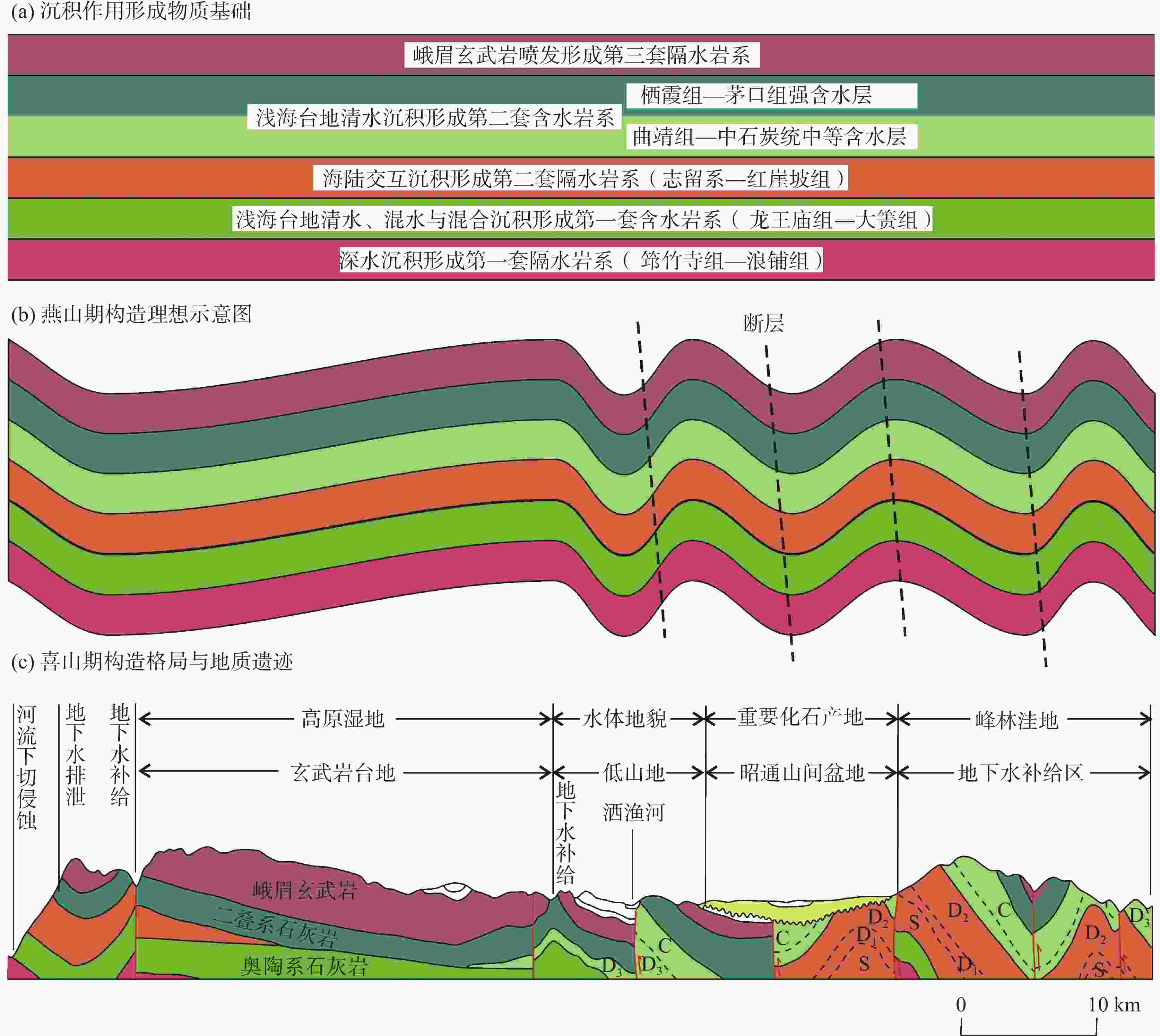 Geological relics are one of the important components of geoscience culture, so studies on their distribution characteristics and genesis are helpful to the effective investigation and evaluation of the landscape resources in geological relics. Zhaotong City is located on the southeastern margin of the Tibetan Plateau in the northeastern Yunnan Province of Southwest China. It belongs to the Yangtze plate of South China, which is located at the southwest edge of the Yangtze block—a secondary tectonic unit within the plate. The formation and distribution of landscapes of geological relics in Zhaoyang district are closely related to the formation and evolution of the Zhaotong intermountain basin. On the basis of detailed field investigations of geological relics, this study comprehensively classifies and analyzes the genesis of various geological relics in Zhaoyang district of Zhaotong City in northeastern Yunnan Province. The strata in the Zhaoyang area are fully exposed, ranging from the Cambrian Meishucun Formation (Zhongyicun member of Dengying Formation) to the Quaternary system (Neogene). The Cambrian and Ordovician systems are mainly exposed in Yanshan township and Dazhaizi township by the Jinsha river, and are mainly buried deep underground in other areas. The Meishucun Formation at the bottom of the Cambrian is a phosphate-bearing rock series, with the upper Qiongzhusi Formation and Canglangpu Formation being a combination of terrigenous sandstone and mudstone. The Longwangmiao Formation to the Erdaoshui Formation and the Ordovician Formation at the top of the lower Cambrian are mostly composed of carbonate rocks. Meishucun Formation at the bottom of the Cambrian is composed of the phosphorus-bearing rock series. The upper Qiongzhusi Formation and Canglangpu Formation are the combination of terrigenous sand and mudstone. The top of the lower Cambrian Longwangmiao Formation to the Erdaoshui Formation and the Ordovician are mostly composed of carbonate rocks. The combination of terrigenous sand and mudstone, accompanied by muddy limestone, is developed in Hong'anpo Formation of the Silurian system to the upper part of middle Devonian. Thick carbonate deposits are developed in Qujing Formation at the top of middle Devonian to the Maokou Formation of the lower Permian. From the Xuanwei Formation at the top of Permian to the Cretaceous, there are only sporadic outcrops—mainly terrigenous sand and mudstone—in Zhaoyang district. The Paleogene mainly consists of sand, mudstone and thick lignite. The bottom of the Neogene is mainly composed of conglomerate with a small amount of limestone and sandstone; the clay soil is interbedded with gravel in the middle part; the grey clay soil is interbedded with siltstone at the bottom. The Quaternary system is filled with swampy sediments of clays, silts, etc. and abundant biological fossils, such as ostracods, stonewort, ichthyodont and viviparus. The results show that the geological relics of Zhaoyang district can be divided into western region and eastern region. The western region is a basalt platform like Dashanbao, including volcanic landform, plateau lakes and wetland. The eastern region takes carbonate rock karst landform of Zhaotong mountain basin as the center by paleontological fossil landscape. The abundant lithology, like carbonate rock, shale, sandstone, basalt and so on, contributes to karst development and karst geomorphology difference. The tectonic landforms formed by different degrees of fault-fold are the main factors of the differentiation of geological relics. Under background of stratigraphic lithology and tectonic geomorphology, hydrologic conditions provide external dynamic factors for abundant geological landscapes. Our research is of great scientific value of geological relics resources in Zhaotong, and also provides a basis for studies on mammal fossils in Late Neogene. It is concluded as follows, (1) Geological relics of Zhaoyang district in Zhaotong City include canyon landform, volcanic landform, karst landform, plateau lake, wetland and fossil landscape, etc., with great value of tourism. (2) Abundant stratigraphic lithology is the basis for the development of different geological relics. Two sets of outcrops of carbonate rocks widely shaped the modern geological landscape with karst landform and water landform in the study area. Vertically, the strata of Zhaoyang district are characterized by an interphase pattern of three sets of water-resisting rock series and two sets of water-bearing rock series, being the geological foundation of geological relics. From the bottom to the top of strata are distributed the water-resisting rock series mainly composed of mudstone from the Cambrian Qiongzhusi Formation to the Canglangpu Formation, the water-bearing rock series composed of carbonate rock and diamictite from the Cambrian Longwangmiao Formation to the Ordovician Daqing Formation, the water-resisting rock series mainly composed of sand and mudstone with marine-terrestrial transitional facies from the Silurian Longmaxi Formation to the Devonian Hongyapo Formation, the water-bearing rock series composed of carbonate rock from the Devonian Qujing Formation to the Permian Maokou Formation, and the water-resisting rock series composed of the Permian Emei basalt. (3) The tectonic process forms a structural pattern of east-west differences in Zhaoyang district, controlling the distribution pattern of geological relics in this district. The reasons are as follows: the Indosinian Movement caused the overall uplift of the northeastern Yunnan into land; the Yanshan movement formed open and gentle folds in the west and relatively tight folds and large-scale faults in the east, resulting in east-west differences; the Xishan movement formed the Zhaotong intermountain basin, caused strong downward erosion of rivers, and controlled the direction of groundwater runoff, becoming a direct controlling factor for the formation of geolog