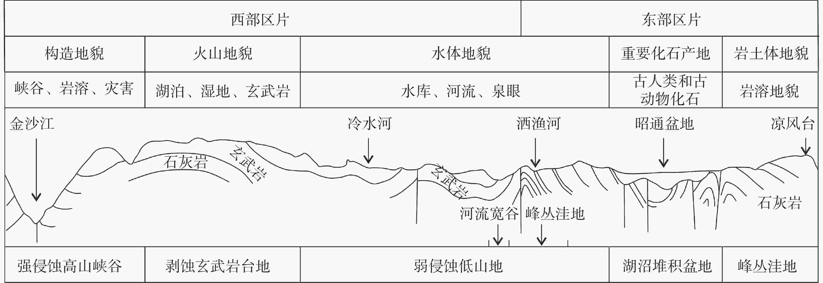 摘要: 文章在收集详细地质遗迹野外调查资料的基础上,对滇东北地区昭通市昭阳区的各种地质遗迹进行综合分类和成因分析。结果表明:昭阳区地质遗迹可分为西部和东部2大区片,西部为以大山包为代表的玄武岩台地,集火山岩地貌、高原湖泊和湿地为一体;东部为以昭通山间盆地为中心的碳酸盐岩岩溶地貌,附有古生物化石景观;碳酸盐岩、泥页岩、砂岩、玄武岩等丰富的岩性及其他作为隔水岩系和含水岩系的相间分布为岩溶作用和岩溶地貌的差异奠定了基础;不同程度的断裂—褶皱形成的构造地貌是现今东、西地质遗迹分异的主控因素;地层岩性—构造地貌背景下的水文条件为塑造丰富的地质景观提供了外部动力因素。Abstract: