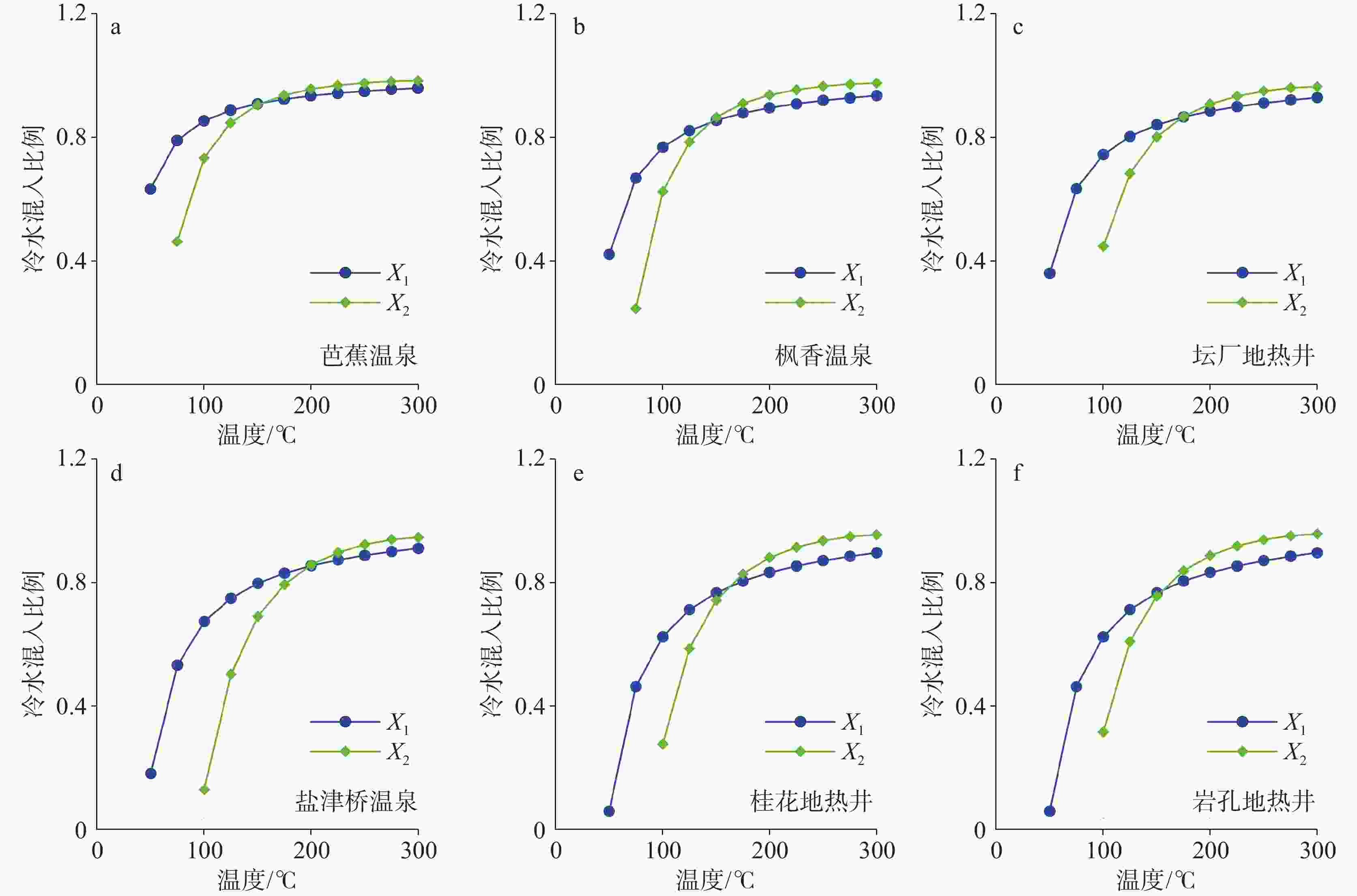 公式(5)据文献[33],公式(6)(7)(8)据文献[34],T(℃)为热储温度,SiO2单位为mg·L−1。