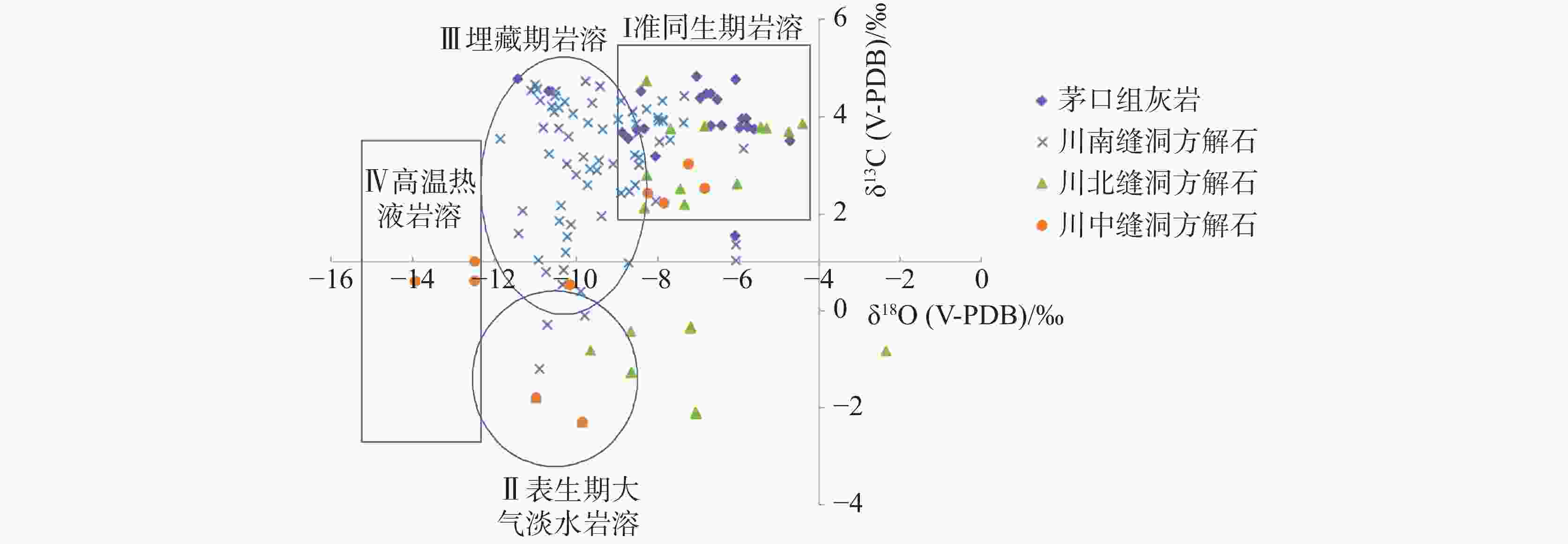 表 1 四川盆地不同地区茅口组缝洞方解石碳氧同位素测试结果统计