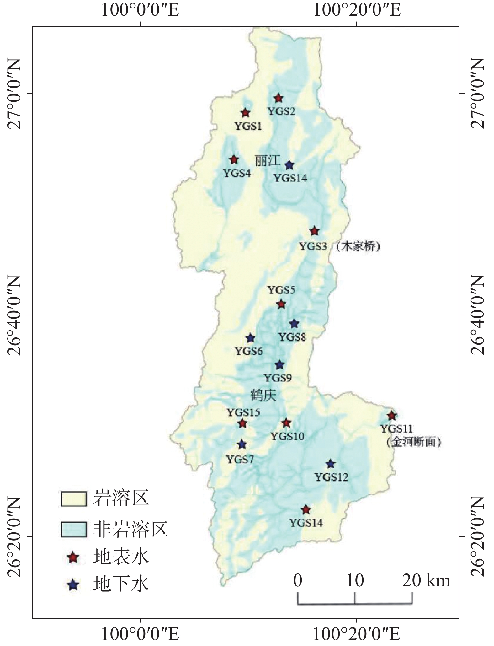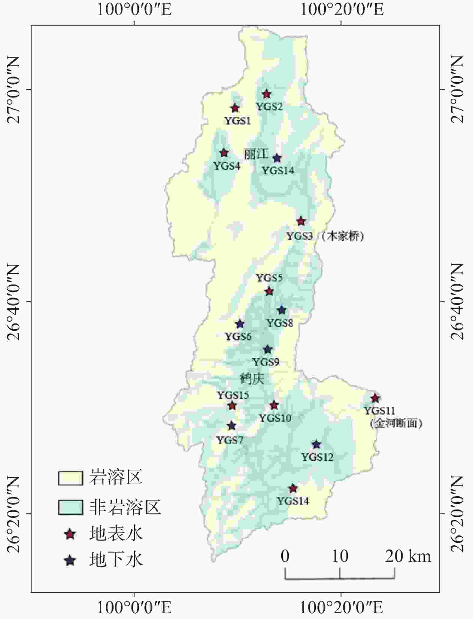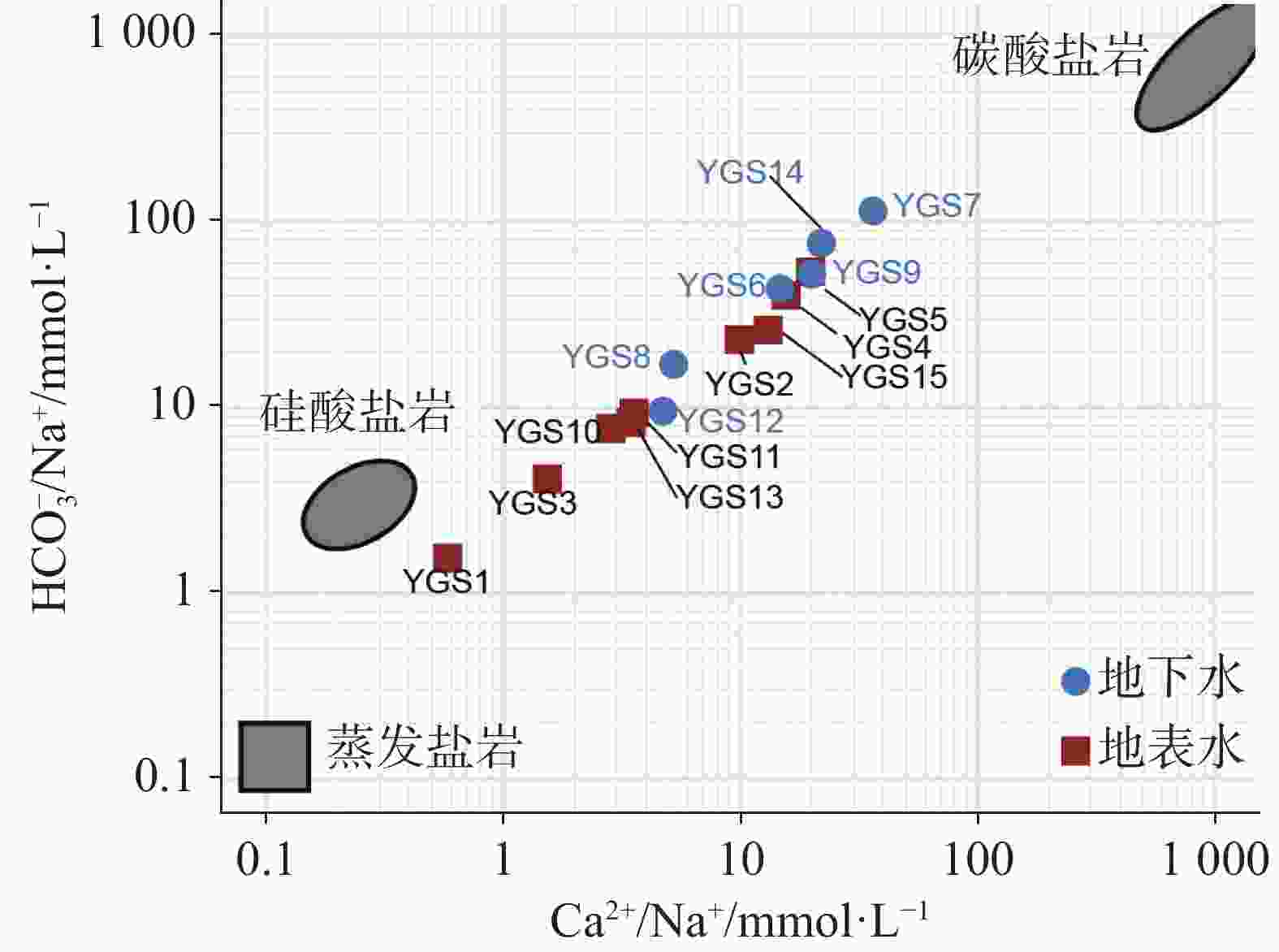 摘要: 流域岩石风化是重要的碳源/汇过程,也是全球碳循环中的重要环节。外源酸参与流域岩石风化,影响碳元素的地球化学循环和流域碳源/汇效应。漾弓江属长江上游金沙江水系,流域岩石风化过程和碳汇效应尚不清楚。在2023年旱季和雨季分别采集了漾弓江的干流和主要支流的水样品(地表水点9个、地下水点6个),对主要离子浓度进行检测,并利用水化学平衡法和Galy估算模型分析该流域的岩风化类型,估算了碳酸与硫酸共同作用下的岩石风化CO2消耗量。结果表明:(1)漾弓江流域水系离子成分主要源于硅酸盐岩和碳酸盐岩风化,水化学类型为HCO3-Ca型或HCO3-Ca·Mg型。(2)硫酸和碳酸共同参与了漾弓江流域的岩石风化过程。在不考虑硫酸作用时,漾弓江流域岩石风化的大气CO2消耗量为38.35 t CO2 ·km−2·a−1,而当考虑了硫酸参与时,岩石风化碳汇量降至25.54 t CO2 ·km−2·a−1,扣除约33%,大大提高了计算精度。(3)漾弓江流域岩石风化的大气CO2消耗量为4.27×104 t CO2·a−1,是一个碳汇过程。硫酸参与流域岩石的风化改变了区域碳循环,这是全球碳循环模型不可忽略重要环节。Abstract: