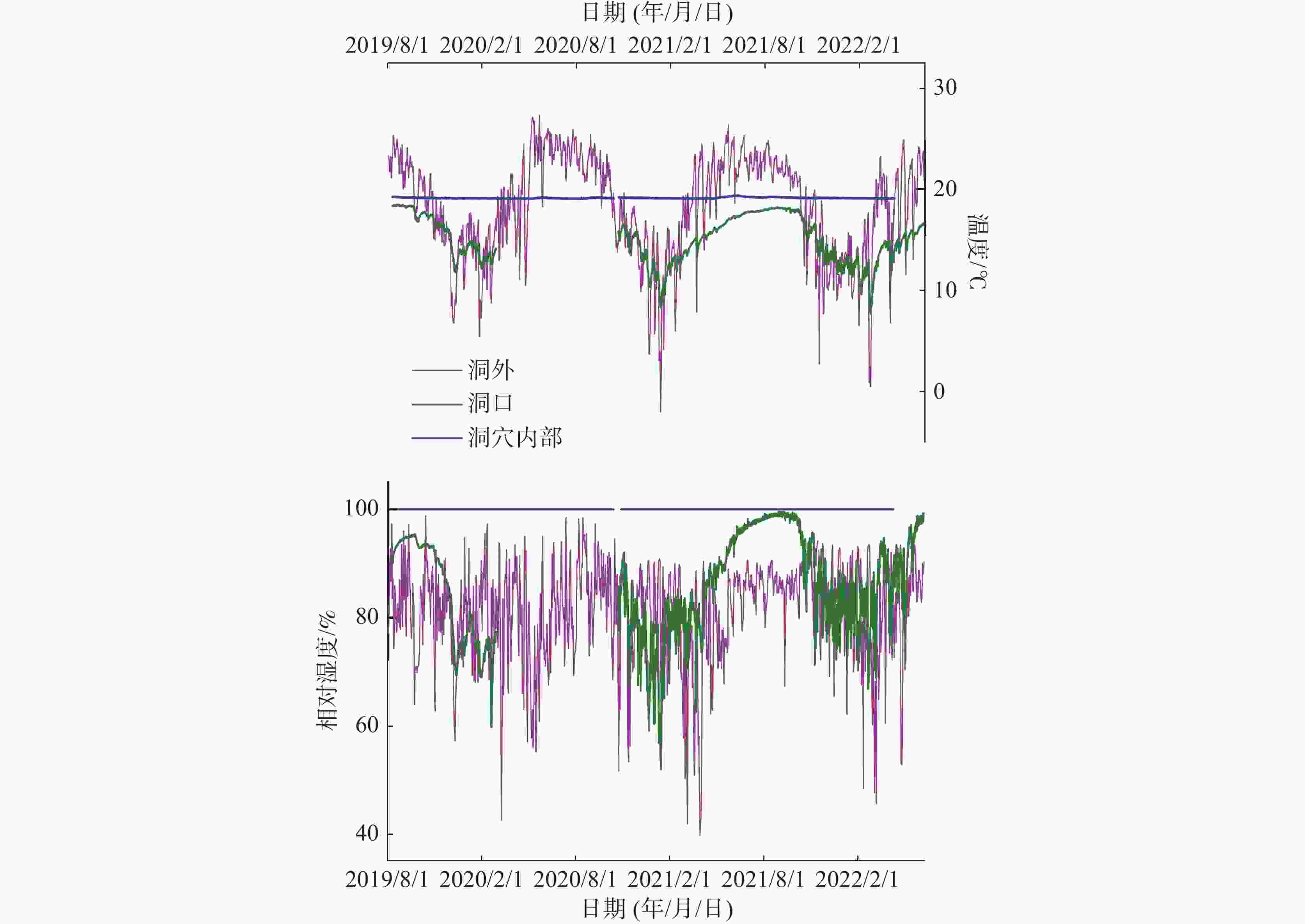 度差值/℃排龙洞(云南) 24.1269 104.1496 1 467 434 60 0.7486 19.10 18.30 0.86 珍珠洞(河北)[16] 38.2600 113.7200 947 100 10 0.7935 9.00 13.00 −4.00 荣发洞(贵州)[12] 25.6414 105.6350 1 079 50 20 0.7310 14.80 18.40 −3.60 凉风洞(贵州)[15,24] 25.2667 108.0500 620 1 000 110 0.7914 15.10 18.60 −3.50 大消洞(贵州)[25] 25.6308 105.6361 1 209 110 22 0.7223 14.90 18.40 −3.46 葫芦洞(南京)[26−27] 32.0500 119.0333 70 64 7.5 0.7192 13.00 15.40 −2.40 仙云洞(福建)[28-29] 26.5500 116.9833 970 2 470 40 0.8270 17.50 19.90 −2.40 芙蓉洞(重庆)[30] 29.2289 107.9036 480 2 700 400 0.8059 16.40 18.70 −2.30 本寨洞(贵州)[31-32] 26.4906 106.0839 1 478 300 0.7659 12.80 15.00 −2.20 玄母洞(贵州)[12] 26.3075 106.1022 1 596 200 25 0.7779 12.80 15.00 −2.20 万象洞(甘肃)[33] 33.3333 104.9833 1 200 1 100 140 0.7383 12.60 14.60 −2.00 七星洞(贵州)[34] 25.9833 107.2667 987 383 90 0.7971 14.30 16.10 −1.85 梁天湾洞(重庆)[35] 29.0833 107.1670 1 460 200 0.8442 13.50 15.00 −1.50 凉风洞(广西)[36−37] 25.1989 110.5167 180 80 65 0.8078 18.4 19.50 −1.10 神奇洞(四川)[38] 28.9333 109.1000 1 407 400 0.7994 11.70 12.80 −1.10 羊口洞(重庆)[39] 29.0333 107.1833 2 140 2 245 0.8223 7.50 8.50 −1.00 羊子洞(重庆)[40−41] 29.7833 107.7833 400 500 0.7520 16.00 17.00 −1.00 暖和洞(辽宁)[42−43] 41.3333 124.9167 627 150 25 0.8787 6.00 7.00 −0.95 茅茅头大岩(广西)[44−45] 25.5833 110.5997 209 690 150 0.8116 18.80 19.50 −0.70 玉华洞(福建)[46−47] 27.1667 117.8167 300 5 000 40 0.8185 18.50 19.00 −0.50 水鸣洞(重庆)[48] 29.7833 107.7833 0.7520 13.50 14.00 −0.50 龙泉洞(贵州)[49] 25.5167 107.8333 520 1 300 115 0.7724 17.80 18.20 −0.40 和尚洞(湖北)[50-52] 30.4469 110.4200 294 250 175 0.8040 17.70 18.00 −0.30 石将军洞(贵州)[31,53] 26.2000 105.5000 1 300 500 100 0.6749 14.70 15.00 −0.30 科桑洞(新疆)[54] 42.8667 81.7500 2 000 0.7594 4.20 4.50 −0.30 水南洞(广西)[55−56] 25.2835 110.2679 170 250 90 0.5745 19.70 19.50 −0.20 东石崖洞(河南)[57-58] 33.7833 111.5667 840 35 0.7777 13.00 13.10 −0.10 玲珑洞(湖南)[59] 27.4833 111.5667 390 400 30 0.7263 18.00 18.00 0.00 盘龙洞(广西)[17] 24.9609 110.3548 200 251 105 0.5745 19.50 19.50 0.00 祥龙洞(陕西)[18] 33.0000 106.3333 940 1 200 50 0.7954 13.00 13.00 0.00 宝晶宫洞(广东)[60−61] 24.1167 113.3500 610 170 0.7063 21.30 21.20 0.10 雪玉洞(重庆)[62] 29.7833 107.7833 233 1643 200 0.7520 17.00 16.50 0.50 董哥洞(贵州)[63] 25.3333 108.0833 608 1 107.7 100 0.8090 15.90 15.30 0.55 沙湾洞(贵州)[64−65] 26.3600 105.7600 1 170 30 7 0.7114 17.50 16.70 0.80 三宝洞(湖北)[54,66-67] 31.6667 110.4333 1 900 200 0.8404 8.50 7.50 1.00 石花洞(北京)[68−70] 39.6500 115.9333 5 000 80 0.6537 13.00 11.90 1.10 朝营洞(贵州)[12] 27.2306 105.1039 1 797 20 10 0.7629 13.50 12.00 1.50 宋崖洞(浙江)[71] 29.1667 119.6667 268 809 0.7629 19.00 17.50 1.50 神农宫(江西)[18] 28.7000 117.2500 0.4566 19.10 17.40 1.70 蓬莱仙洞(安徽)[26] 30.2333 117.5333 170 3 000 0.8263 18.00 16.00 2.00 仙人洞(云南)[72−73] 24.1167 104.1333 1 443 90 0.7328 18.70 16.70 2.00 韩家冲洞(贵州)[12] 27.2422 105.0739 1 818 30 17 0.7855 14.20 12.00 2.20 开元洞(山东)[74] 36.4089 118.0347 340 1 280 110 0.7261 15.00 12.80 2.20 九天洞(山东)[13,75] 36.2667 118.0668 470 1 010 0.6836 15.00 12.50 2.50 鸡冠洞(河南)[57] 33.7667 113.5667 900 5 600 35 0.8213 16.40 13.11 3.29 兴隆洞(河北)[11] 40.4833 117.4833 710 42 120 0.7990 12.40 9.10 3.30 本溪庙洞(辽宁)[76−77] 41.0500 125.5167 193 500 50 0.8286 11.50 7.40 4.10 本溪水洞(辽宁)[78−79] 42.2972 124.0713 262 5 800 0.8451 12.00 7.80 4.20 表 3 温度与影响因子的相关性分析
