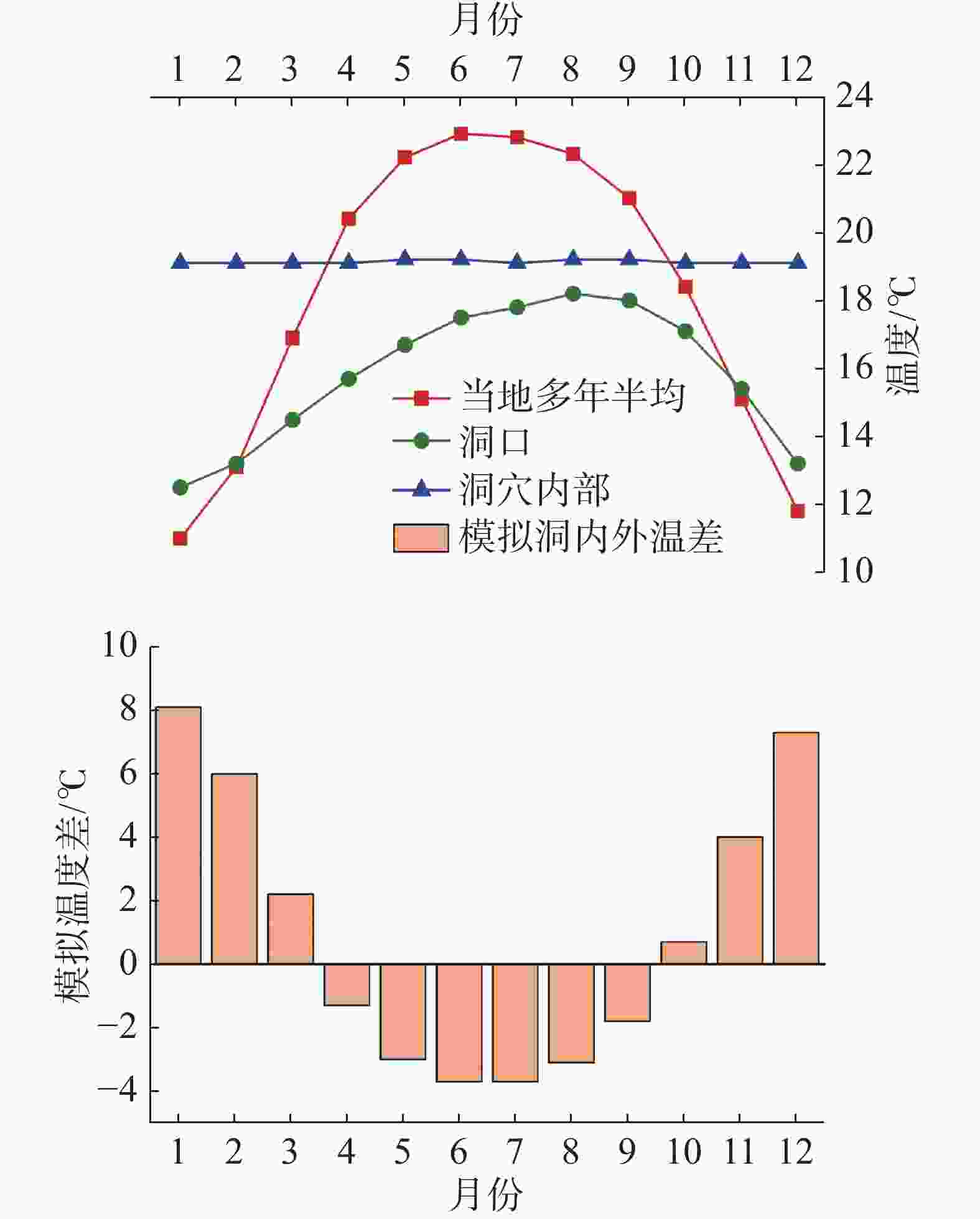 表 1 排龙洞洞外、洞口和洞穴内部月平均温度对比