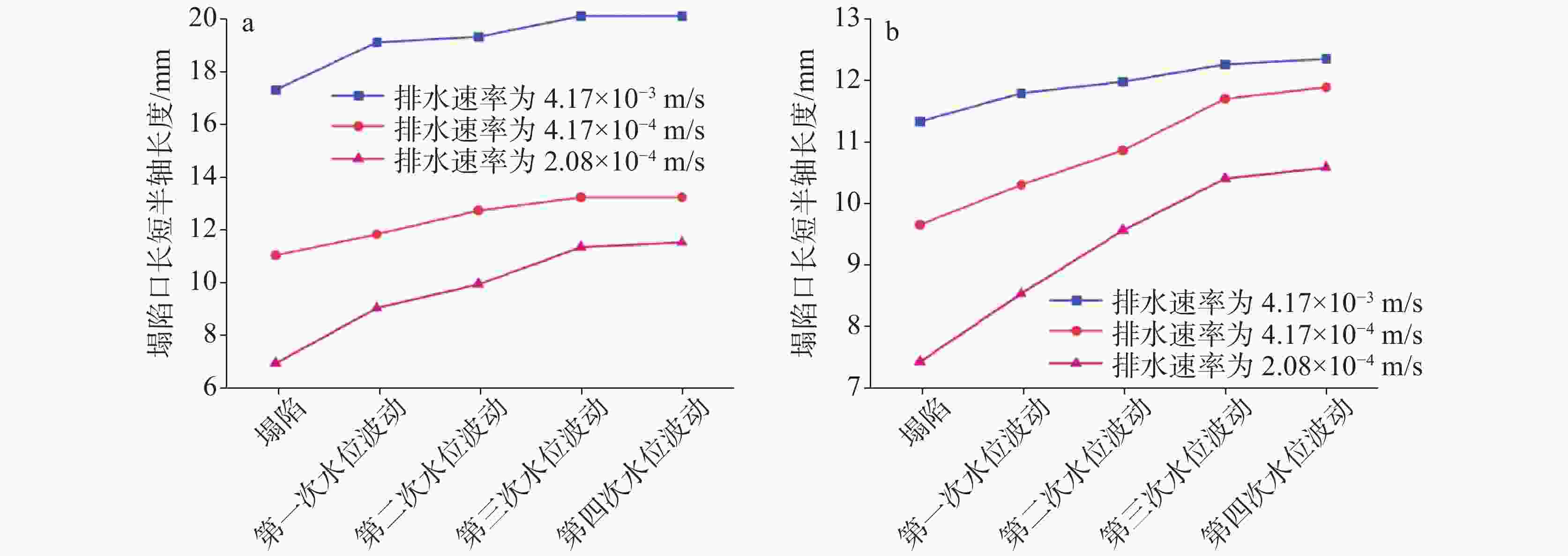 图  13  不同排水速率下塌陷口长短半轴长度变化图