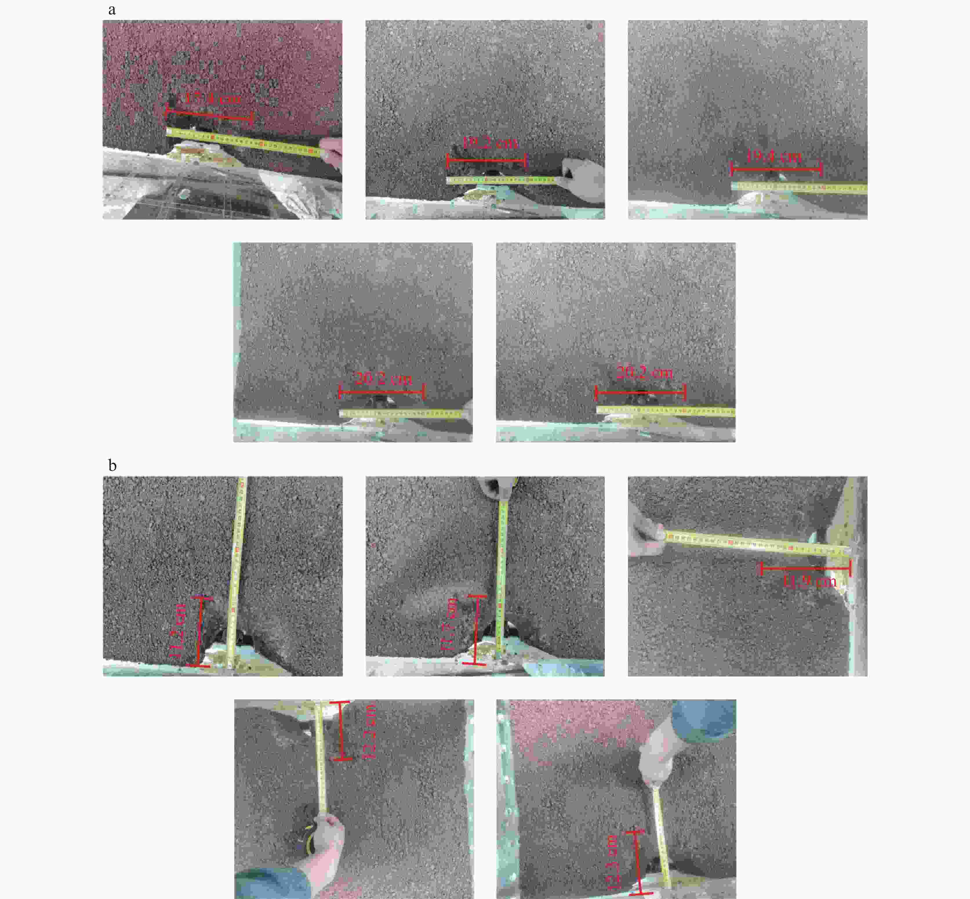 Figure  14.  Measurement diagram of the semi-axis length of the collapse opening at the drainage rate of 4.17×10−3 m·s−1. (a) diagram of major half axis measurement; (b) diagram of short half axis measurement