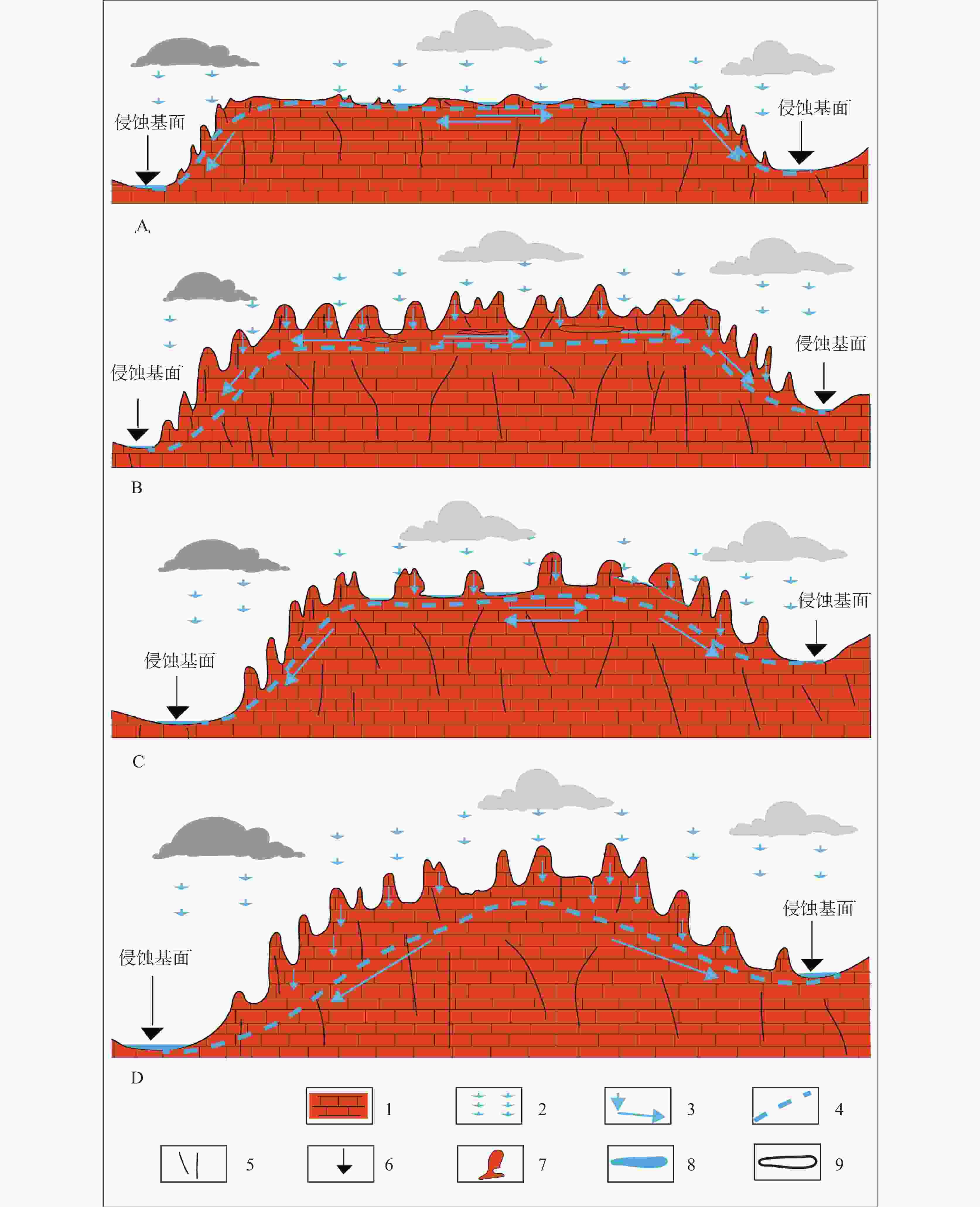图 15 区内岩溶台地水文地貌形成演化示意图