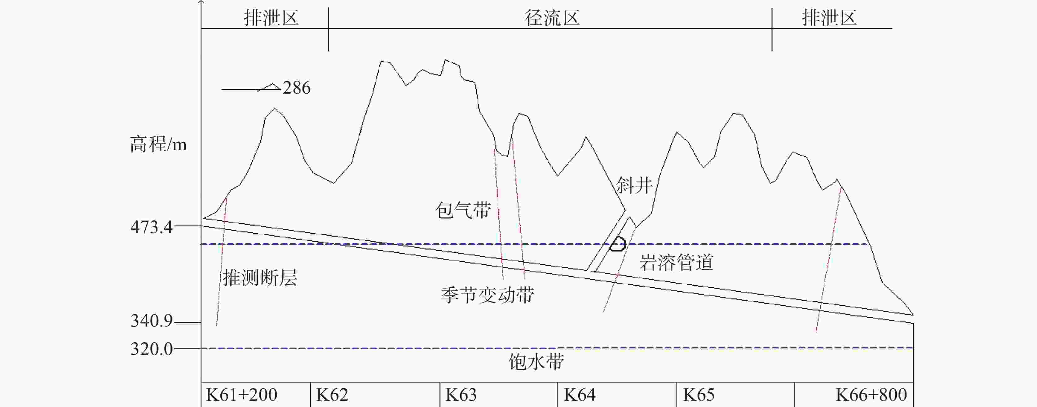 Note: The karst scale in this table refers to the diameter of the karst cave, the width of the solution trough and the gap exposed by the longitudinal section.表 2 隧道各里程岩溶地下水与隧道关系 Table 2. Relationship between tunnel and karst groundwater in each mileage of the tunnel 里程 是否排泄区