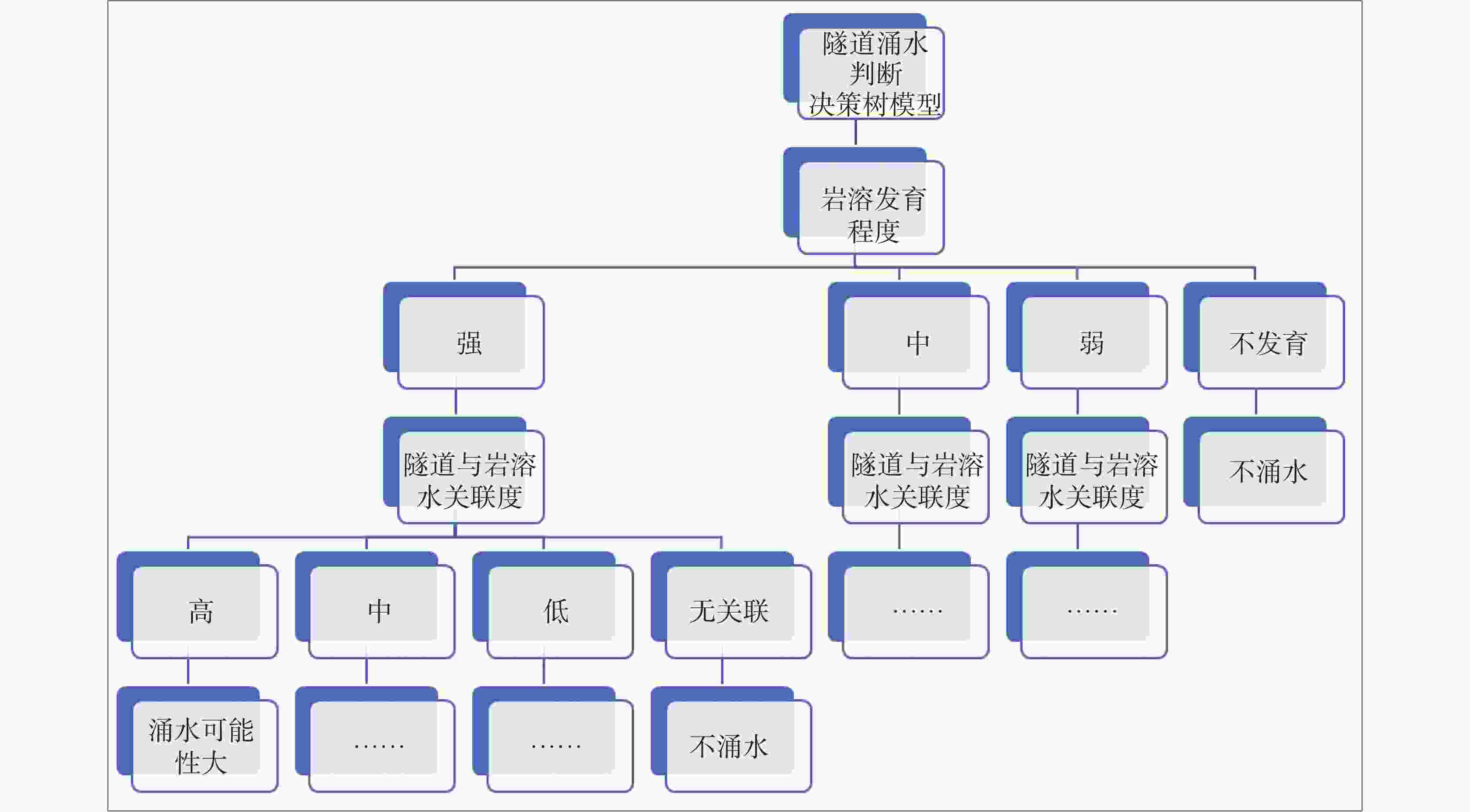 [1] 蒋树屏, 林志, 王少飞. 2018年中国公路隧道发展[J]. 隧道建设, 2019, 39(7):1217-1220.JIANG Shuping, LIN Zhi, WANG Shaofei. Development of highway tunnels in China in 2018[J]. Tunnel Construction, 2019, 39(7): 1217-1220. [2] 李术才, 王康, 李利平, 周宗青, 石少帅, 柳尚. 岩溶隧道突水灾害形成机理及发展趋势[J]. 力学学报, 2017, 49(1):22-30. doi: 10.6052/0459-1879-16-345LI Shucai, WANG Kang, LI Liping, ZHOU Zongqing, SHI Shaoshuai, LIU Shang. Mechanical mechanism and development trend of water-inrush disasters in karst tunnels[J]. Chinese Journal of Theoretical and Applied Mechanics, 2017, 49(1): 22-30. doi: 10.6052/0459-1879-16-345 [3] 蒙彦, 雷明堂. 岩溶区隧道涌水研究现状及建议[J]. 中国岩溶, 2003, 22(4):287-292. doi: 10.3969/j.issn.1001-4810.2003.04.007MENG Yan, LEI Mingtang. The advance and suggestion for the study on discharge rate in karst tunnel gushing[J]. Carsologica Sinica, 2003, 22(4): 287-292. doi: 10.3969/j.issn.1001-4810.2003.04.007 [4] Thomas Goetz. The decision tree[M]. Rodale, 2010 (ISBN10: 9781605297293). [5] 伍小刚. 隧道超前地质预报物探方法选择与解译阈值研究[D]. 成都:成都理工大学, 2020.WU Xiaogang. Study on method selection and interpretation threshold of advanced geological forecast in tunnel[D]. Chengdu: Chengdu University of Technology, 2020. [6] 韩行瑞. 岩溶隧道涌水及其专家评判系统[J]. 中国岩溶, 2004, 23(3):213-218.HAN Xingrui. Karst water bursting in tunnel and expert judging system[J]. Carsologica Sinica, 2004, 23(3): 213-218. [7] 林永生, 邹胜章, 朱丹尼. 岩溶隧道涌水原因揭秘[J]. 中国矿业, 2020, 29(Suppl.1):582-583, 586.LIN Yongsheng, ZOU Shengzhang, ZHU Danni. The causes of water bursting in karst tunnel[J]. China Mining Magazine, 2020, 29(Suppl.1): 582-583, 586. [8] 王健华, 李术才, 李利平, 许振浩. 隧道岩溶管道型突涌水动态演化特征及涌水量综合预测[J]. 岩土工程学报, 2018, 40(10):1880-1888. doi: 10.11779/CJGE201810015WANG Jianhua, LI Shucai, LI Liping, XU Zhenhao. Dynamic evolution characteristics and prediction of water inflow of karst piping-type water inrush of tunnels[J]. Chinese Journal of Geotechnical Engineering, 2018, 40(10): 1880-1888. doi: 10.11779/CJGE201810015 [9] 杨光. 基于多源异构数据的滑坡灾害决策树预测模型研究[D]. 北京:中国地质大学(北京), 2016.YANG Guang. Research on decision-tree prediction model of landslide based on multi-source heterogeneous data[D]. Beijing: China University of Geosciences (Beijing), 2016. [10] 洪郡伶. 整合层次分析法及决策树於设备投资决策之实证研究[D]. 北京:清华大学, 2017.HONG Junling. An empirical investigation of decision making on investment of equipment using analytic hierarchy process and decision tree analysis[D]. Beijing: Tsinghua University, 2017. [11] 陈语. 隧道大变形灾害动态风险评估与支护决策研究[D]. 成都:成都理工大学, 2017.CHEN Yu. Dynamic risk assessment and risk-based support decision analysis on tunnel squeezing[D]. Chengdu: Chengdu University of Technology, 2017. [12] 丁胜祥, 董增川, 张莉. 基于决策树算法的洪水预报模型[J]. 水力发电, 2011, 37(7):8-11, 33.DING Shengxiang, DONG Zengchuan, ZHANG Li. Flood forecasting model based on decision tree algorithm[J]. Water Power, 2011, 37(7): 8-11, 33. [13] Yongli Gao, E Calvin Alexander Jr. Sinkhole hazard assessment in Minnesota using a decision tree model[J]. Environmental Geology, 2008, 54(5): 945-956. doi: 10.1007/s00254-007-0897-1