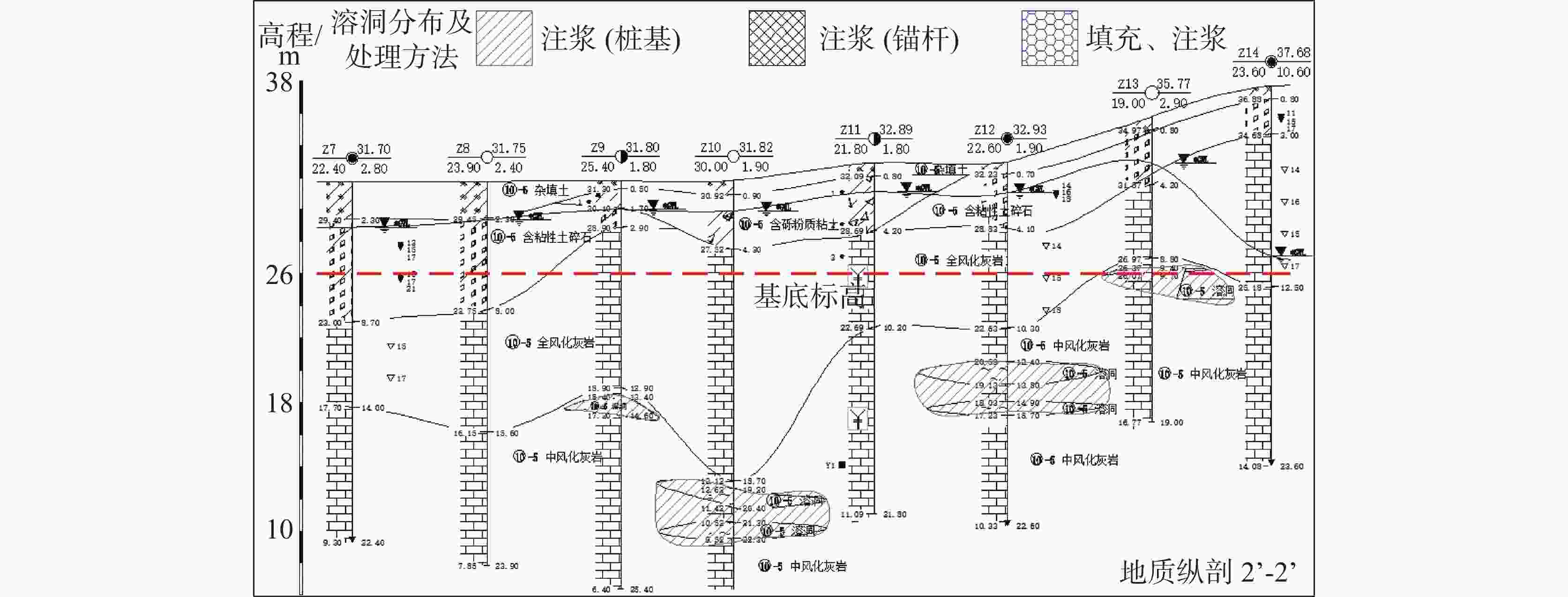 [1] 刘之葵. 岩溶区溶洞及土洞对建筑地基影响的研究[D]. 长沙:中南大学, 2004.LIU Zhikui. Study on effect of cave and cave soil on building foundation in karst region[D]. Changsha: Central South University, 2004. [2] 吴春寅, 曹锋, 朱嗣昭, 孙晋阳, 周庆富, 许公瞻, 华涛, 陈波. 山东省枣庄市十里泉、丁王庄一带地面塌陷的成因及防治对策[J]. 水文地质工程地质, 1998(5): 27-29. [3] 康彦仁. 岩溶地面塌陷的形成条件[J]. 中国岩溶, 1988, 7(1):9-17.KANG Yanren. Forming condition of land collapse in karst regons[J]. Carsologica Sinica, 1988, 7(1): 9-17. [4] 李治国. 隧道岩溶处理技术[J]. 铁道工程学报, 2002, 19(4):61-67. doi: 10.3969/j.issn.1006-2106.2002.04.014LI Zhiguo. Technology of treatment for karst encountered in tunnel construction[J]. Journal of Railway Engineering Society, 2002, 19(4): 61-67. doi: 10.3969/j.issn.1006-2106.2002.04.014 [5] 龙艳魁. 长沙地铁1号线工程岩溶洞穴稳定性及其病害处理研究[D]. 长沙:中南大学, 2012.LONG Yankui. The study of stability and processing technology of karst caves in Changsha Metro Line 1[D]. Changsha: Central South University, 2012. [6] 李广涛. 广州地铁三号线北延段岩溶处理设计[J]. 隧道建设, 2009, 29(1):61-64.LI Guangtao. Design of karst treatment: Case study on north extension section of No. 3 line of Guangzhou metro[J]. Tunnel Construction, 2009, 29(1): 61-64. [7] 李陆平, 尤继勤, 王吉连. 蔡家湾汉江特大桥钻孔桩施工及岩溶处理技术[J]. 桥梁建设, 2009(5):60-63.LI Luping‚ YOU Jiqin, WANG Jilian. Techniques of construction and karst ground handling for bored piles of Caijiawan Hanjiang river bridge[J]. Bridge Construction, 2009(5): 60-63. [8] 刘瑞琪. 城市岩溶区地铁隧道的溶洞超前探测及处治技术[J]. 石家庄铁道大学学报(自然科学版), 2012, 25(2):42-46.LIU Ruiqi. Construction treatment technology for city metro in karst area[J]. Journal of Shijiazhuang Tiedao University (Natural Science), 2012, 25(2): 42-46. [9] 蒋忠信, 秦小林, 袁茂林, 唐晓春. 南昆铁路典型隧道区溶洞研究[J]. 铁道工程学报, 1995,12(1):53-62.JIANG Zhongxin, QIN Xiaolin, YUAN Maolin, TANG Xiaochun. Research of typical solution cave in tunnel region on Nanning-Kunming railway[J]. Journal of Railway Engineering Society, 199, 12(1): 53-62. [10] 王青. 桥梁桩基岩溶处理方法分析[J]. 现代交通技术, 2013, 10(1):24-26.WANG Qing. Analysis of treatment for bridge pile foundation in karst area[J]. Modern Transportation Technology, 2013, 10(1): 24-26. [11] 蒋继昭. 南(宁)柳(州)高速公路洛维大桥桩基岩溶问题[J]. 广西交通科技, 1998, 23(3):22-23. [12] 匡乐红, 彭振斌. 在工业与民用建筑中岩溶地基处理方法探讨[J]. 岩土工程界, 2001, 4(11):43-44. [13] 姜燕, 杨光华, 黄忠铭, 乔有梁, 张玉成. 复杂岩溶场地下的高层建筑地基处理[J]. 岩土力学, 2015, 36(Suppl.1):430-438.JIANG Yan, YANG Guanghua, HUANG Zhongming, QIAO Youliang, ZHANG Yucheng. Ground treatment of high-rise buildings in complex karst region[J]. Rock and Soil Mechanics, 2015, 36(Suppl.1): 430-438. [14] 建筑地基基础设计规范:GB50007-2011[S]. 北京:中国建筑工业出版社出版, 2011.Code for design of building foundation: GB50007-2011[S]. Beijing: China Architecture and Building Press, 2011. [15] 张俊萌, 方从启, 朱杰, 朱俊峰. 超深层岩溶地基上高层建筑桩筏基础性能研究[J]. 地下空间与工程学报, 2015, 11(2):343-349.ZHANG Junmeng, FANG Congqi, ZHU Jie, ZHU Junfeng. Research on performance of pile-raft foundation of high-rise building on ultra deep karst ground[J]. Chinese Journal of Underground Space and Engineering, 2015, 11(2): 343-349. [16] 李想, 尹骥, 卫佳琦, 韦马季. 深覆盖岩溶地区高层建筑桩基优化实践[J]. 中国岩溶, 2019, 38(4):591-599. doi: 10.11932/karst20190418LI Xiang, YIN Ji, WEI Jiaqi, WEI Maji. Optimization of pile foundation for high-rise buildings in deep-covered karst areas[J]. Carsologica Sinica, 2019, 38(4): 591-599. doi: 10.11932/karst20190418 -