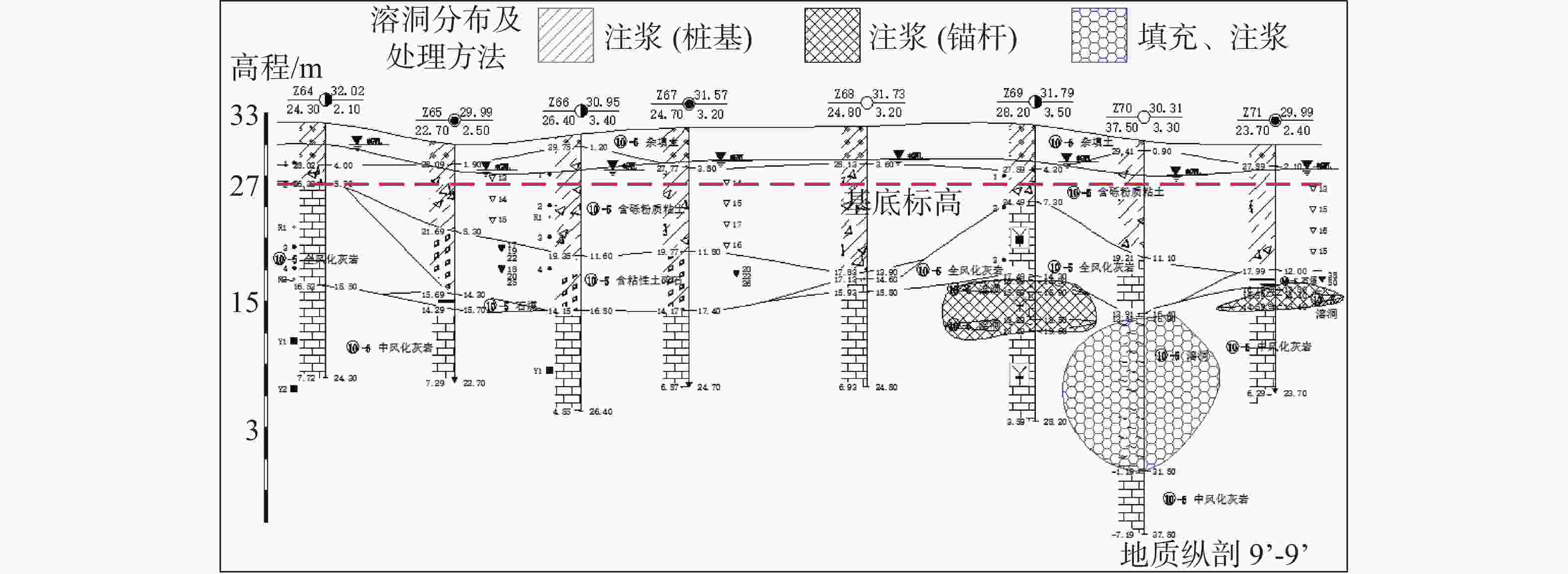 岩石质量指标RQD值为10%~70%表 2 岩溶分布统计表