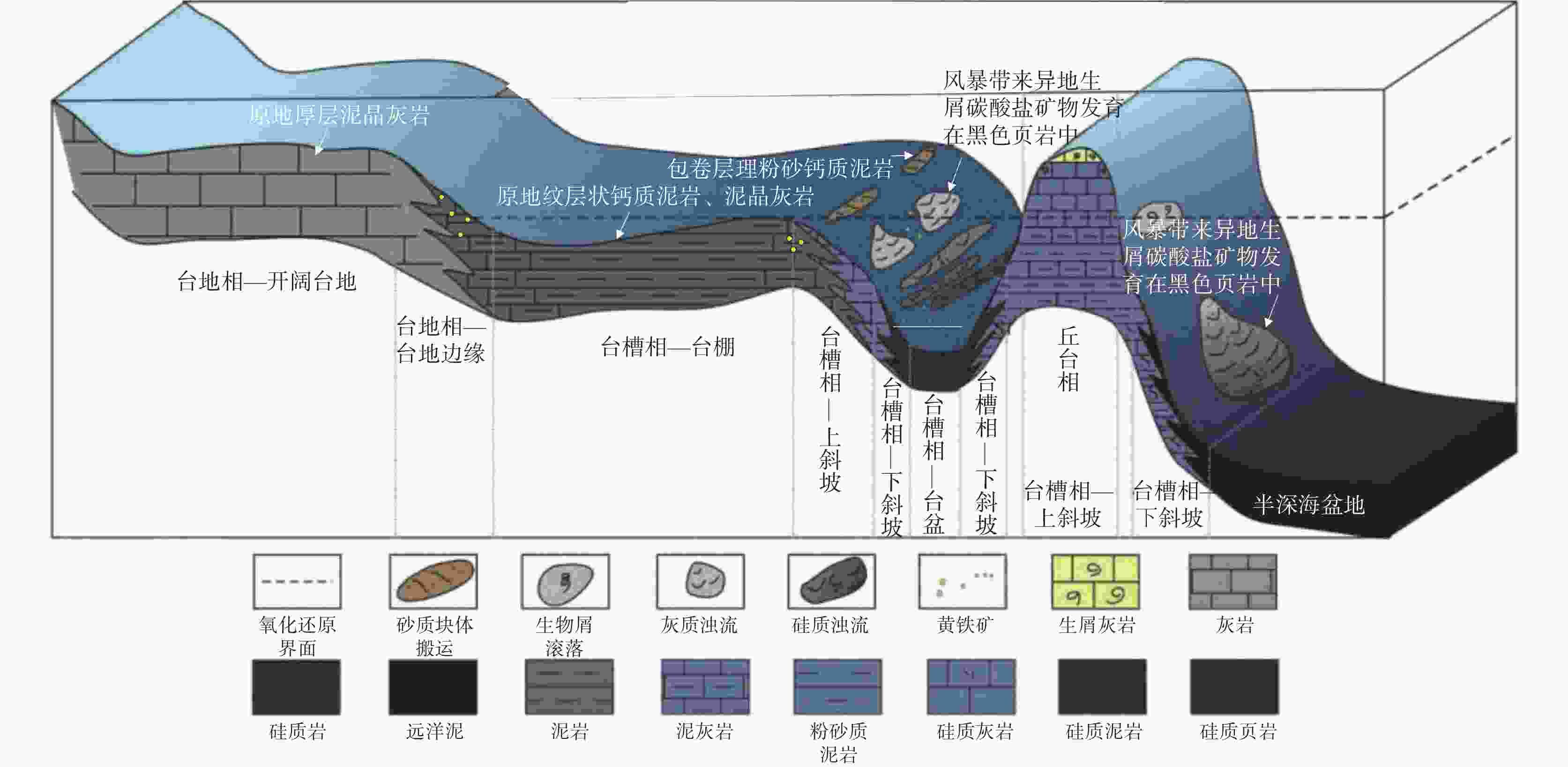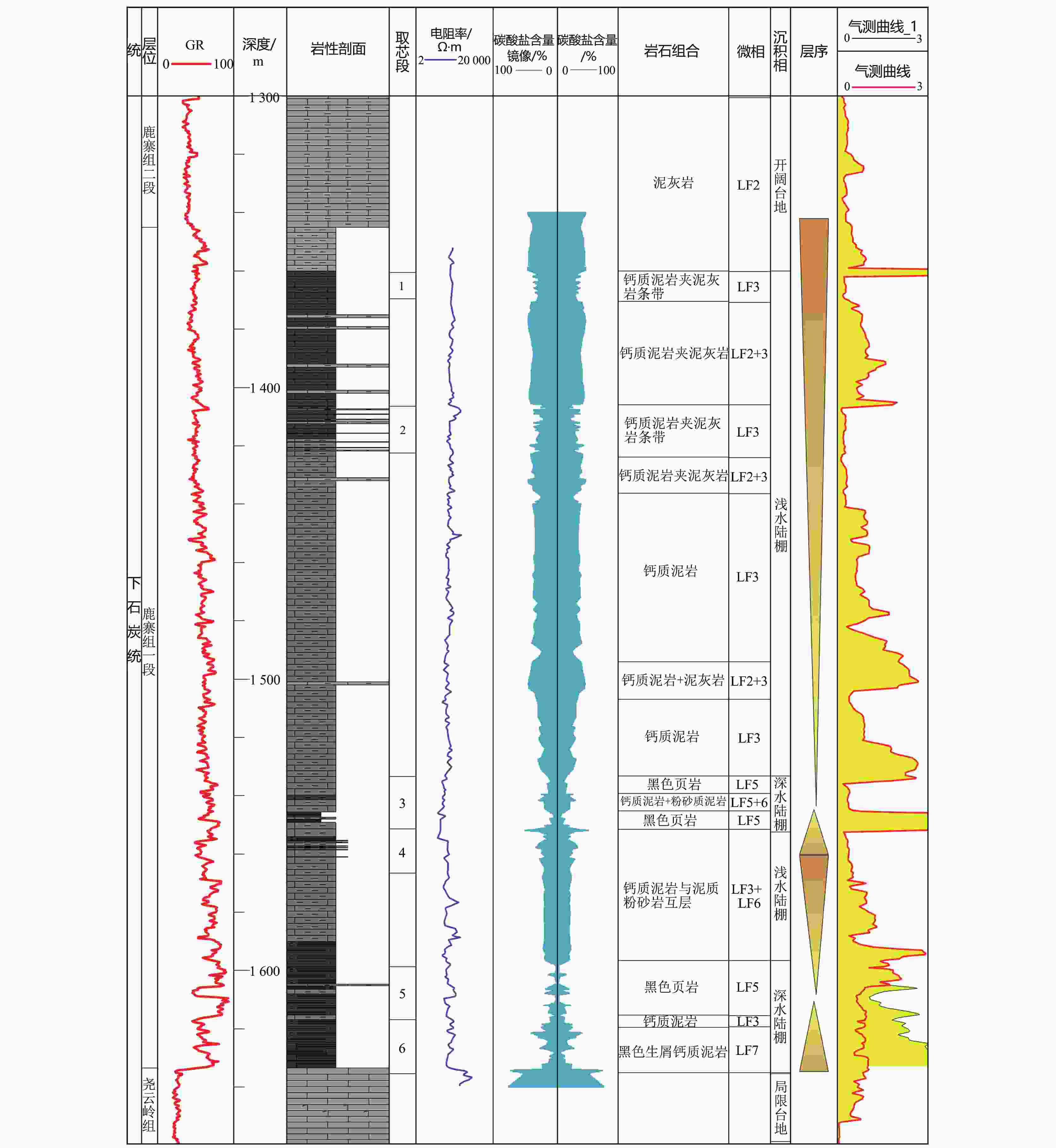 摘要: 目前桂中坳陷下石炭统鹿寨组展现出较好的页岩气勘探前景,但页岩中碳酸盐矿物含量较高,异于国内主要页岩气层的碳酸盐矿物含量,其碳酸盐矿物成因及其对页岩气产气的影响未知。文章以桂融页1井及其野外剖面为研究对象,运用X-全岩衍射、岩石薄片鉴定等手段,发现鹿寨组页岩中碳酸盐矿物以方解石为主,含量为5%~80%,平均为 30.33%,并含少量白云石(0%~9%),平均为2.1%,碳酸盐矿物主要发育在炭质页岩、钙质泥岩、粉砂质钙质泥岩、生屑炭质泥岩、泥微晶灰岩和泥质灰岩中以及顺层分布的方解石脉、穿层的构造方解石脉中。在此基础上进一步开展阴极发光、碳氧同位素分析,发现碳酸盐矿物成因主要为海水中原地正常沉积成因,其次为海水中随海浪、风暴流打碎后异地搬运成因以及成岩期重结晶成因,水平脉状方解石的形成可能为埋藏期差异压实收缩缝被地层流体充填后过饱和沉淀,而垂向脉状方解石与多期构造活动有关。Abstract: