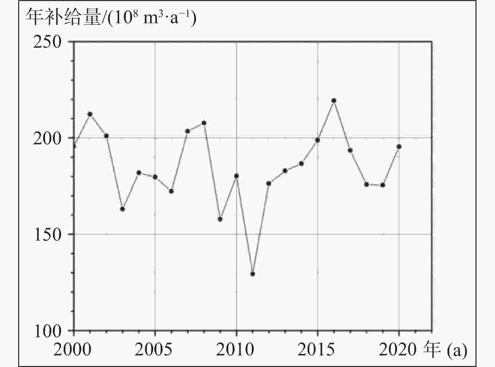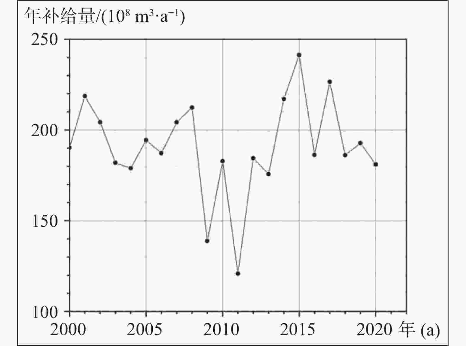 亿m3∙a−1地下水资源量/亿m3∙a−1 径流模数法 水文分割法 2000-2020年(多年平均) 752.440 742.740 761.610 2000-2020年(多年平均) 线下计算 854.655 629.158 栅格分析 872.737 632.102 表 3 2021年度地下水质量评价统计表 Table 3. Statistics of comprehensive evaluation of groundwater quality in 2021 地下水资源分区 含水介质类型 统计监测