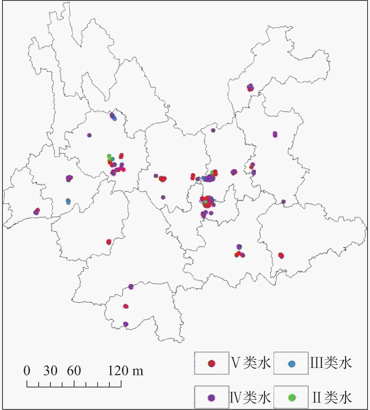 点数/个最高单项指标类别 Ⅰ Ⅱ Ⅲ Ⅳ Ⅴ 金沙江 岩溶水 74 7 15 35 17 孔隙水 31 1 14 16 裂隙水 26 1 15 10 澜沧江—红河 岩溶水 1 1 孔隙水 18 2 2 9 5 裂隙水 19 9 10 怒江—伊洛瓦底江 岩溶水 4 3 1 孔隙水 13 2 5 6 裂隙水 4 2 2 珠江中上游 岩溶水 12 1 5 6 孔隙水 10 1 7 2 裂隙水 11 8 3 合计 223 9 24 112 78 表 4 珠江流域水资源计算验证表 Table 4. Verification of water resource calculation in the Pearl River Basin 项目 水资源量/万m3∙a−1 对A比值 对B比值 对C比值 对D比值 A.珠江流域地下水资源量(基流分割法) 1870704634 1 329.55% 893.02% 346.46% B.南盘江2020~2021基流量下限 567648000 30.34% 1 270.98% 105.13% C.南盘江枯季径流量 209480324 11.20% 36.90% 1 38.80% D.径流量法珠江枯季资源量 539949400 28.86% 95.12% 257.76% 1