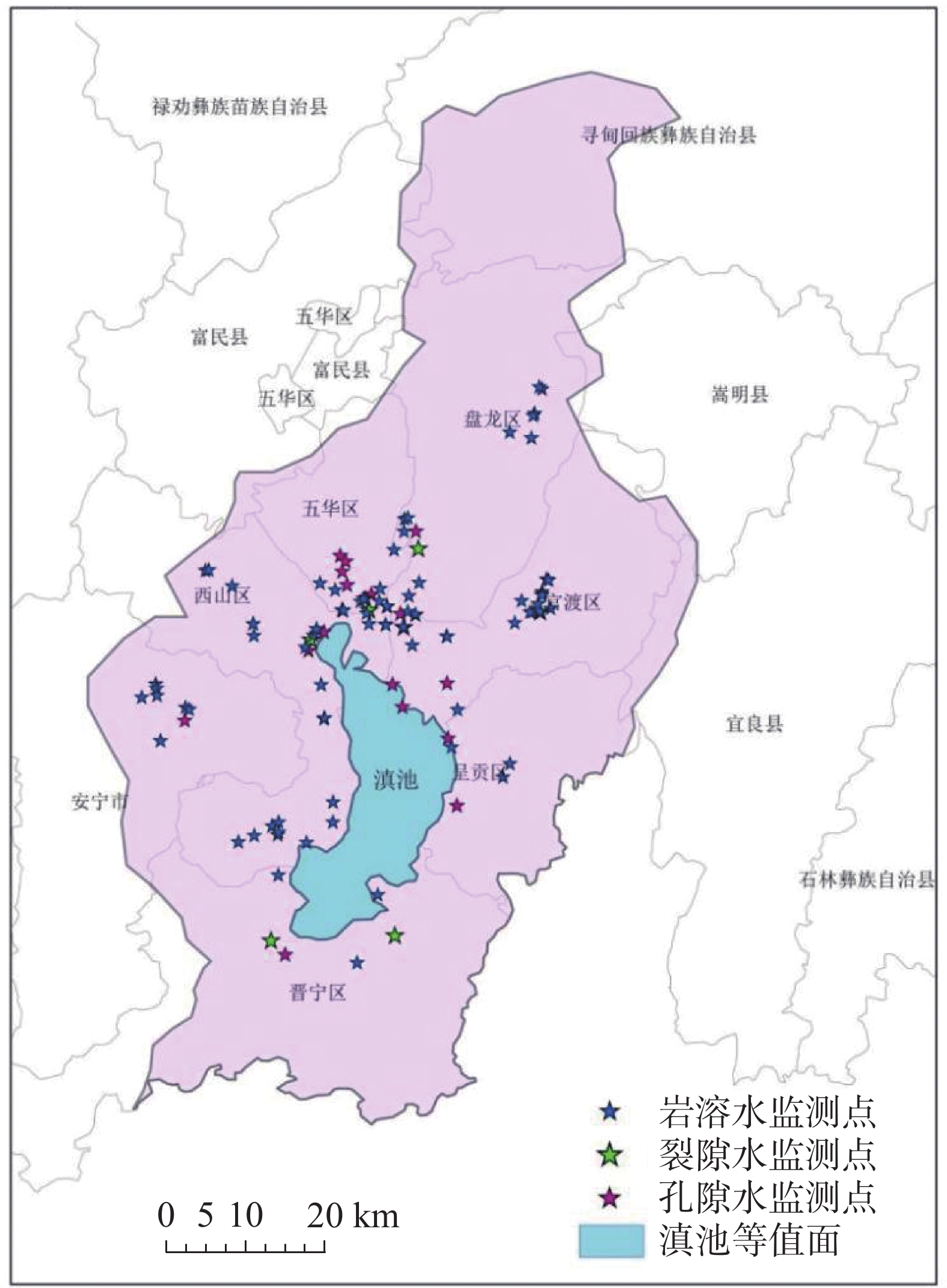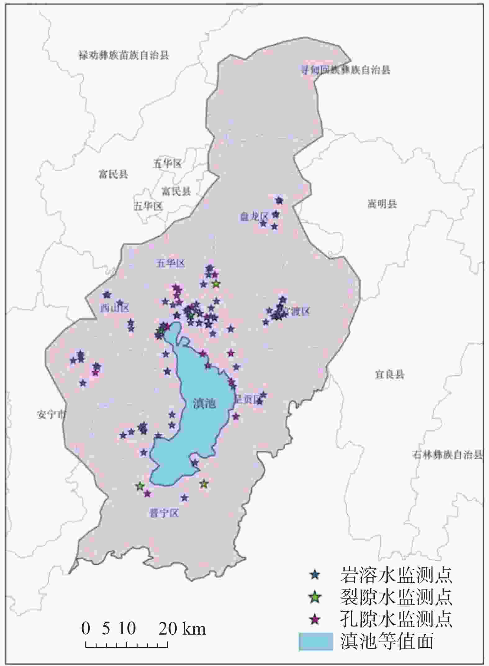 Figure  1.  Distribution of groundwater monitoring points in the Kunming basin