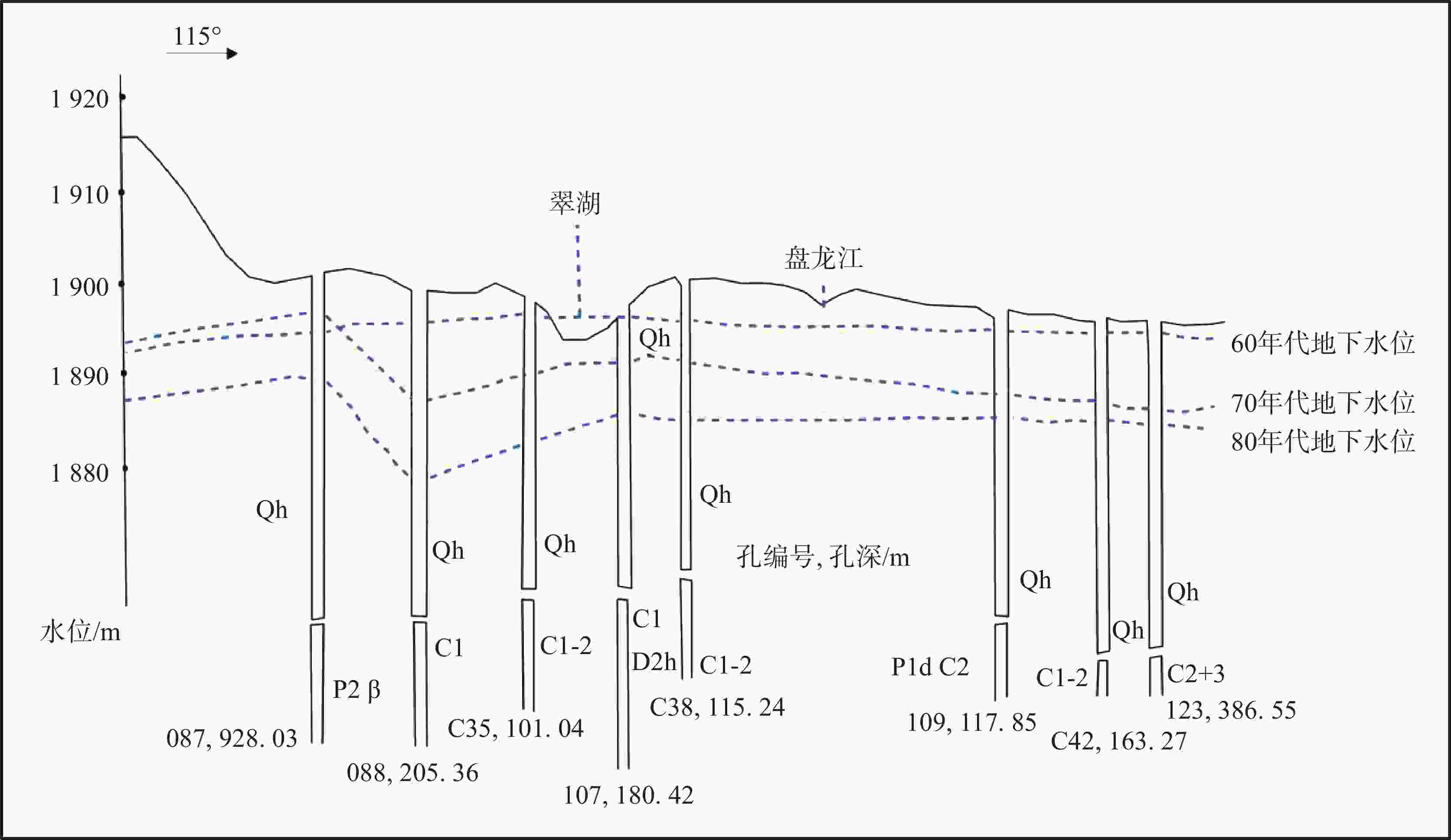 图  2  昆明盆地20世纪60-80年代地下水位变化曲线图
