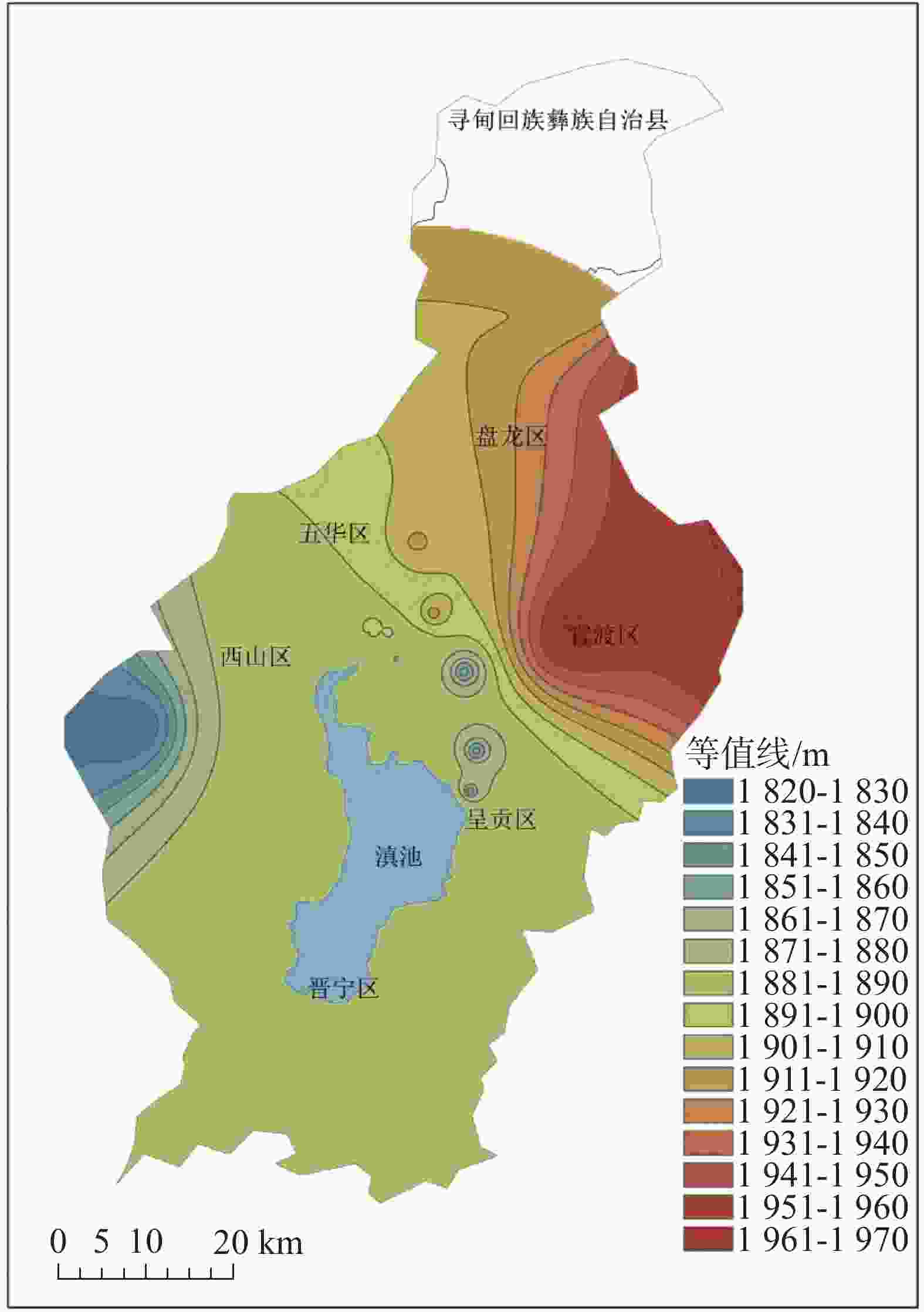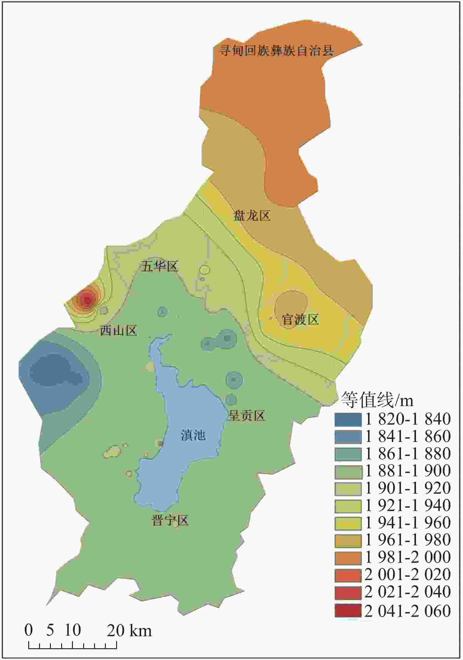 Figure  6.  Contour map of bedrock water levels in the Kunming basin in 2020