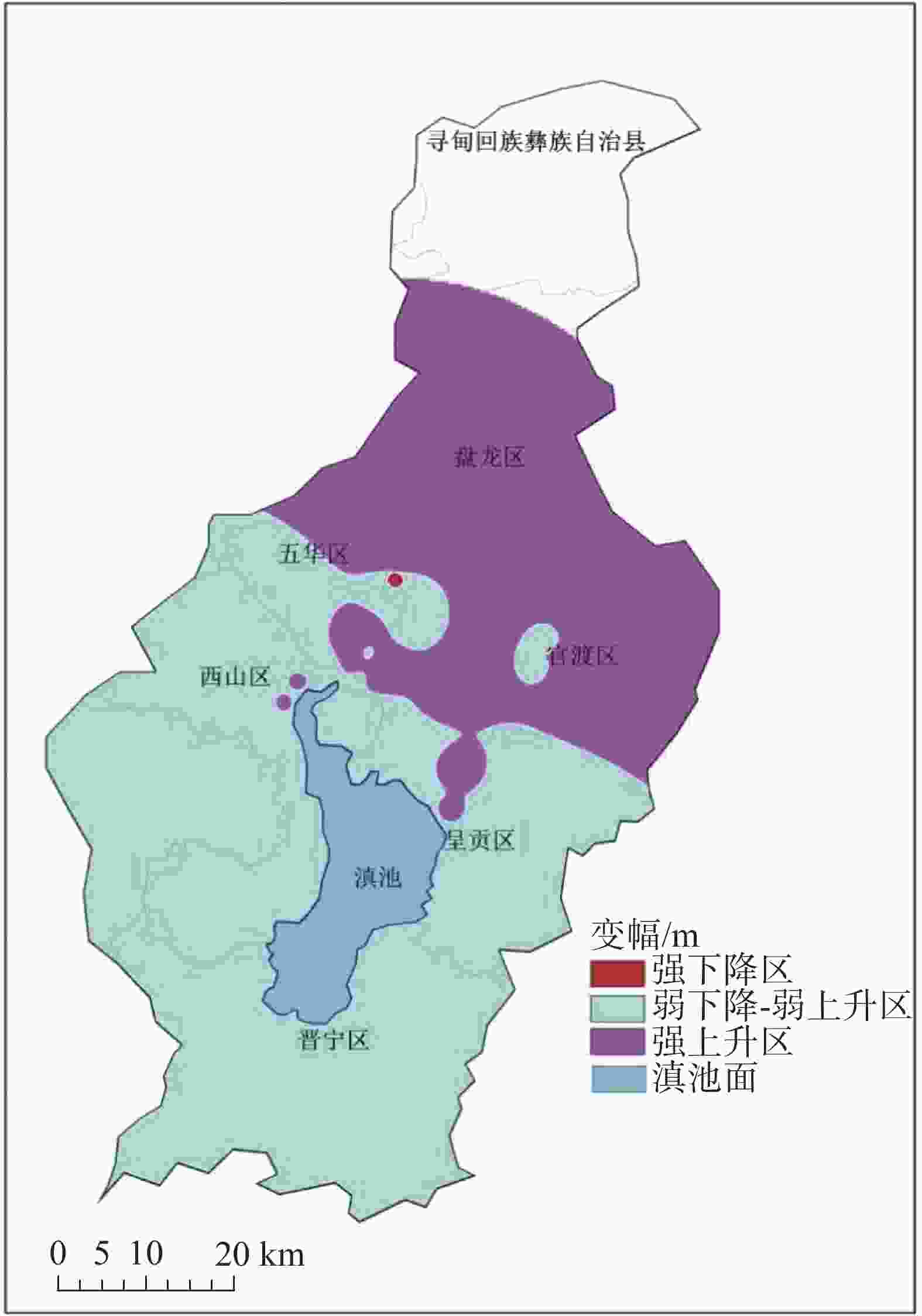 图  7  昆明盆地2006-2020年基岩水水位变幅图