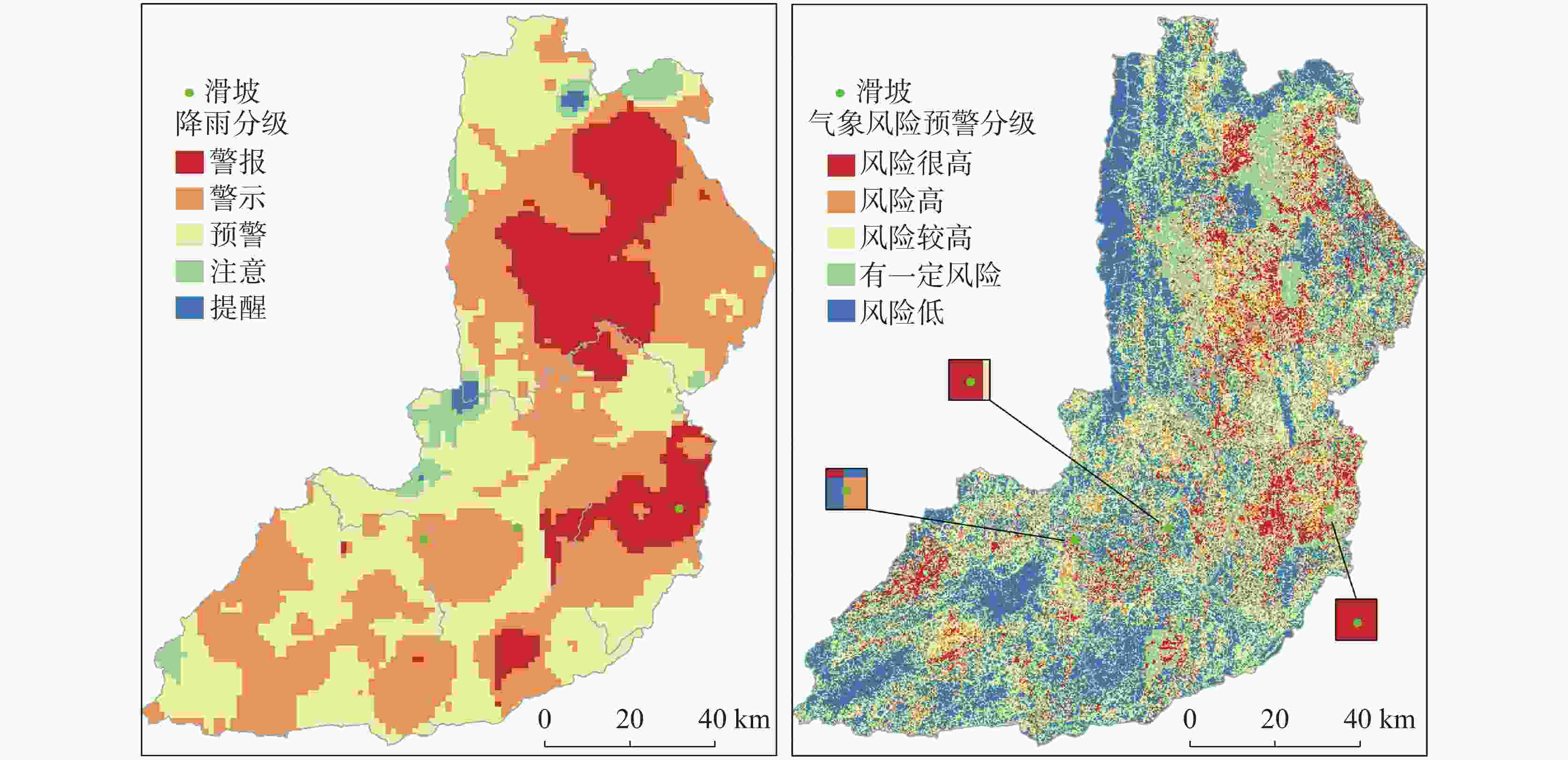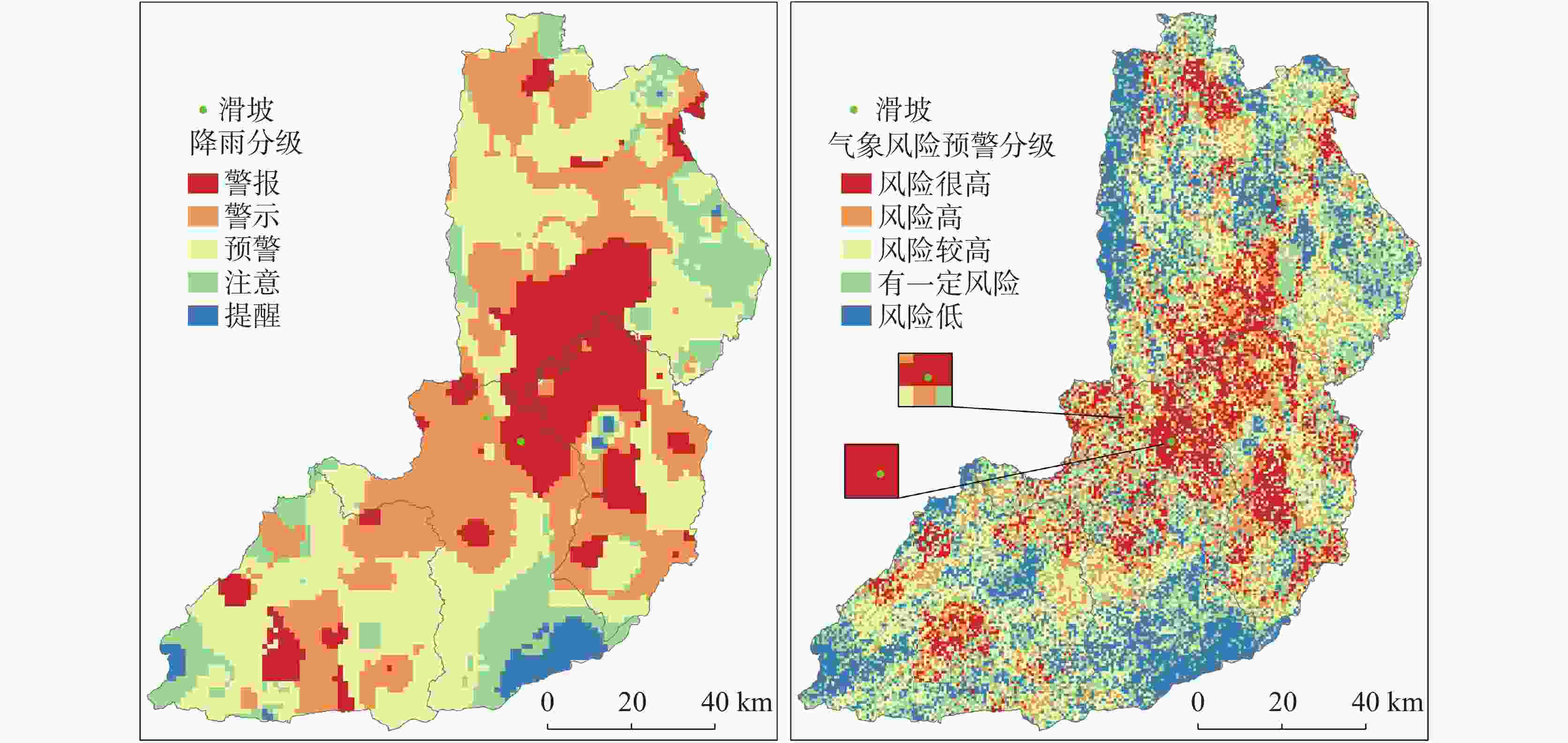 等级划分 T1 T2 T3 T4 T5 滑坡发生概率/% ≤20 20~40 40~60 60~80 >80 表 4 气象风险预警分级表