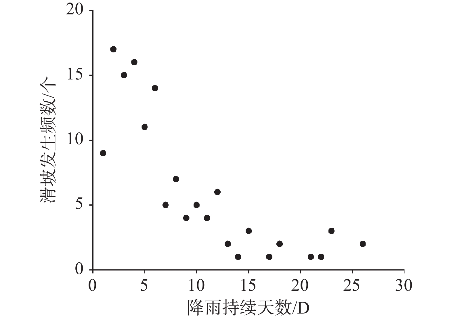 (≥50)滑坡发生占比/% 3% 29% 23% 20% 25% 表 3 降雨阈值等级划分表