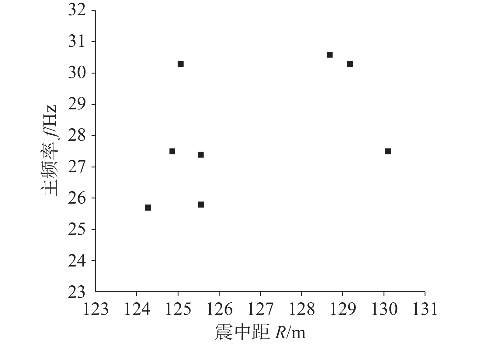 道数 震中距R/m 主频f/Hz 测点高程H/m 道数 震中距R/m 主频f/Hz 测点高程H/m 1 128.33 48.5 413.70 18 128.94 48.4 415.10 2 129.42 51.7 414.00 19 128.77 48.5 414.80 3 130.10 27.5 414.20 20 128.96 32.0 414.50 4 129.18 30.3 413.90 21 128.83 28.9 414.30 5 128.68 30.6 413.70 22 130.44 30.5 414.00 6 125.56 25.8 413.40 23 131.83 36.0 413.70 7 125.55 27.4 413.00 24 134.43 34.5 414.10 8 124.86 27.5 412.90 25 124.21 19.4 414.60 9 124.27 25.7 413.30 26 137.23 37.2 414.90 10 125.06 30.3 413.80 27 141.01 33.4 415.40 11 125.33 42.6 414.10 28 146.48 25.8 415.80 12 125.07 47.1 414.50 29 152.17 29.1 416.40 13 125.55 41.9 414.70 30 150.30 25.8 416.70 14 124.92 47.0 414.90 31 143.65 26.1 416.90 15 125.74 40.4 415.10 32 142.78 32.2 417.40 16 127.43 42.5 415.00 33 144.25 25.7 417.50 17 127.80 45.8 415.30 34 139.39 25.8 417.00 -