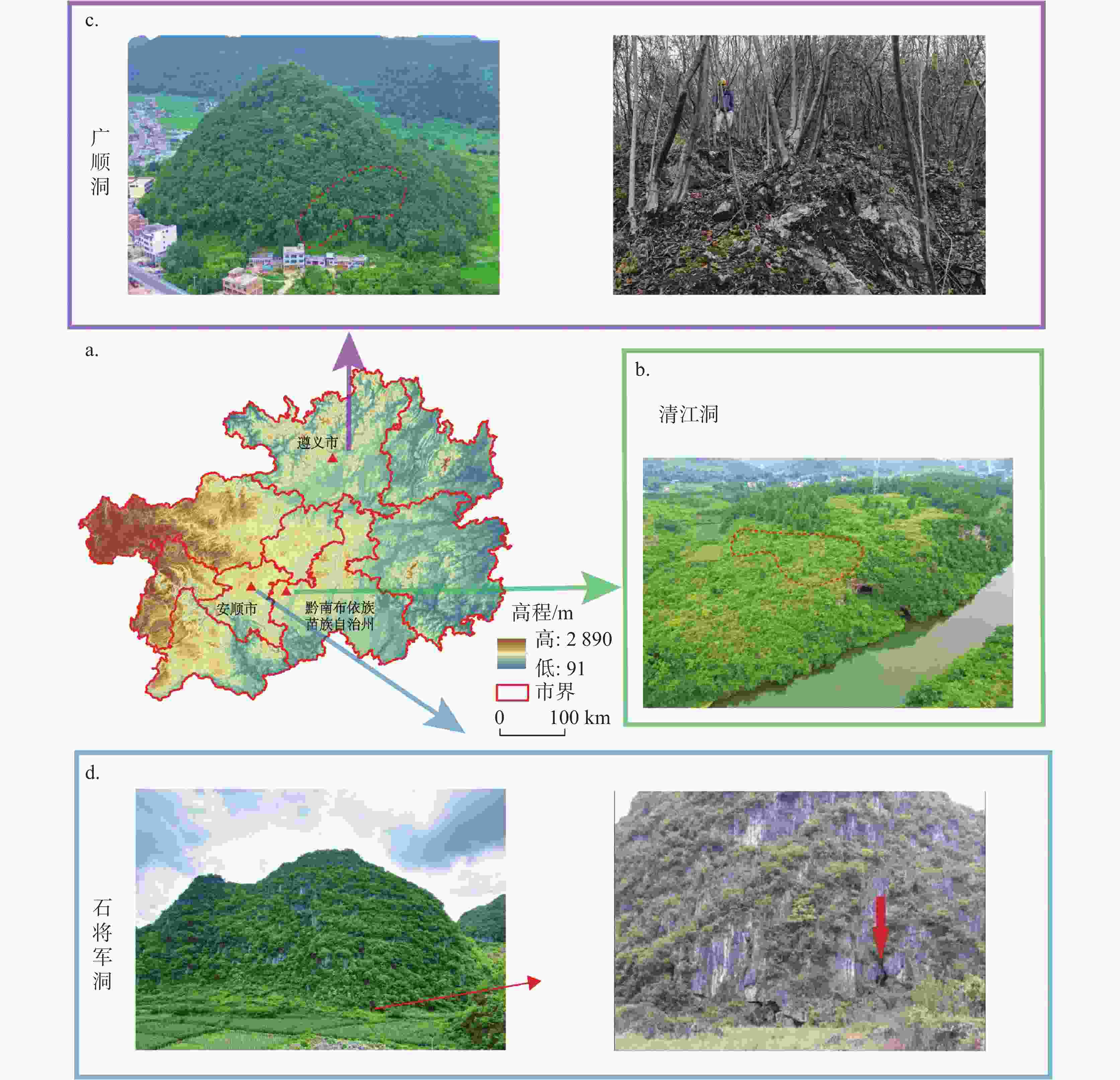 • 图  1  清江洞、广顺洞、石将军洞的地理位置及顶部土地覆被