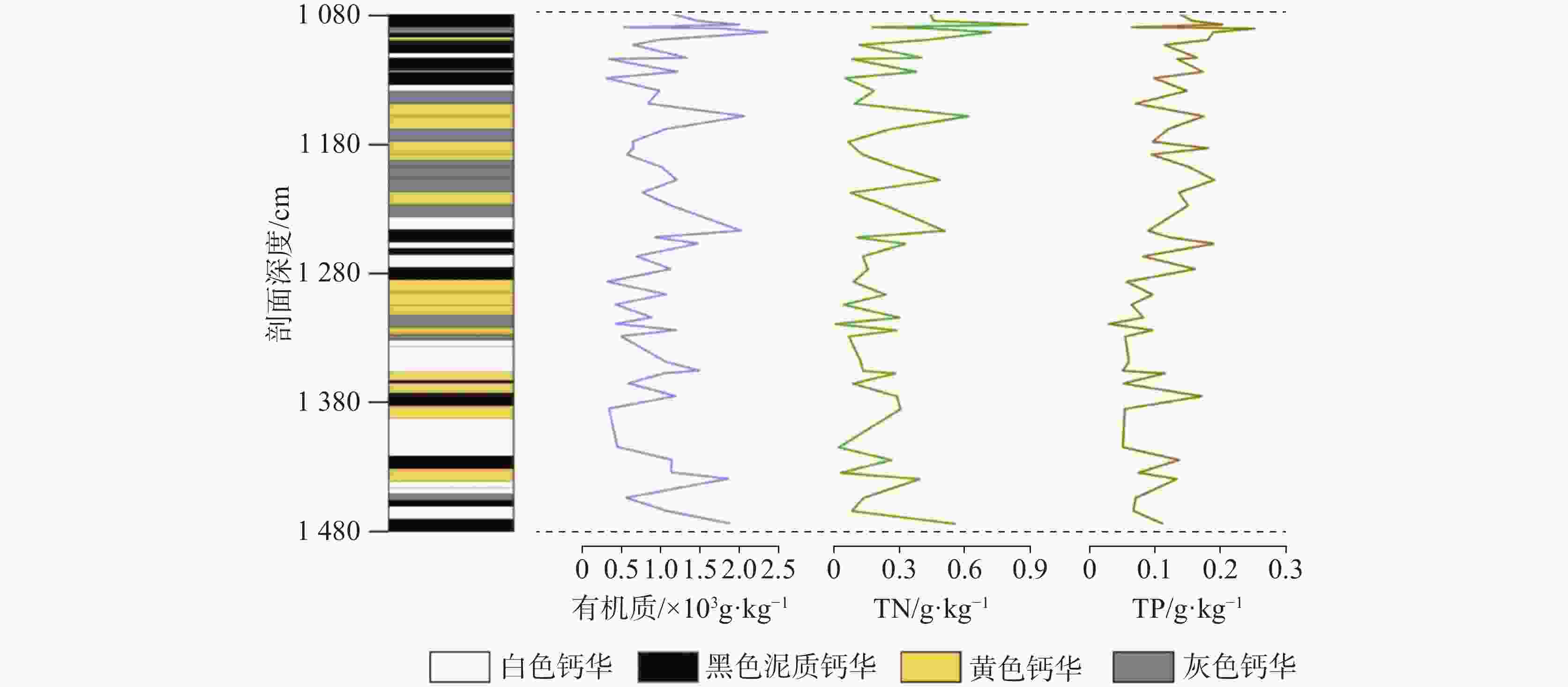 表 1 钙华剖面有机质、TN、TP测试结果(g·kg−1)