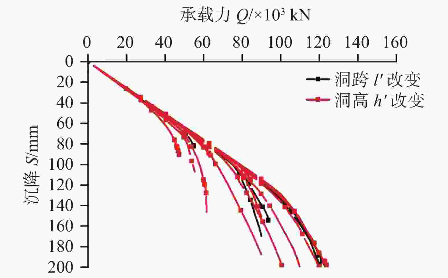 摘要: 岩溶区地基中往往含有多个溶洞,当前对含多溶洞桩基-地基承载机理的研究落后于工程实践。因此,针对含多溶洞地基-桩基承载机理,依托某岩溶桩基工程,应用大型有限元分析软件ABAQUS建立模型,通过对桩基荷载-位移曲线的分析,探讨不同溶洞顶板厚度下溶洞形状、溶洞几何特性及溶洞间距对桩基极限承载力的影响。结果表明:相同工况下,方形溶洞对桩基承载力的不利影响大于圆形溶洞;随着溶洞单一尺寸的增大,溶洞对桩基极限承载力的不利影响逐渐增大。桩端存在双溶洞时,侧溶洞洞高对桩基极限承载力的影响大于洞跨对其的影响;随着溶洞间距的增大,侧溶洞对桩基承载力的影响降低,当间距达到5倍桩径时,侧溶洞对桩基承载力的影响可忽略。Abstract: