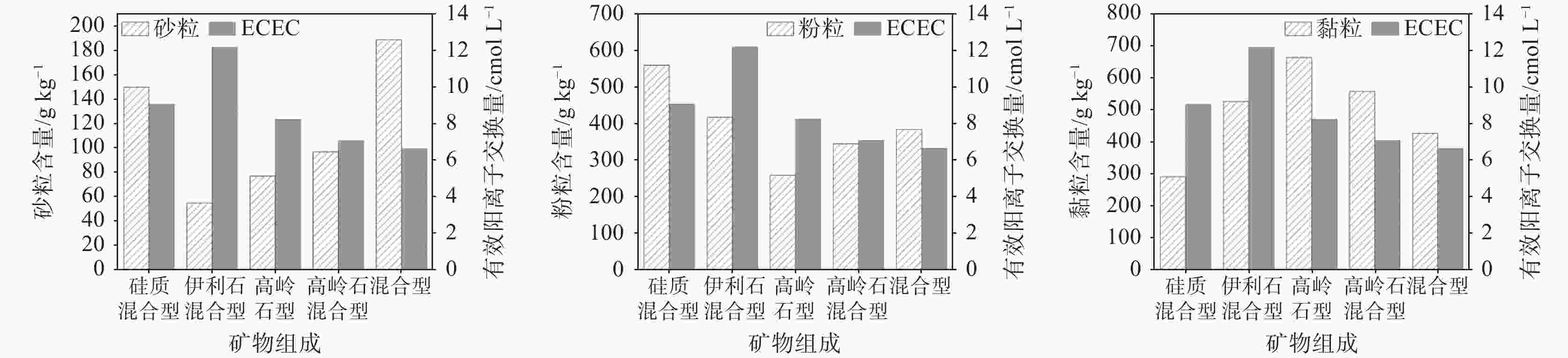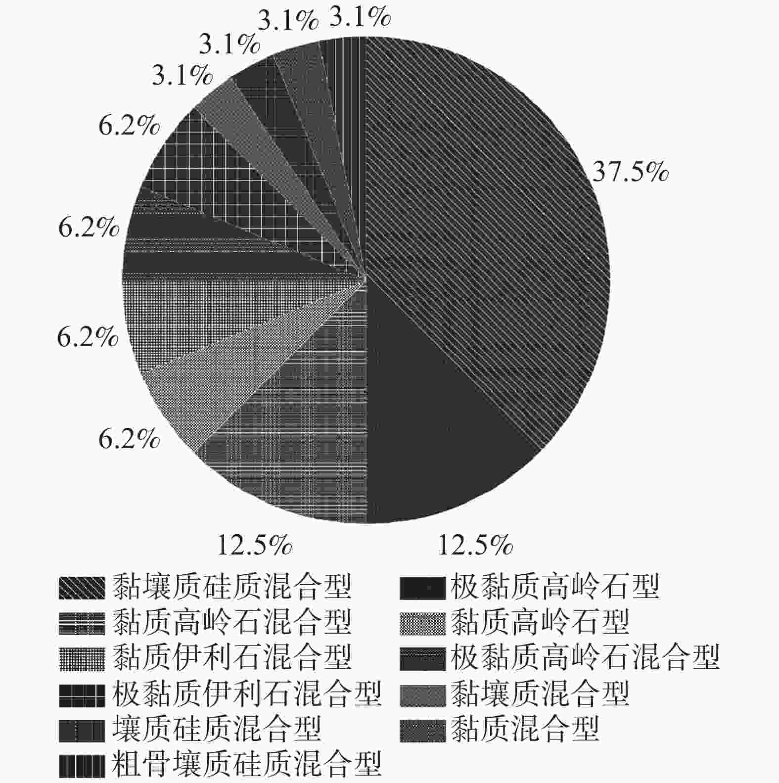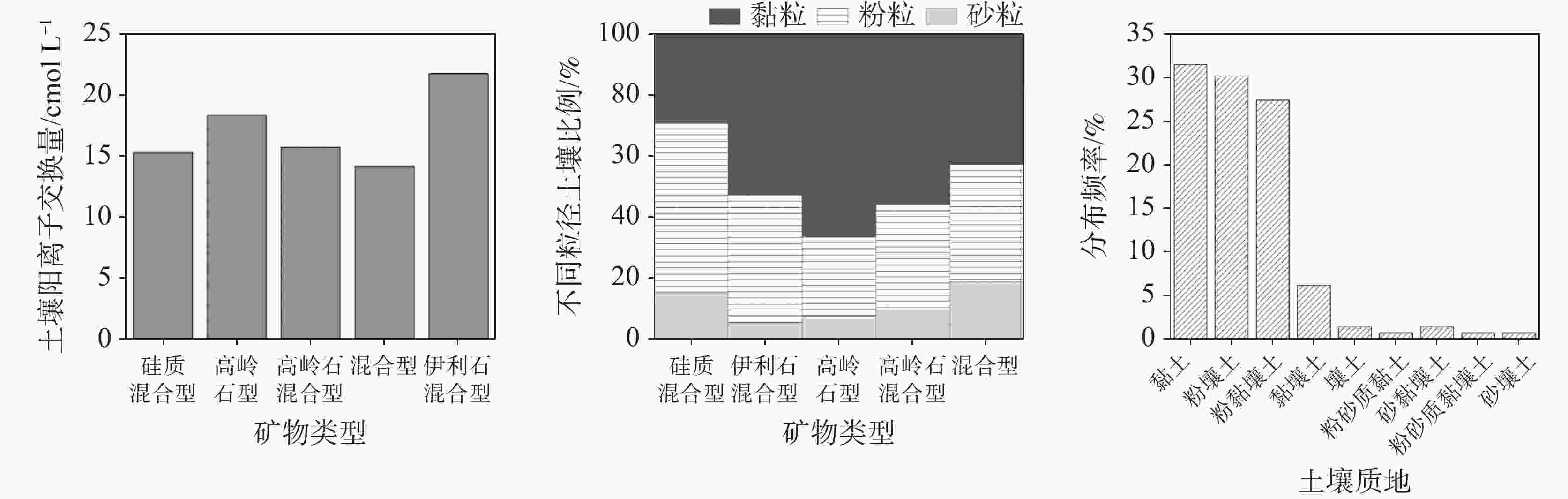 /cmol·kg−1土壤保肥能力 样本数 [20.0, ∞) 强 39 [15.4, 20.0) 较强 43 [10.5, 15.4) 中等 48 [6.2, 10.5) 弱 16 [0, 6.2) 很弱 0 表 3 不同矿物类型土壤基本土壤理化参数