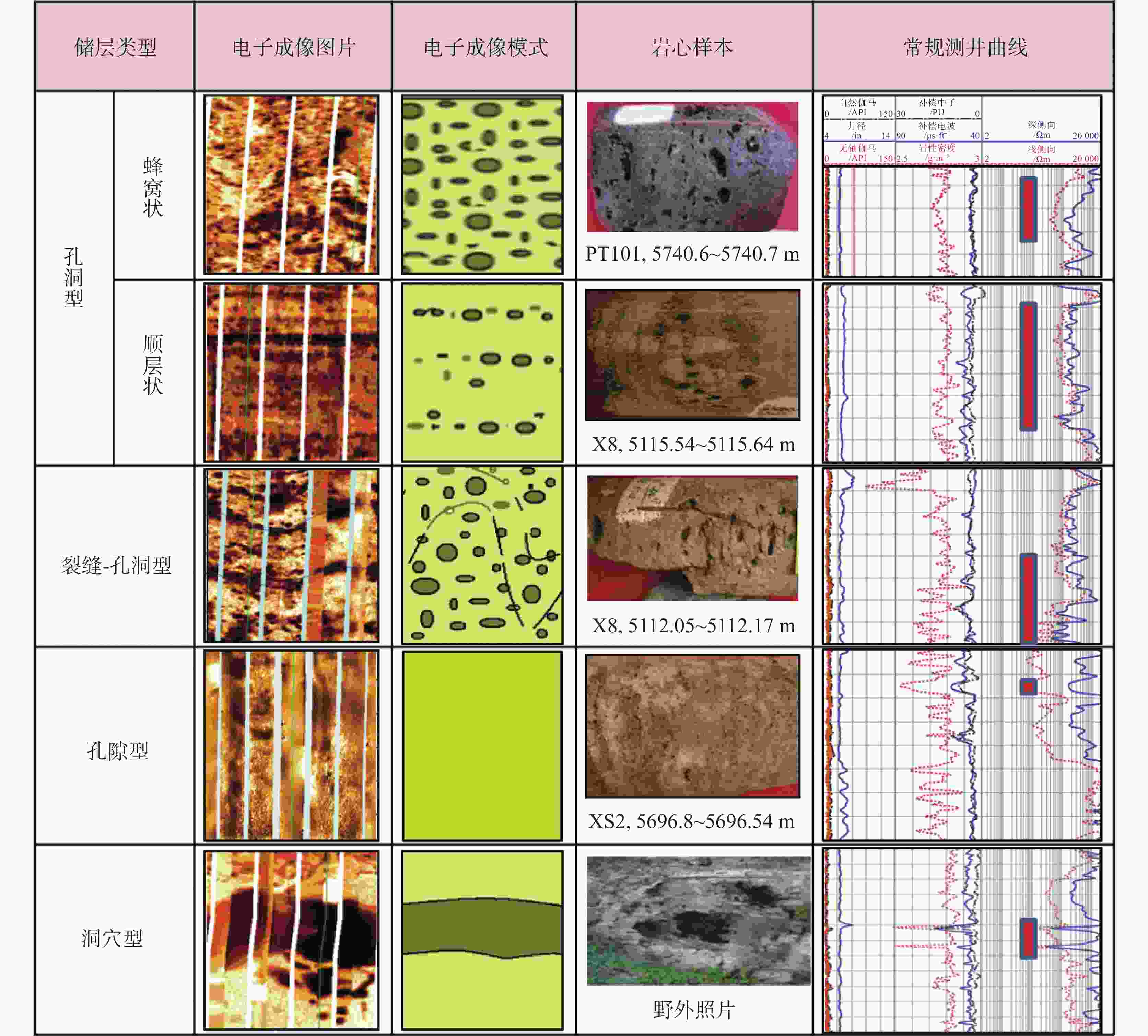 Figure  4.  Logging response characteristics of the reservoir characterized by the type of honeycomb vuggy hole in Well XP101