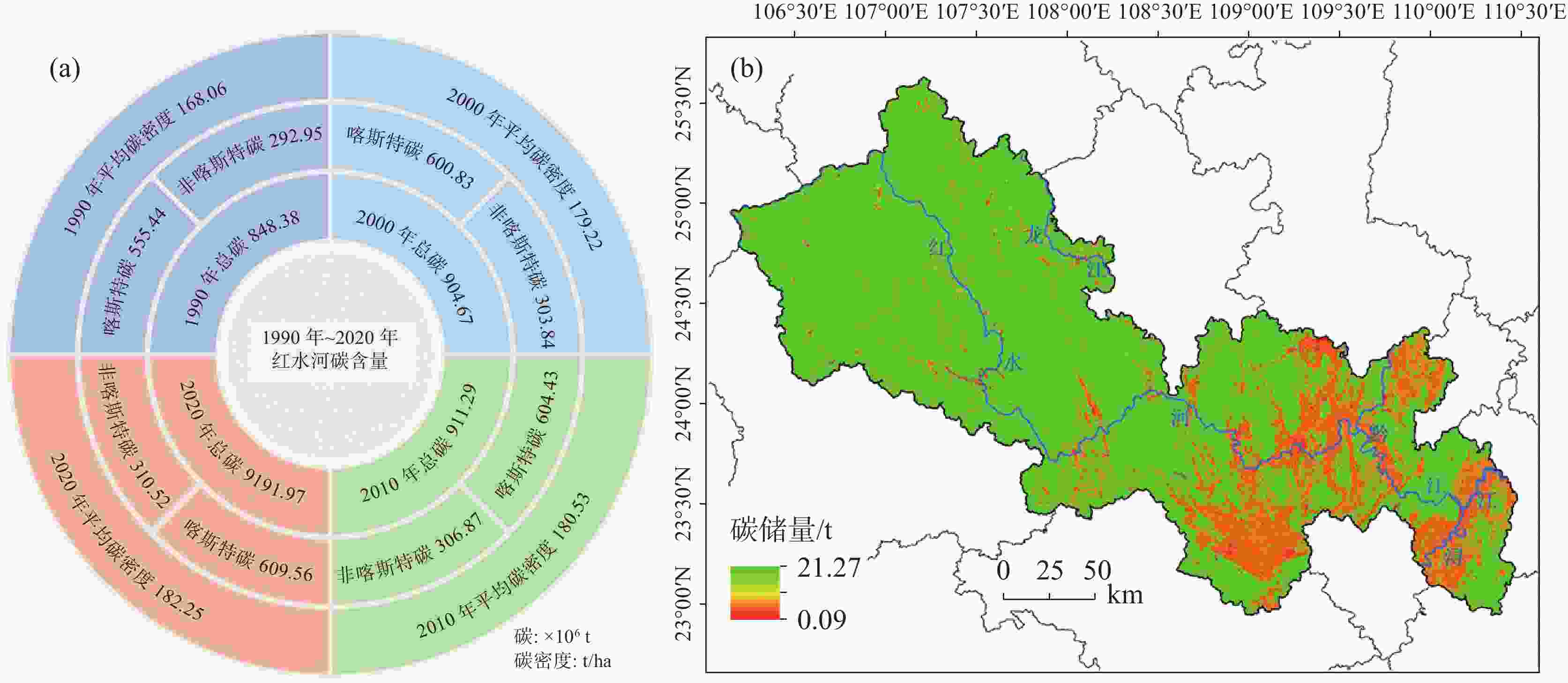 摘要: 岩溶地区具有生态脆弱、环境容量小、土地承载力低、抗干扰能力差等特征,了解岩溶地区生态系统碳储量变化的原因对于预防和控制生态系统退化和支持可持续发展至关重要。本研究以红水河流域为例,基于InVEST模型和PLUS模型评估其1990年至2020年的岩溶地区碳储量,并预测了2030年不同情景下岩溶地区碳储量的变化。研究结果表明:(1) 1990-2020年30年间红水河流域岩溶地区碳储量总体呈递增趋势,空间分布特征由东南向西北逐渐升高,总体的碳源/汇效应为汇大于源,总增加量为71.59×106 t;(2) 相较于2020年,在自然发展情景和生态保护情景下,2030年红水河流域的岩溶地区碳储量分别将增加7.69×106 t和10.74×106 t;而城镇发展情景下碳储量将减少5.14×106 t,城镇发展会导致岩溶地区固碳能力较强的林地减少,导致岩溶流域固碳能力失衡;(3) 根据地理探测器结果显示土地利用对碳储量的空间异质性解释力最强,解释力q值为0.833,以及土地利用与年均NDVI因子之间的相互作用对红水河流域碳储量的变化影响最显著,交互作用解释力为0.848,土地利用变化是使得岩溶碳储量升高主要原因。此研究结果可为红水河流域实现岩溶地区生态系统服务碳储量的可持续性发展、为土地利用管理优化提供科学指导提供理论和数据支持。Abstract: