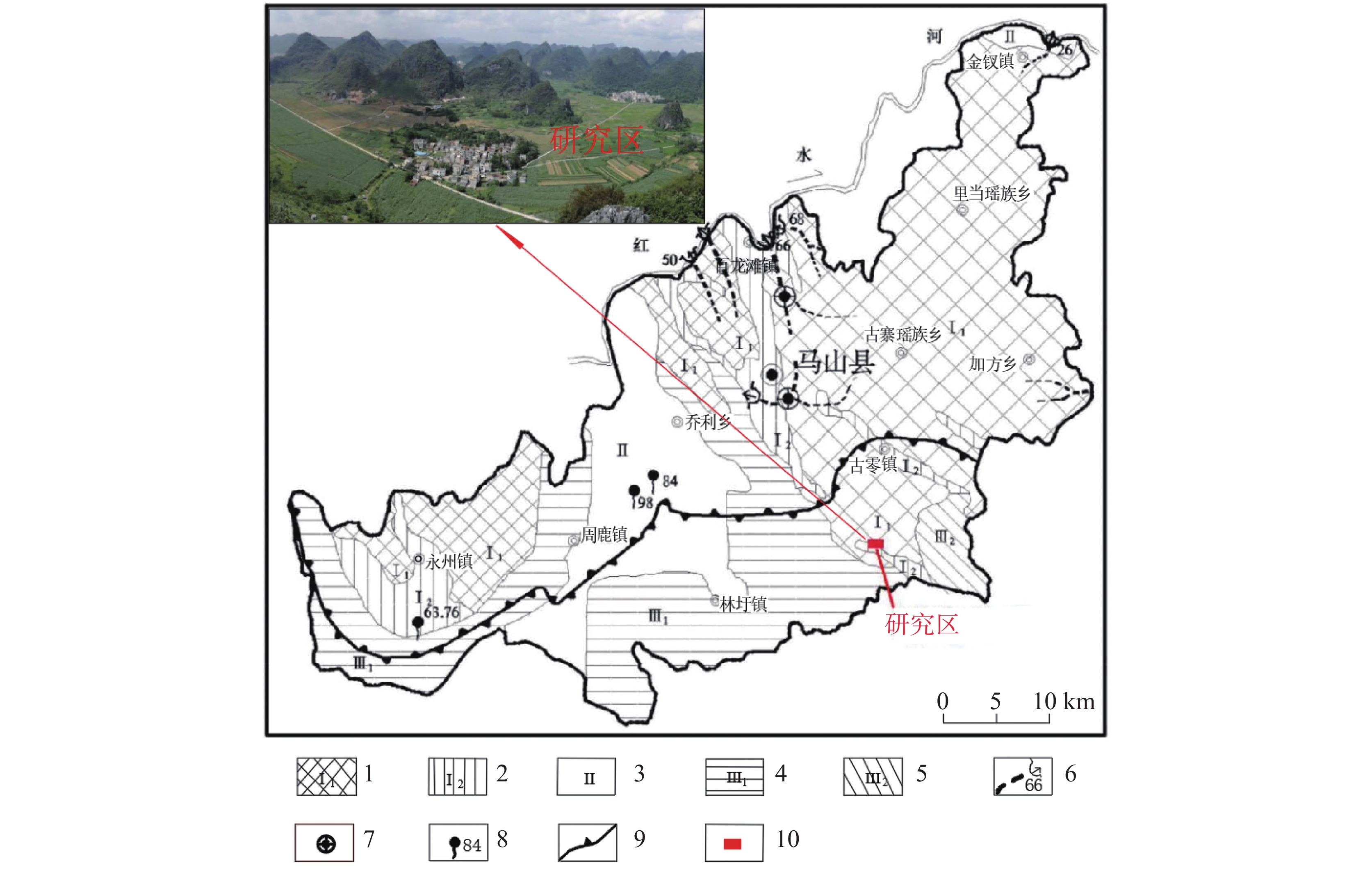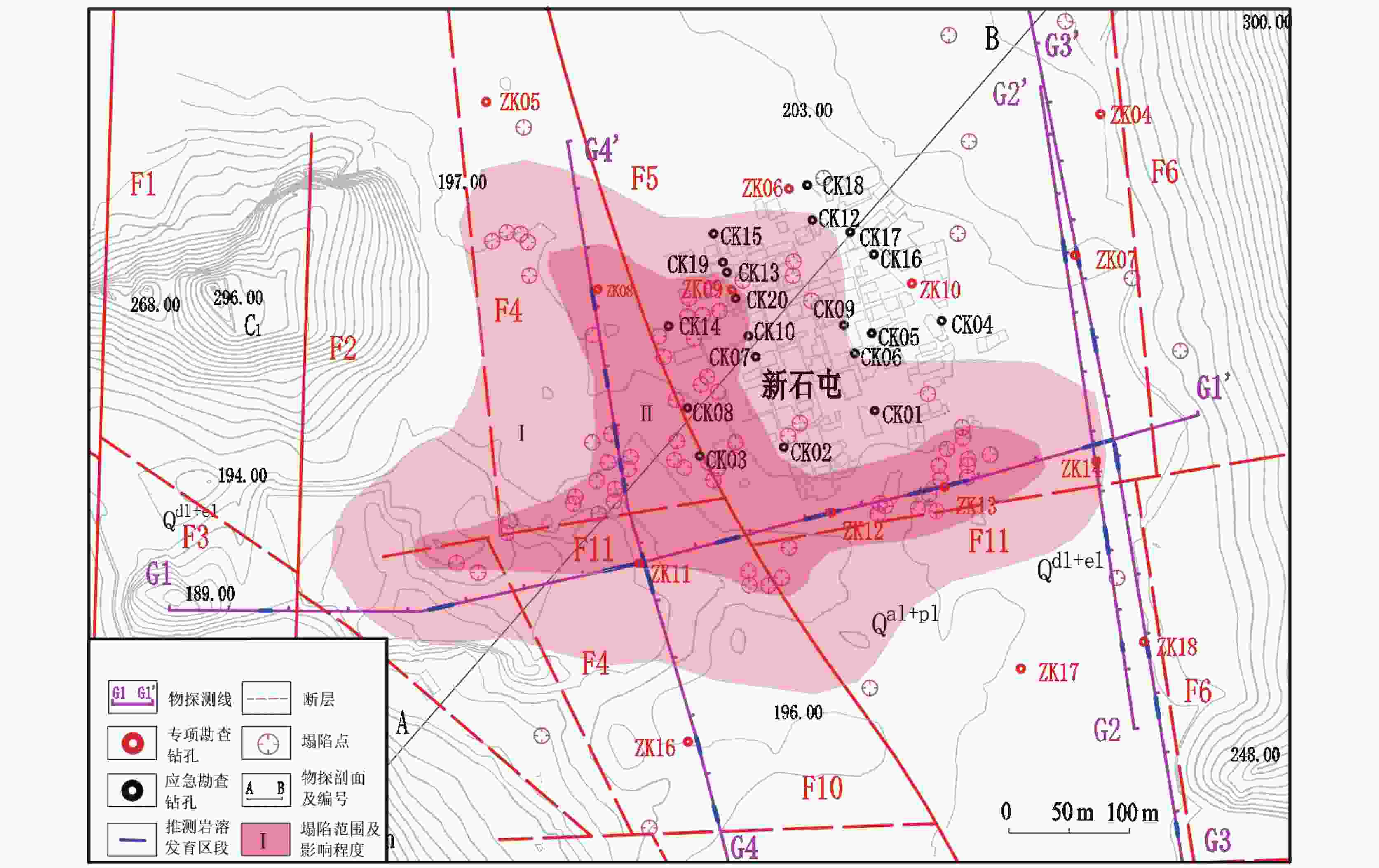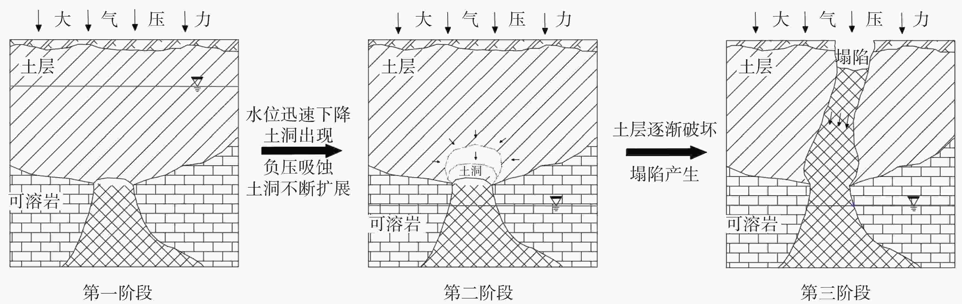 摘要: 广西溶蚀平原区岩溶塌陷灾害频发、危害巨大,开展塌陷分布规律与形成机制研究是进行灾害预警与防控的基本前提。本文以广西马山县古零镇石丰村新石屯岩溶塌陷区为研究对象,通过对研究区地形地貌、地质构造、地层岩性以及气象条件等自然条件进行综合分析,同时结合物探和钻探等方法的验证,探讨了溶蚀平原区岩溶塌陷的分布规律、影响因素及成因机制,并深入研究了溶蚀平原区岩溶塌陷的成因机制。研究结果显示,岩溶地面塌陷主要集中于断层构造带岩溶强烈发育区域、覆盖层厚度中等地区以及地下水位剧烈波动区域。研究区岩溶塌陷的成因机制主要有真空吸蚀和潜蚀两种,其中约88%的岩溶塌陷是由真空吸蚀作用引起的,12%的岩溶塌陷由潜蚀作用引起的。研究结果为同类溶蚀平原地区岩溶地面塌陷预防和研究提供参考依据。Abstract: